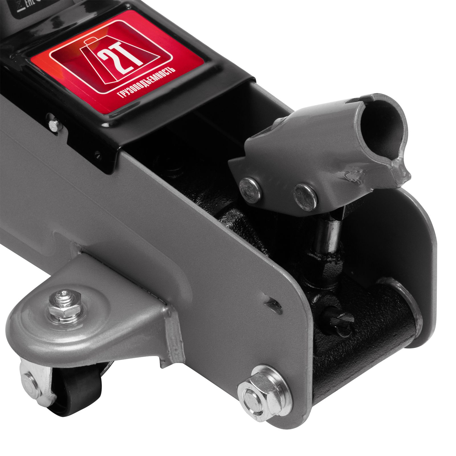 - Безопасная эксплуатация — предохранительный клапан препятствует подъему груза массой более 2 т, предотвращая поломку домкрата.