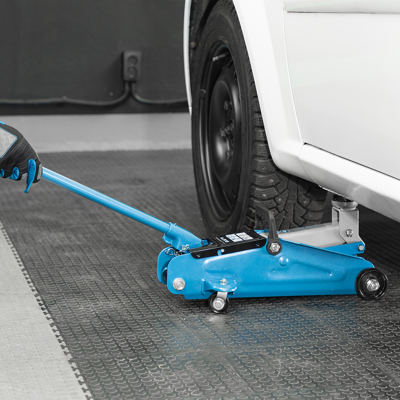 - Комфортное перемещение — домкрат оснащен ручкой с подпальцевыми выемками.