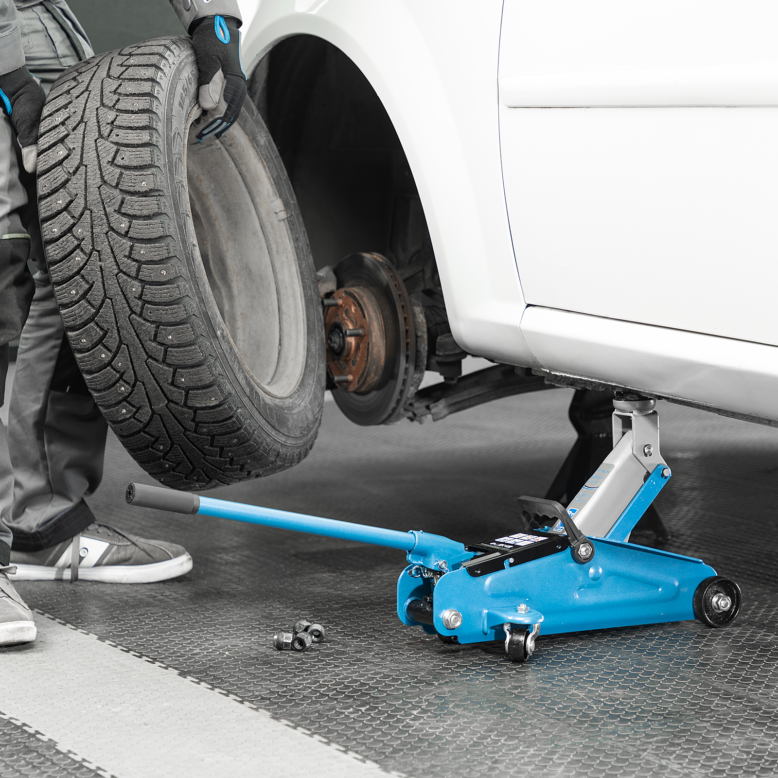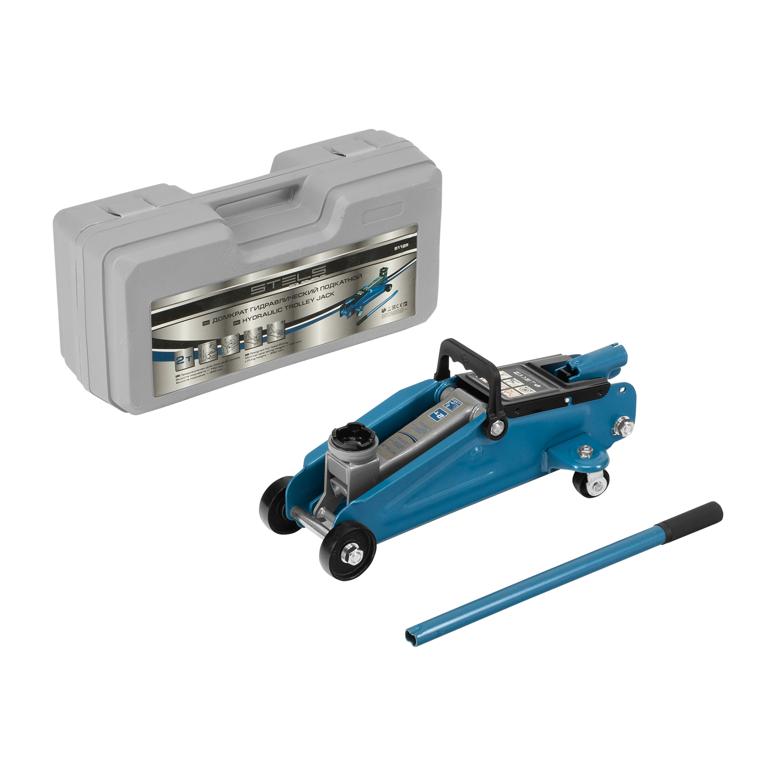 Подкатной гидравлический домкрат Stels 51128, поставляющийся в кейсе, способен поднимать груз массой до 2 т на высоту 140-340 мм. Подходит для легковых автомашин и кроссоверов со стандартным клиренсом. Усиленная конструкция выдерживает повышает надежность домкрата. Домкрат пригодится в частном гараже и на станции техобслуживания.