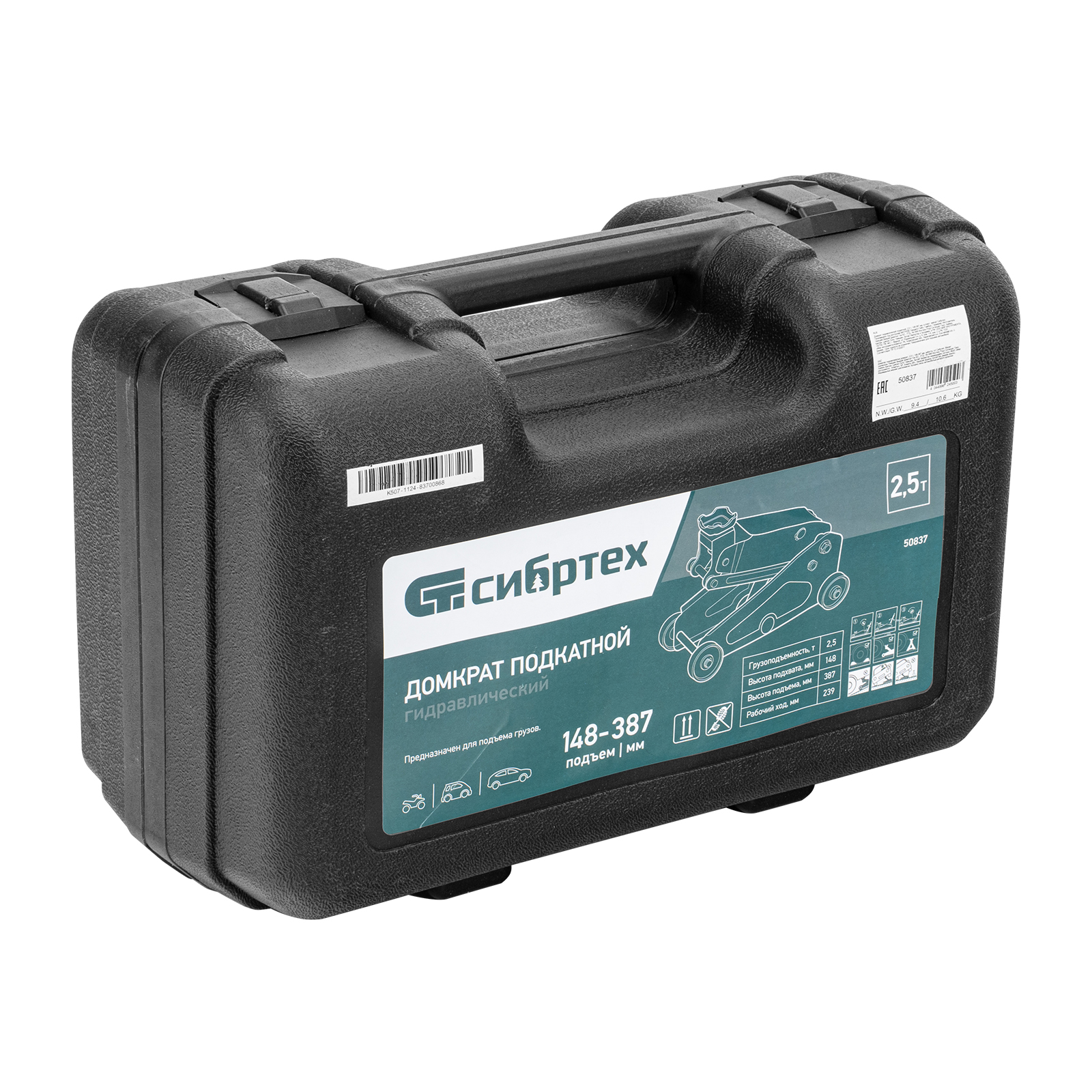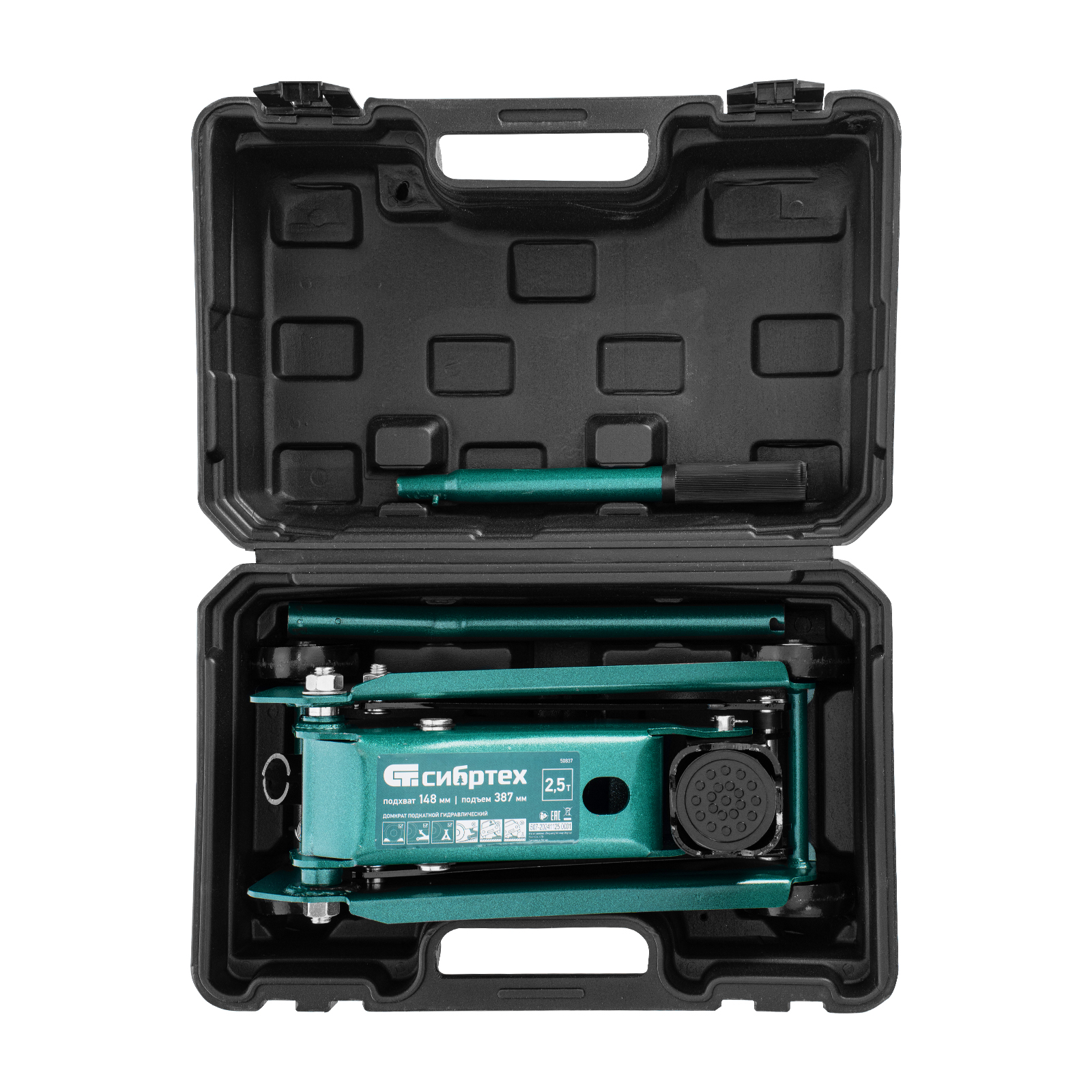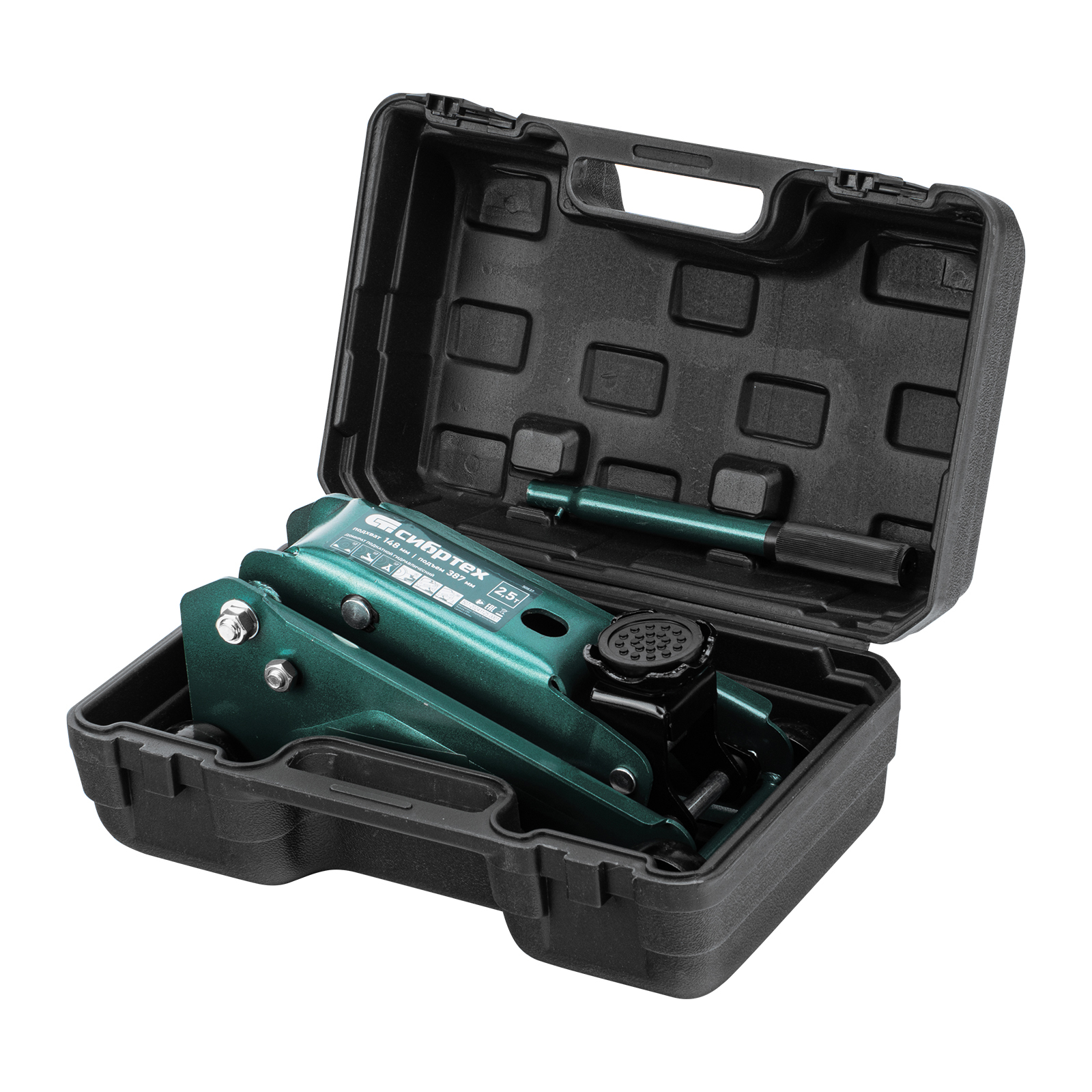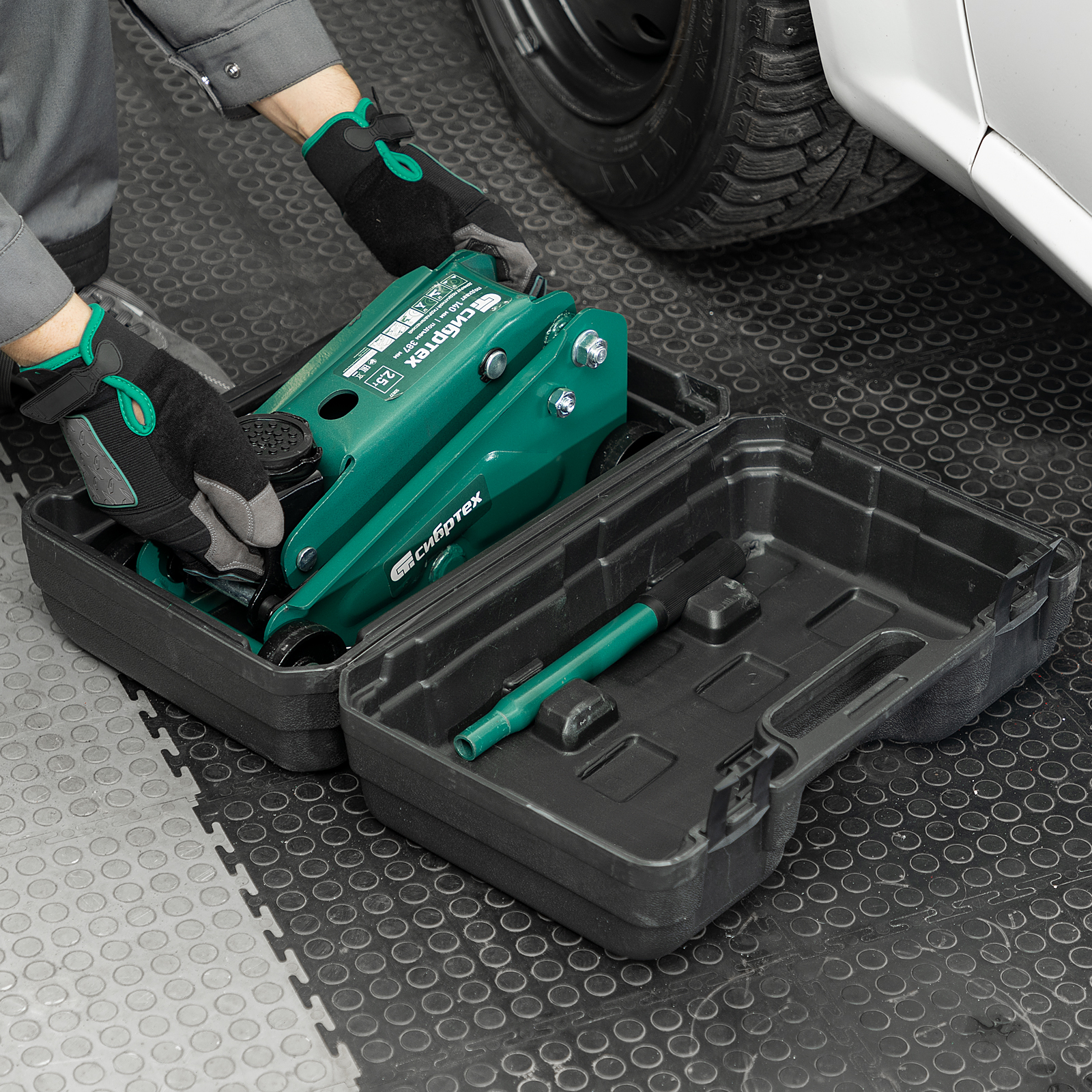 - Удобное хранение и транспортировка — в комплект поставки включен прочный пластиковый кейс, домкрат весит 9,2 кг.