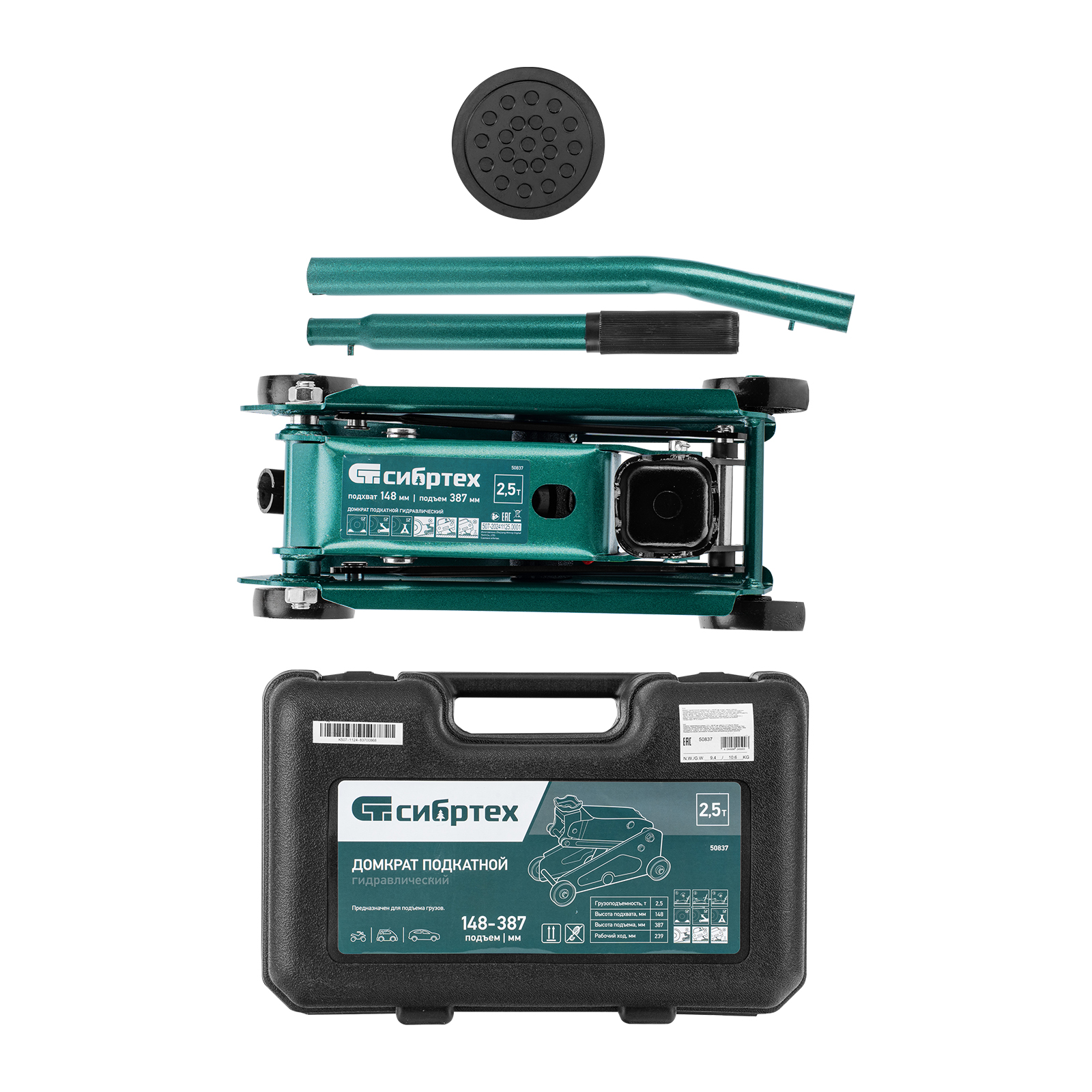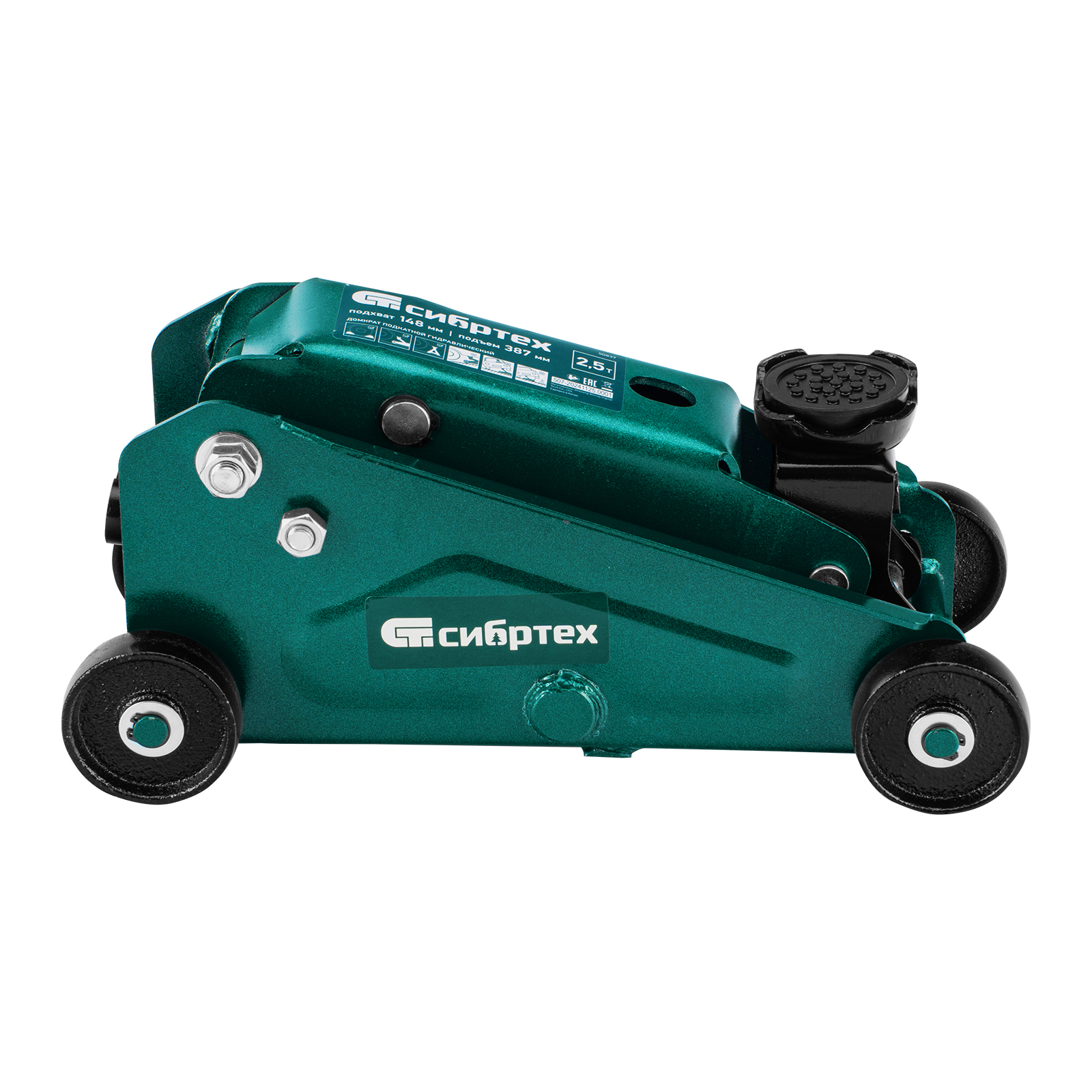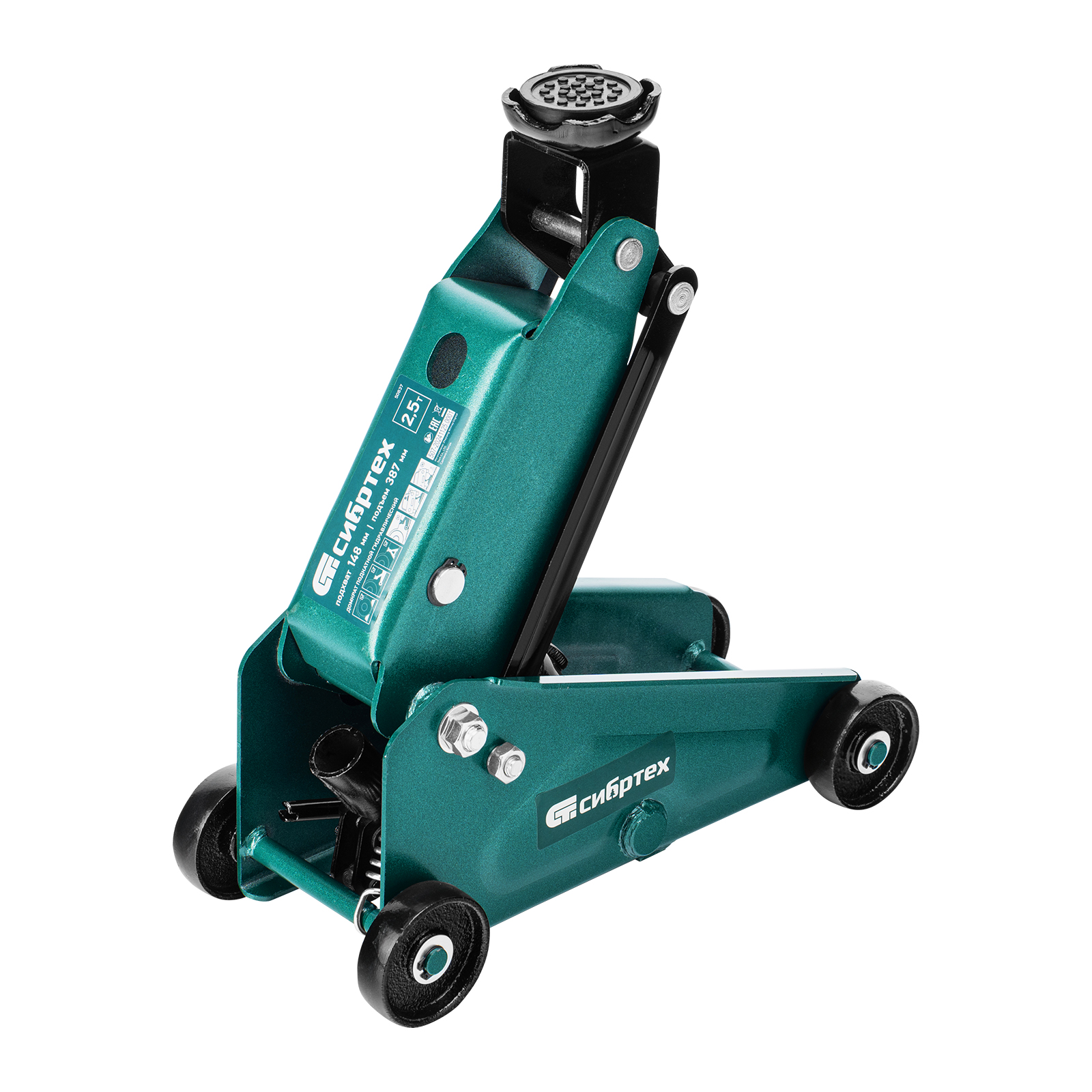 Гидравлический подкатной домкрат Сибртех 50837 предназначен для подъема грузов массой до 2,5 т на высоту со 148 до 387 мм. Применяется для обслуживания автомобилей со стандартным клиренсом. Компактный домкрат подходит для самостоятельного использования автовладельцами.