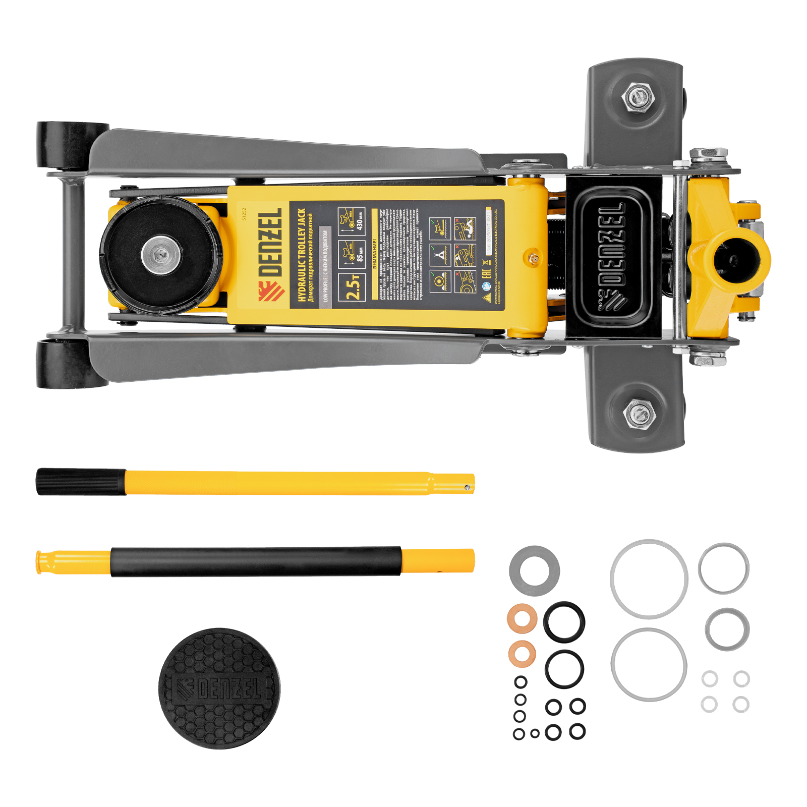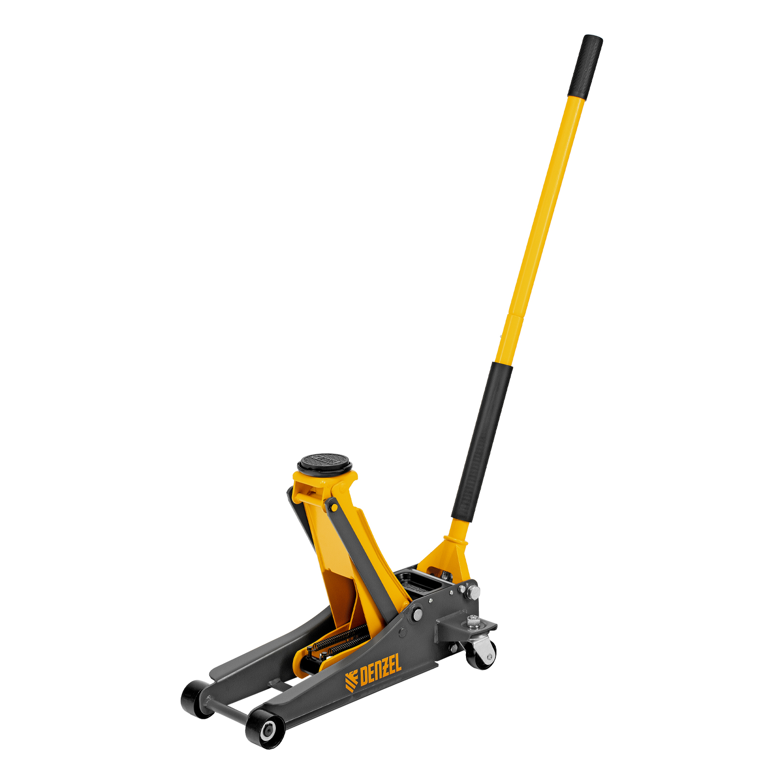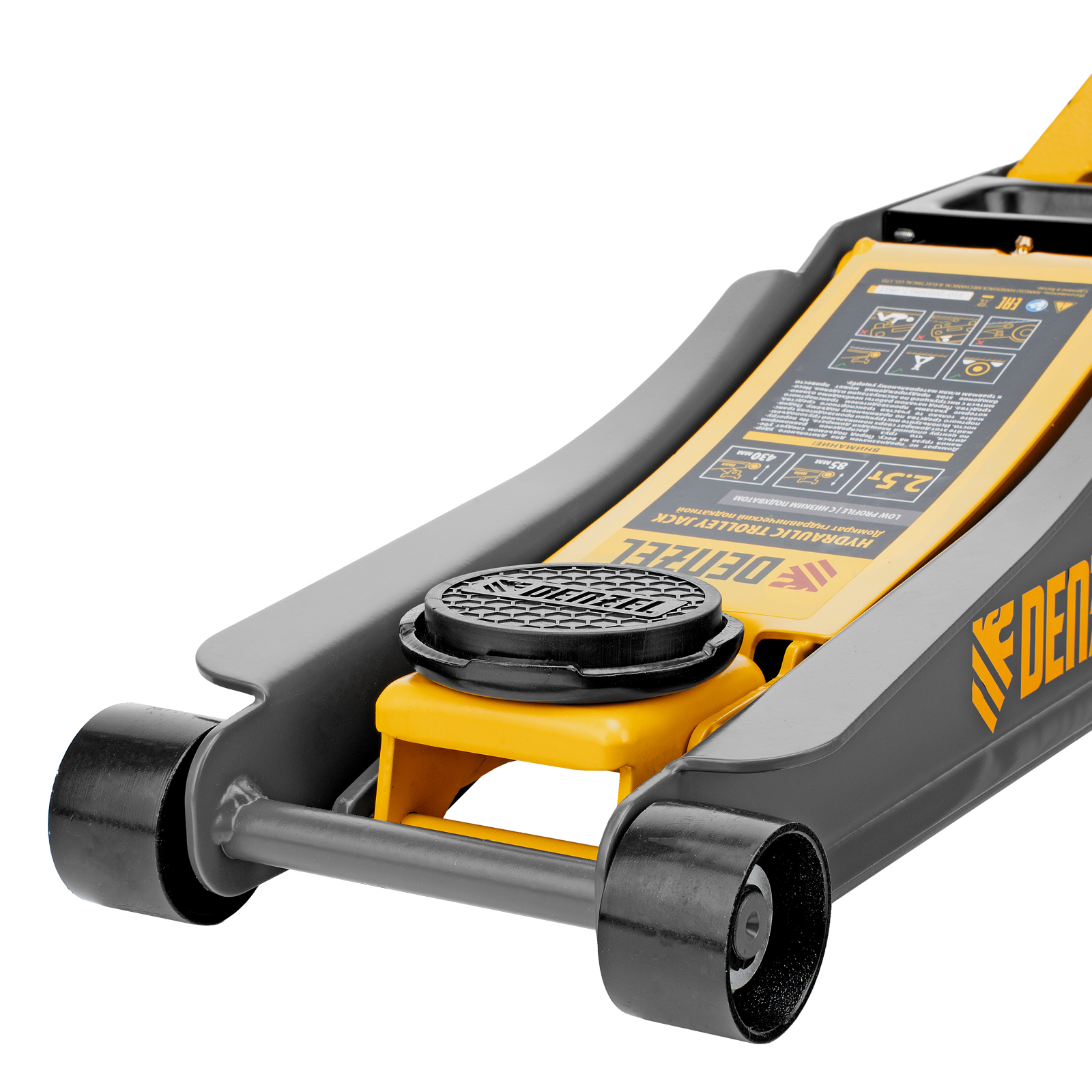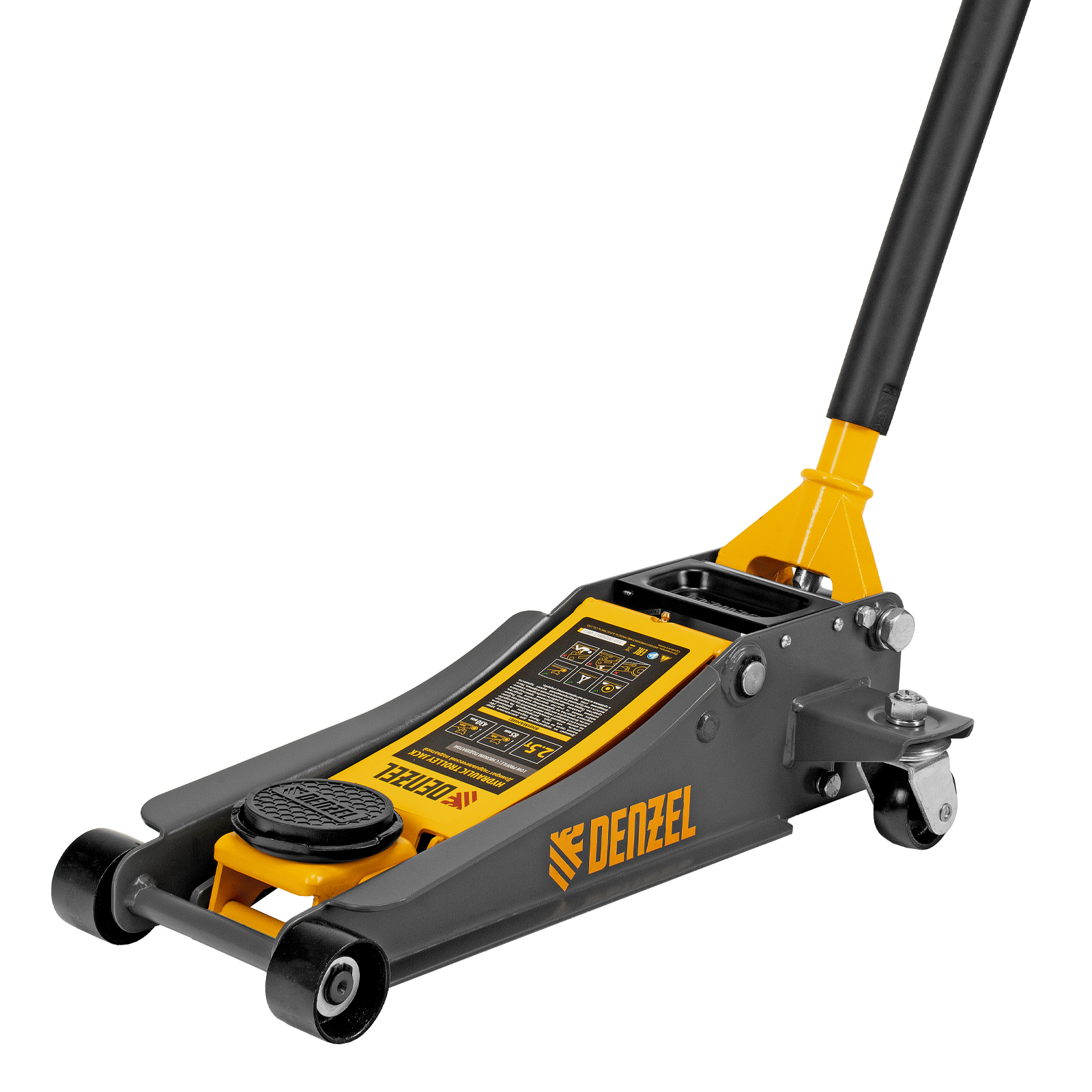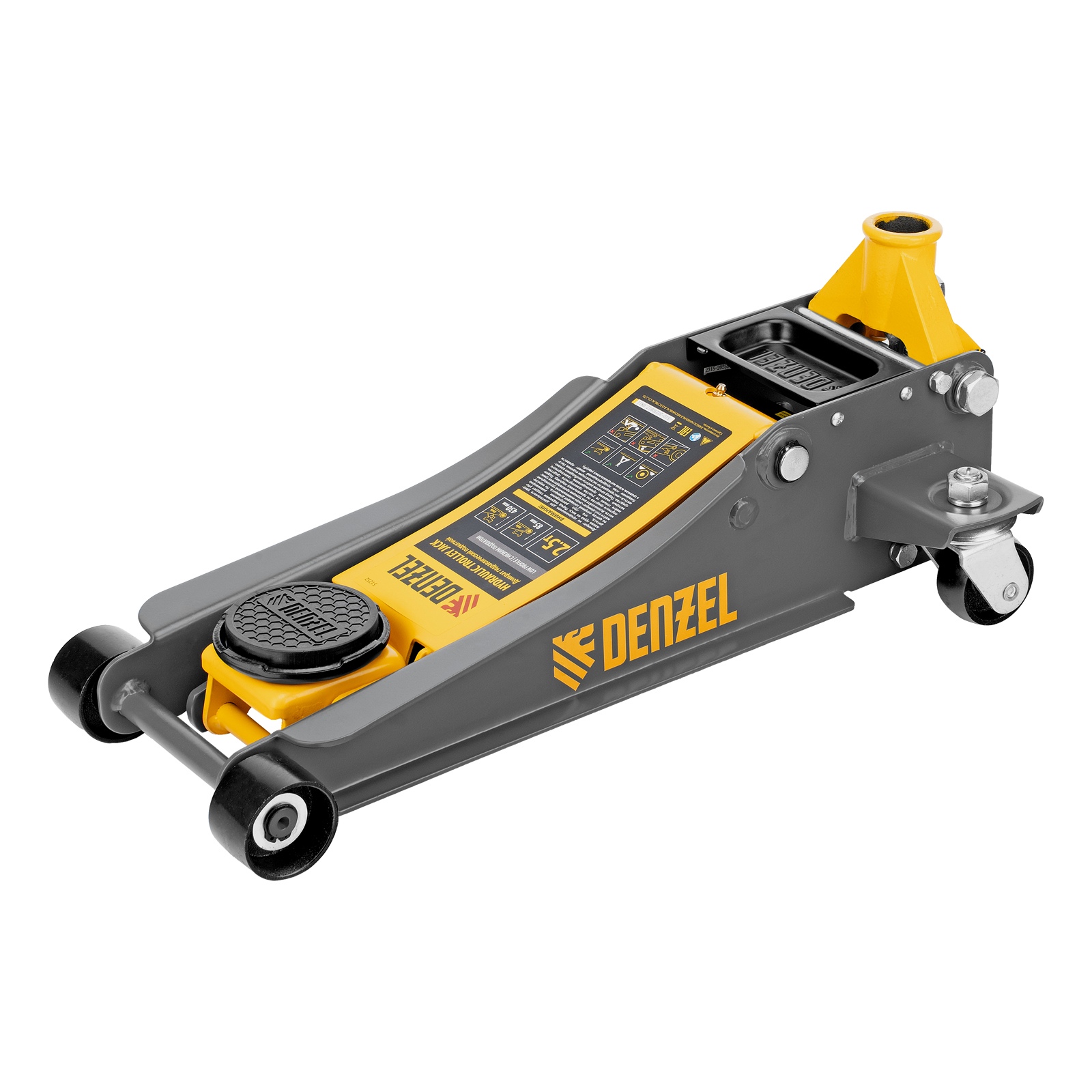 Профессиональный подкатной гидравлический домкрат Denzel 51252 с низким подхватом используется для быстрого подъема на высоту с 85 до 430 мм всех типов автомобилей массой до 2,5 т и с любым клиренсом, в том числе сверхнизким. В гидравлическом блоке предусмотрено 2 насоса (система быстрого подъема QUICK LIFT), благодаря чему для достижения предельной высоты достаточно 6 качков рукоятки. Домкрат подходит для применения на станциях профессионального техобслуживания и шиномонтажа, а также для личного использования.