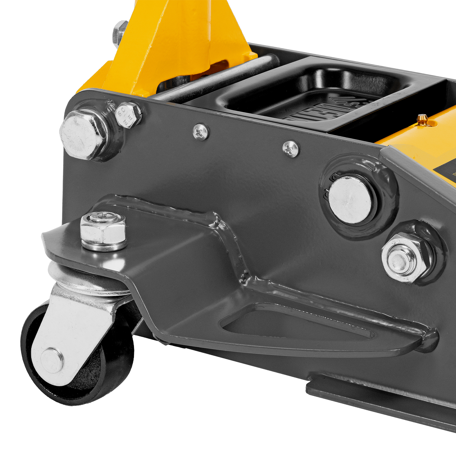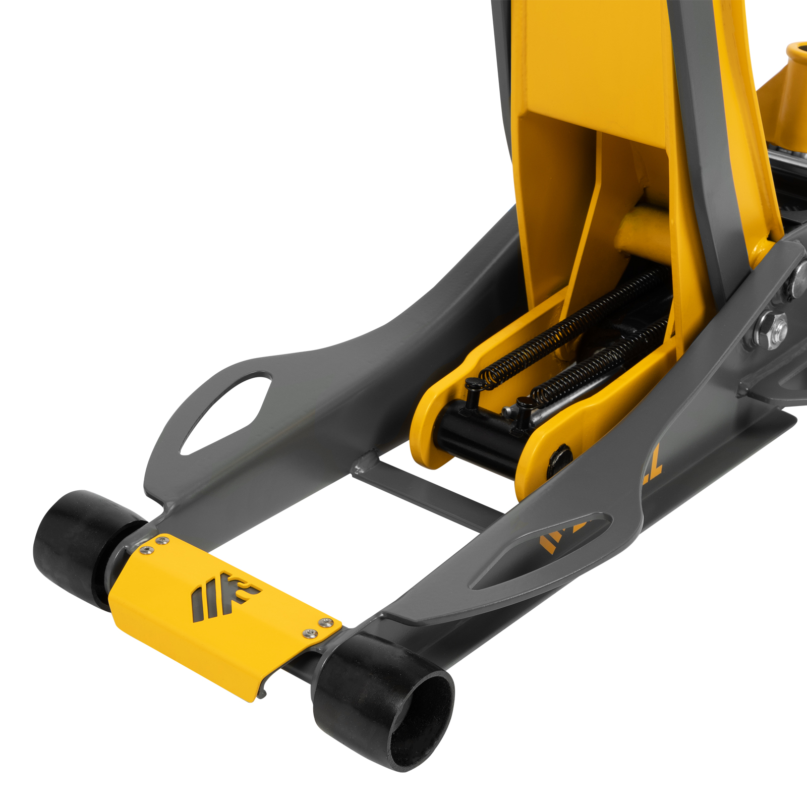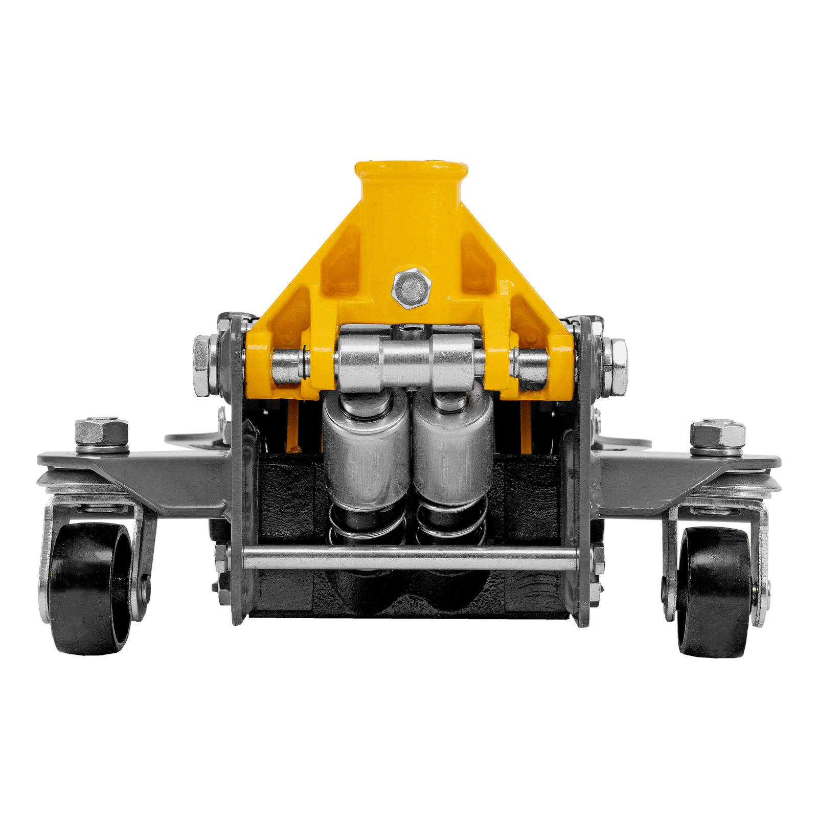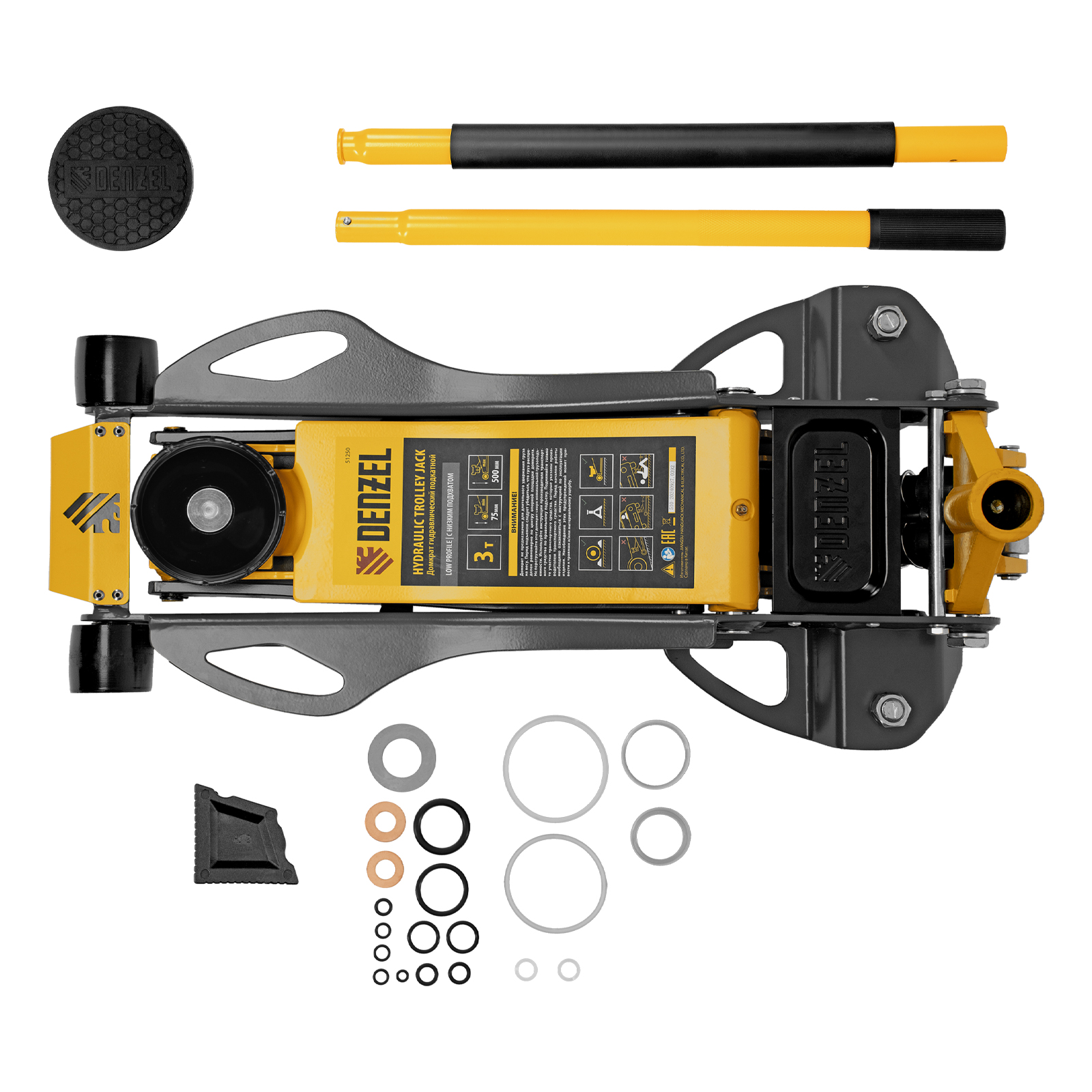 Профессиональный подкатной гидравлический домкрат Denzel 51250 с низким подхватом используется для быстрого подъема на высоту 75-500 мм всех типов автомобилей массой до 3 т и с любым клиренсом, в том числе сверхнизким. В гидравлическом блоке предусмотрено 2 насоса (система быстрого подъема QUICK LIFT), благодаря чему для достижения предельной высоты достаточно 6 качков рукоятки. Домкрат подходит для использования на станциях профессионального техобслуживания и шиномонтажа, а также для личного использования.