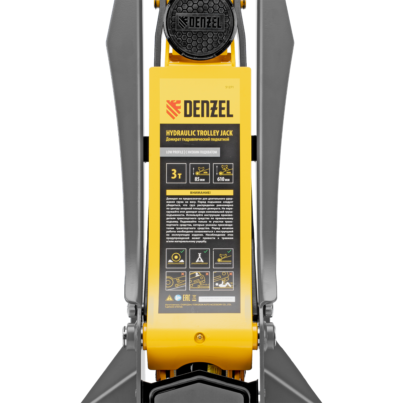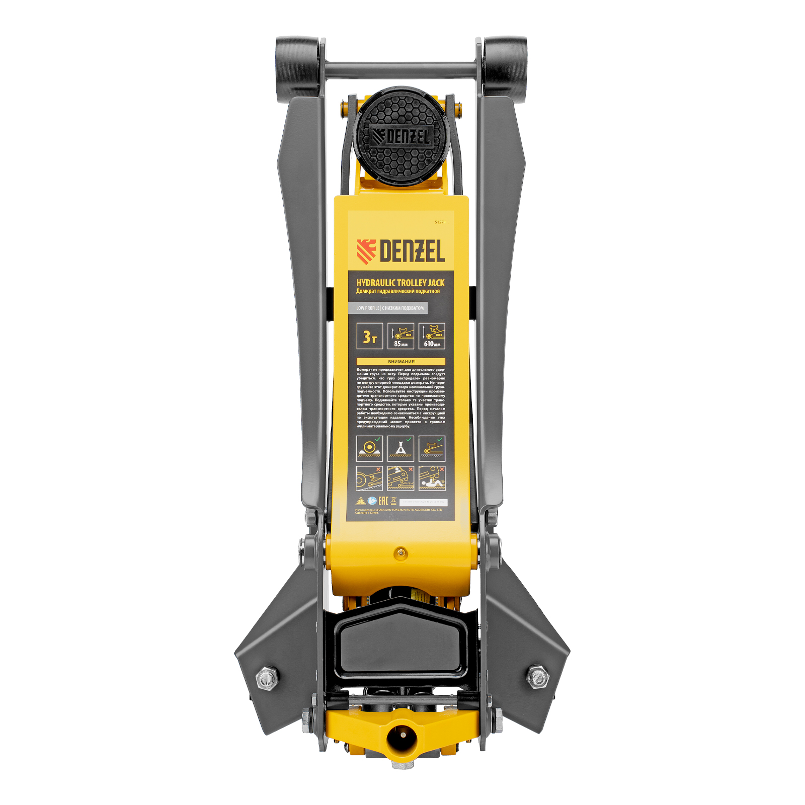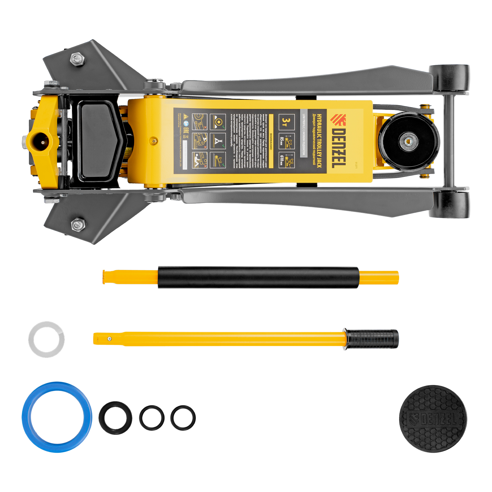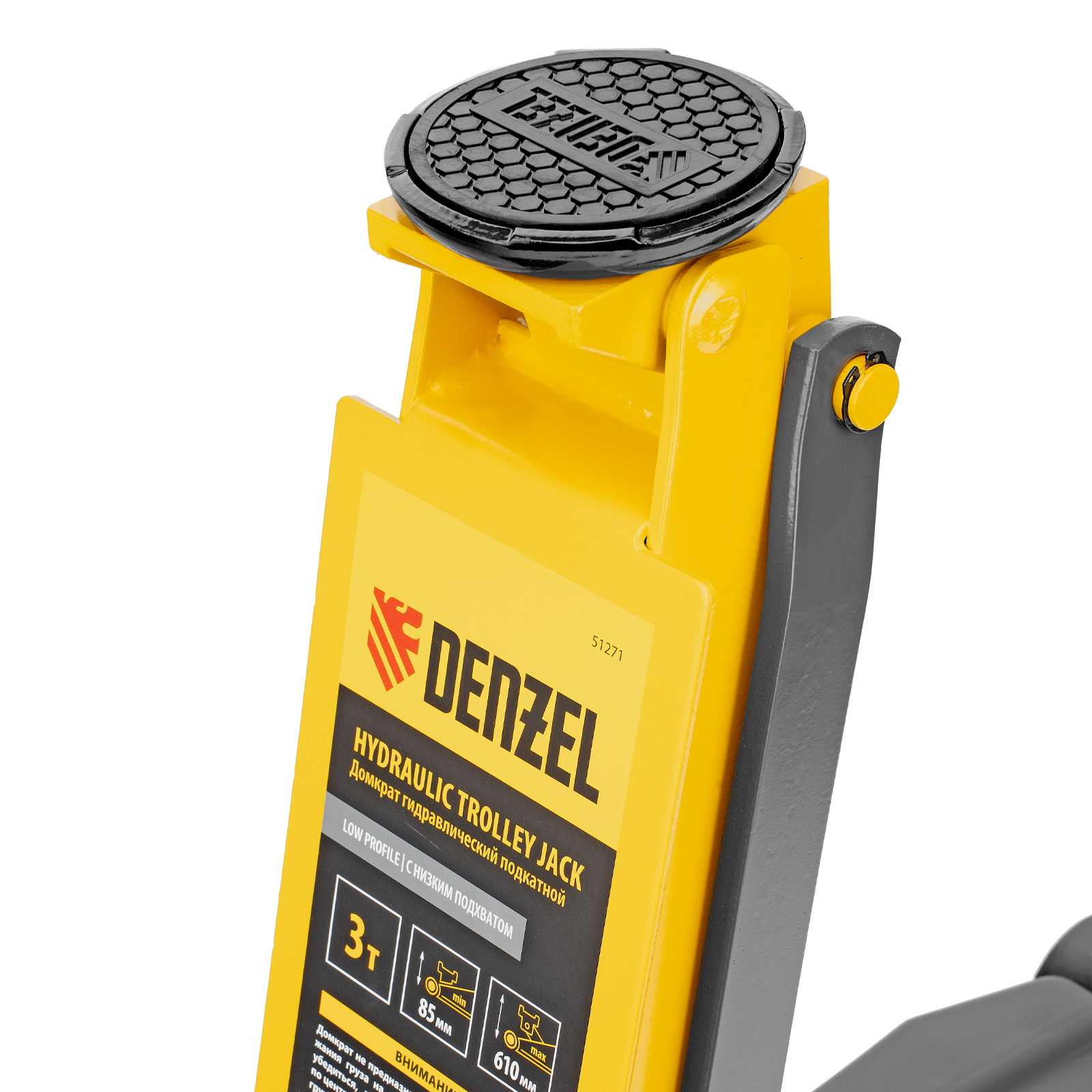 Профессиональный подкатной гидравлический домкрат Denzel 51271 с низким подхватом используется для быстрого подъема на высоту 85-610 мм всех типов автомобилей с любым клиренсом и массой до 3 т, в том числе SUV. В гидравлическом блоке предусмотрено 2 насоса (система быстрого подъема QUICK LIFT), благодаря чему для достижения предельной высоты достаточно 6 качков рукоятки. Домкрат подходит для использования на станциях техобслуживания и шиномонтажа.