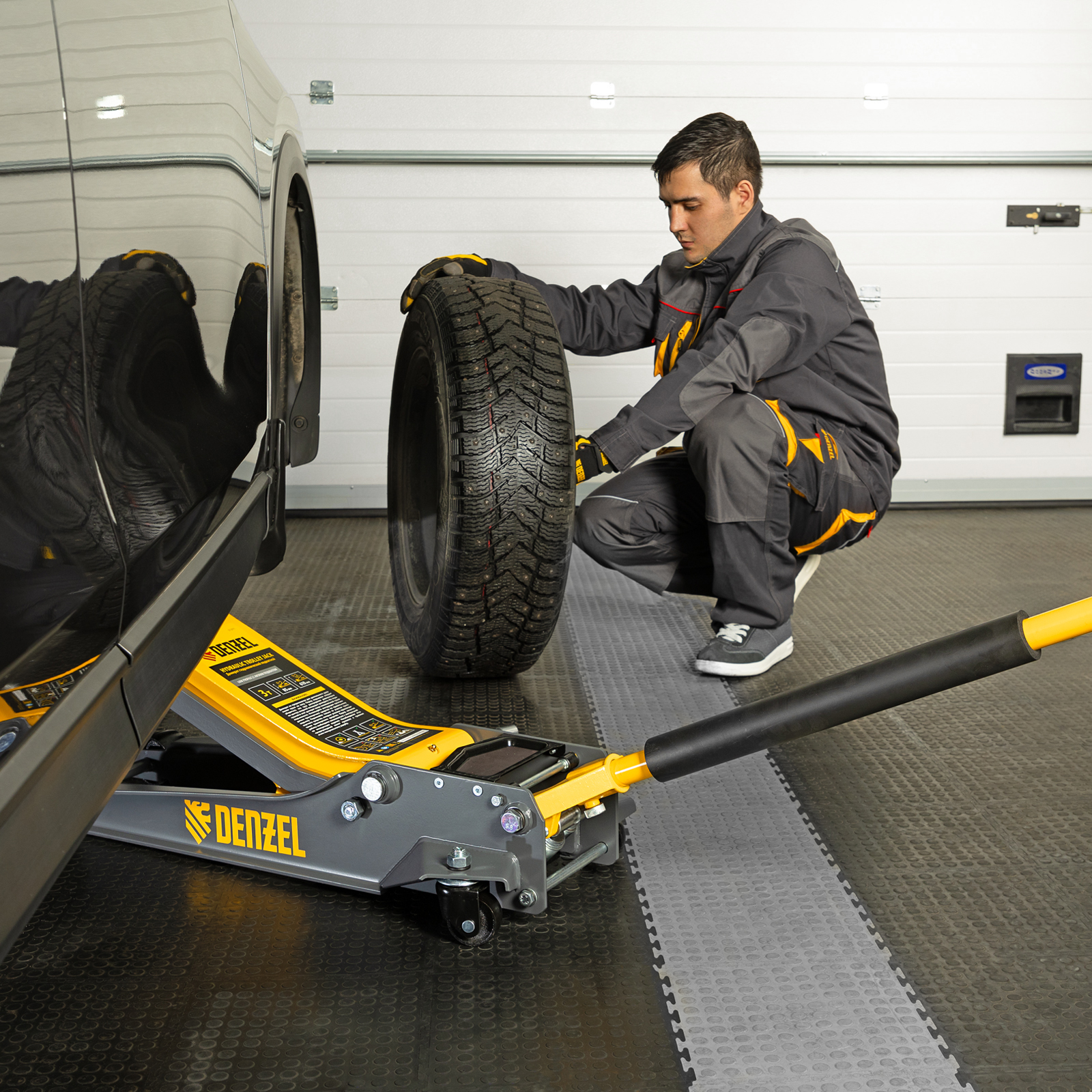 - Аккуратная работа — резиновая опора и прорезиненная рукоятка защищают кузов и днище автомобиля от нежелательных повреждений.