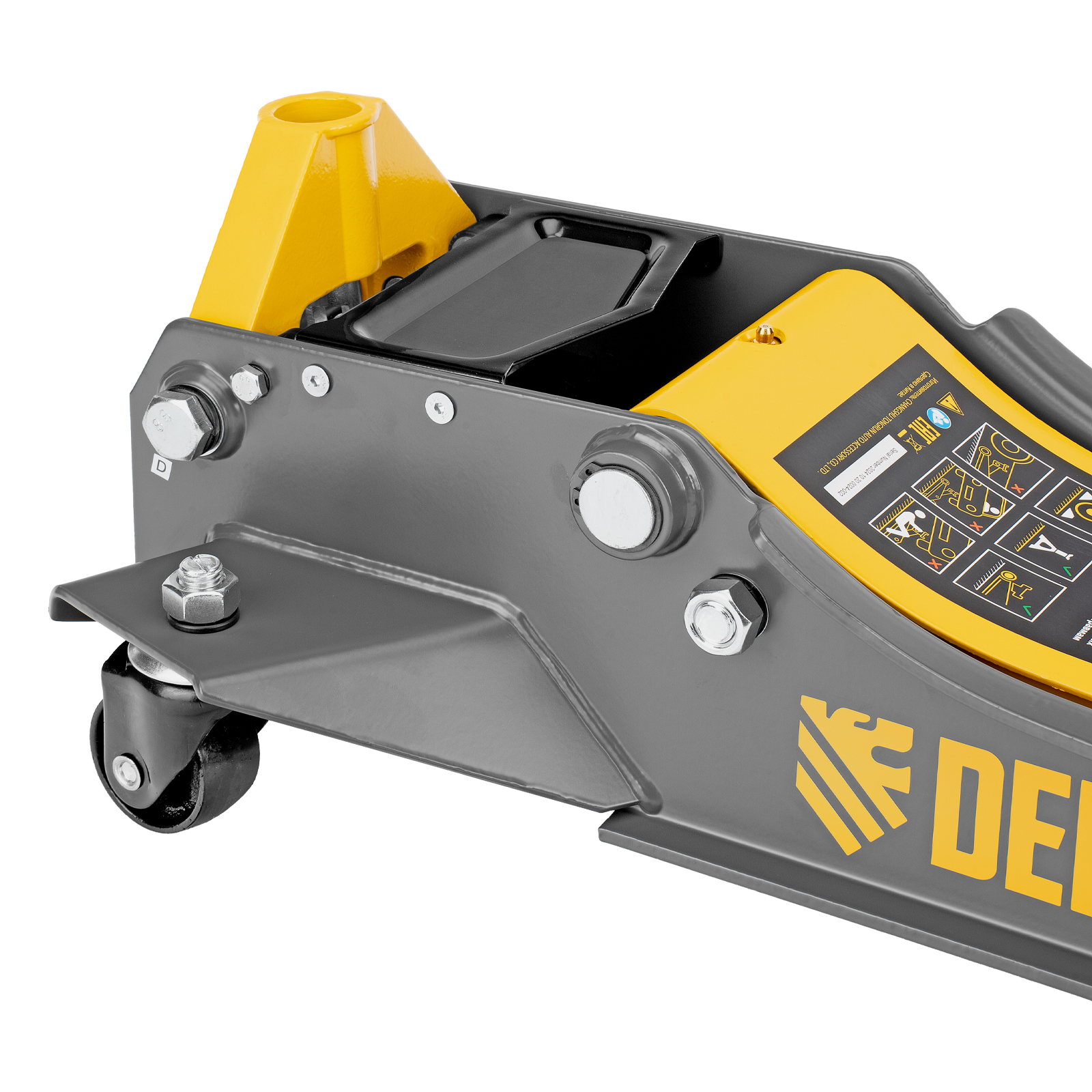 - Внимание к деталям — передние колеса домкрата имеют масленки для смазки подшипников, такое решение исключает возможность заклинивания механизма во время интенсивной работы.