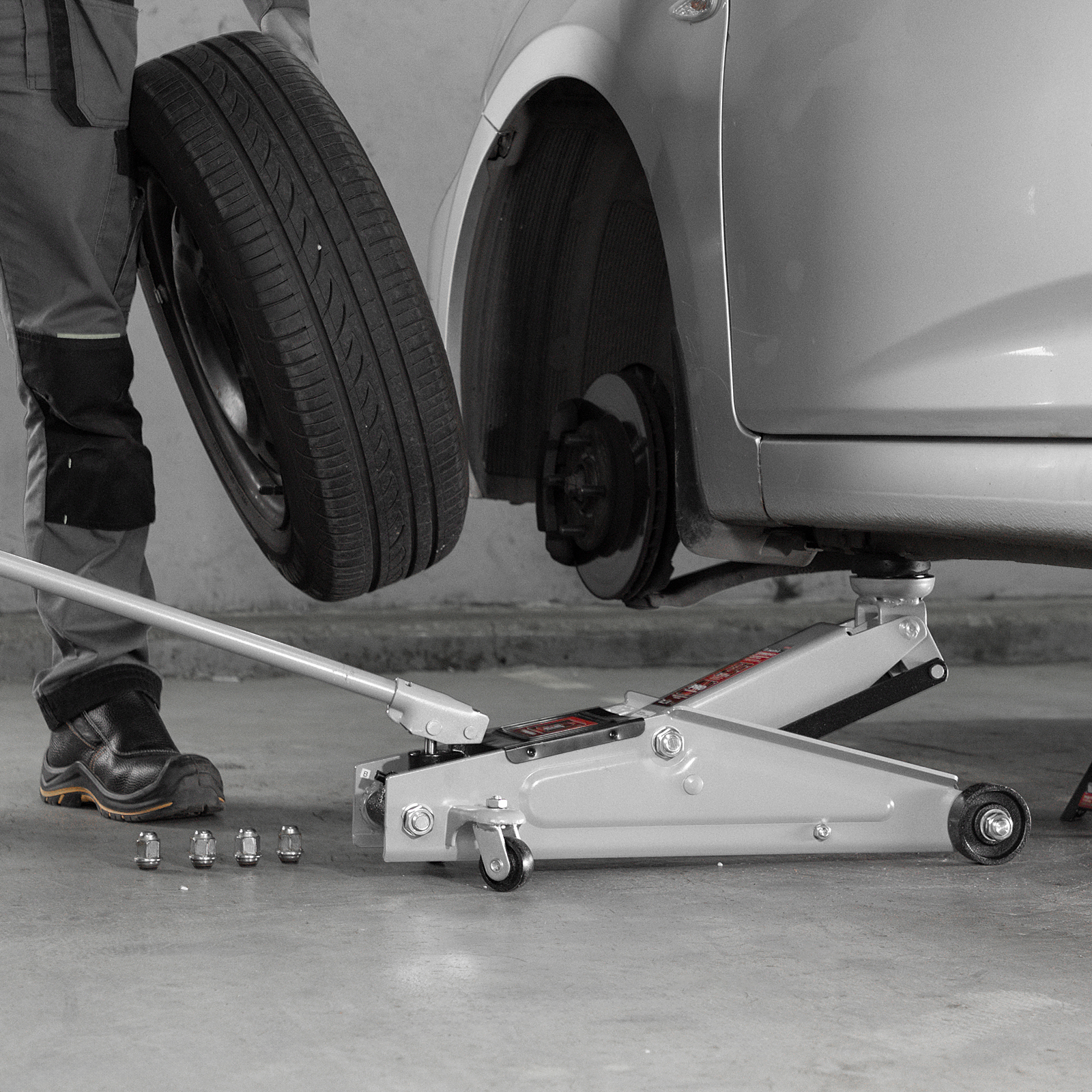 Подкатной гидравлический домкрат Matrix 510345 с поворотной ручкой, с высотой подхвата 130 мм, — полупрофессиональное гаражное оборудование, способное поднимать груз массой до 3 т на высоту до 410 мм. Высота подхвата 130 мм позволяет использовать домкрат для автомашин со стандартным клиренсом. Домкрат будет полезен как в автомастерской, так и в частном гараже.