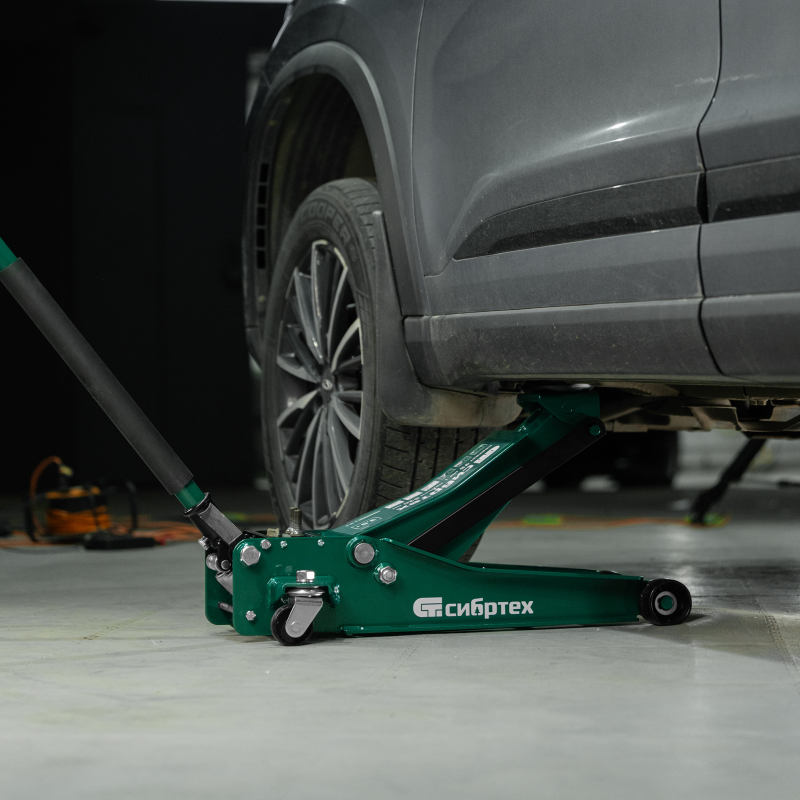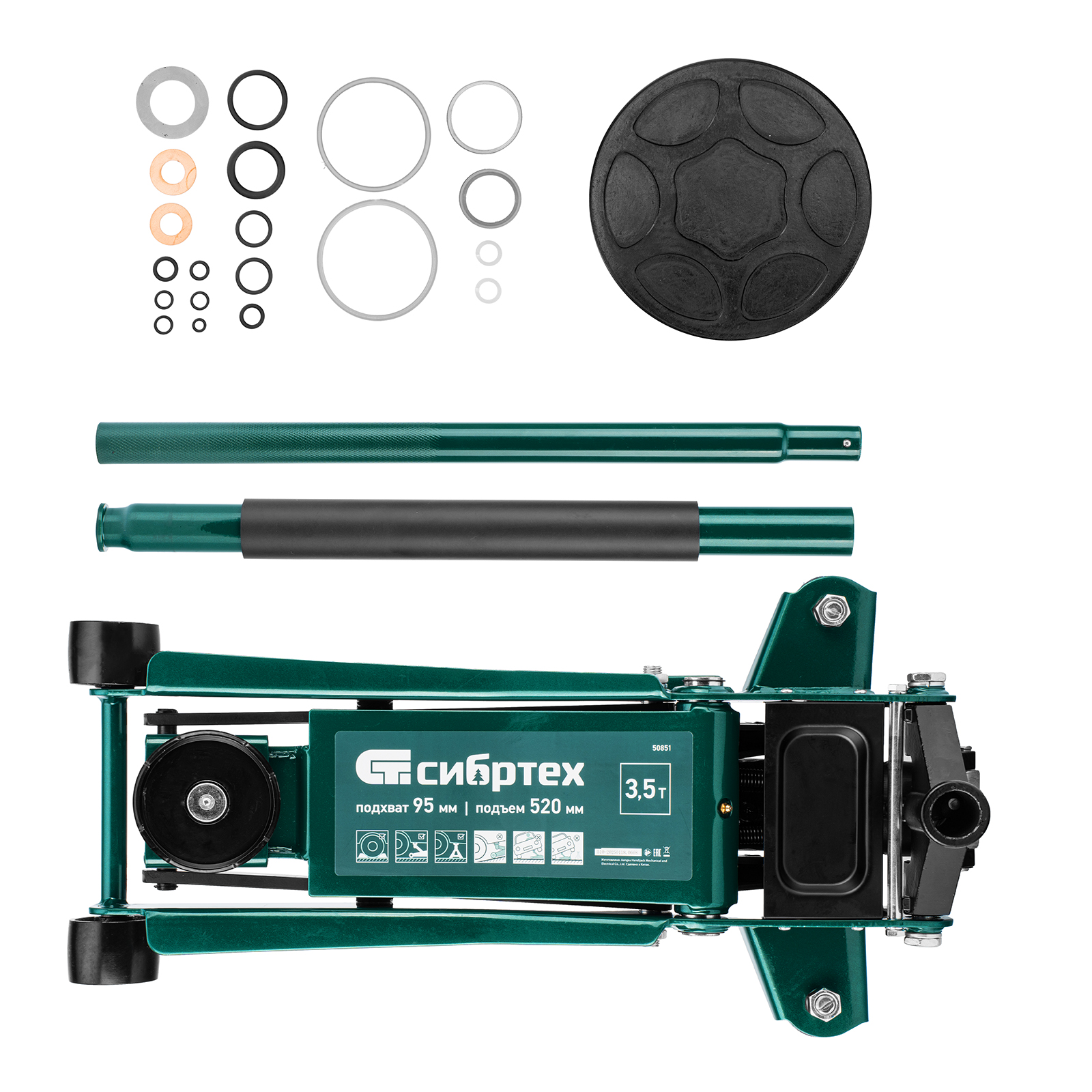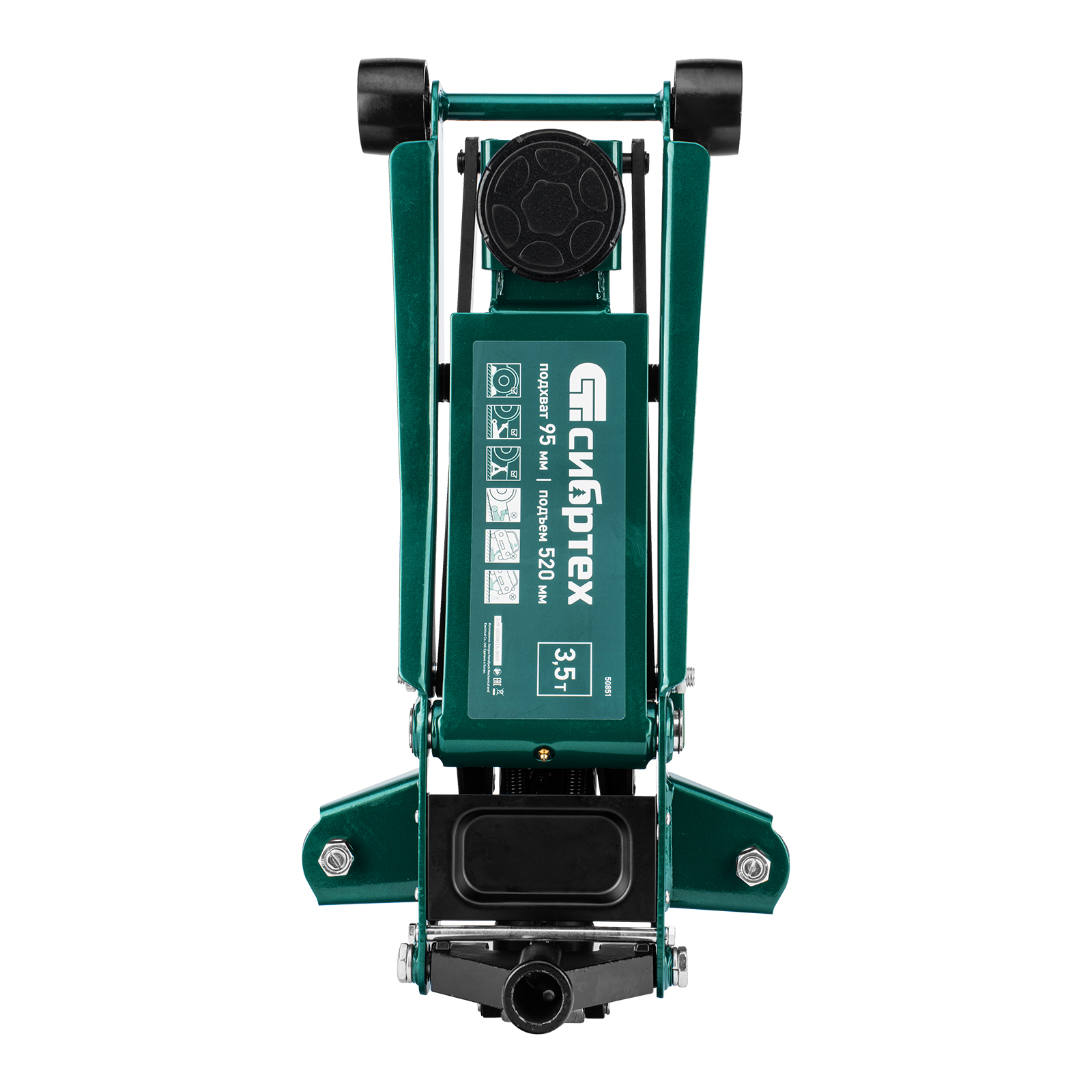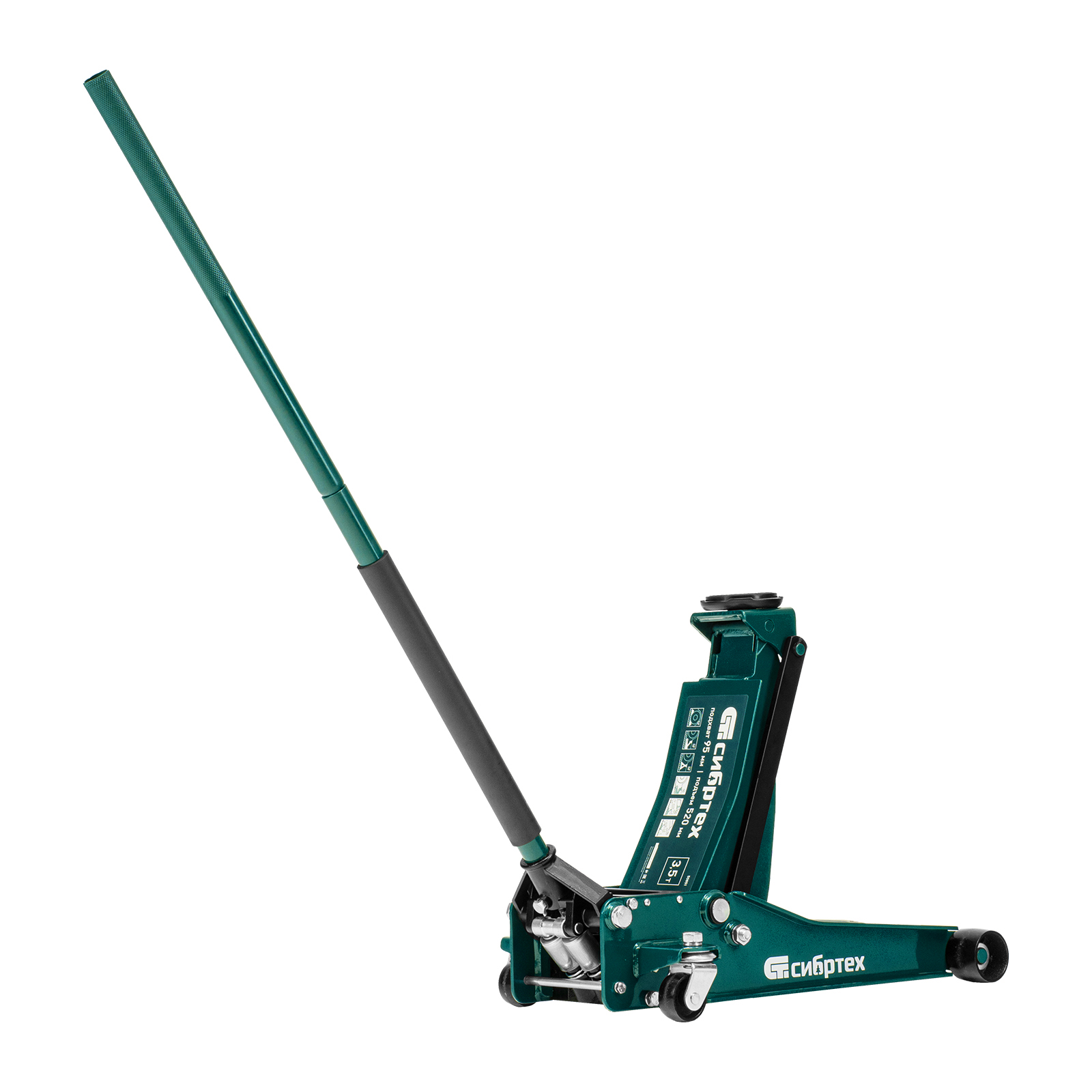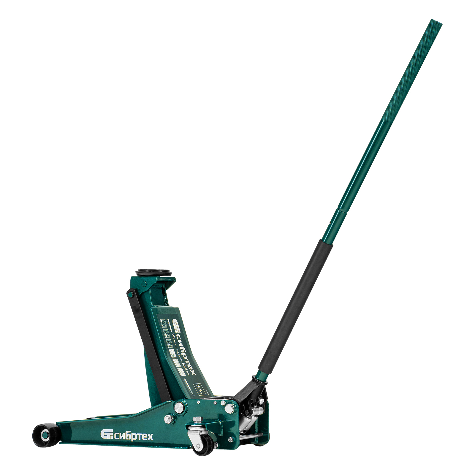 Гидравлический подкатной домкрат Сибртех 50851 с низким подхватом предназначен для быстрого подъема грузов массой 3,5 тонны на высоту с 95 до 520 мм. В гидравлическом блоке предусмотрено 2 насоса (система быстрого подъема QUICK LIFT), благодаря чему для достижения предельной высоты достаточно 6 качков рукоятки. Подходит не только для машин с небольшим клиренсом, но и для автомобилей класса SUV с увеличенным дорожным просветом. Рекомендован для профессионального использования, незаменим на предприятии автосервиса.