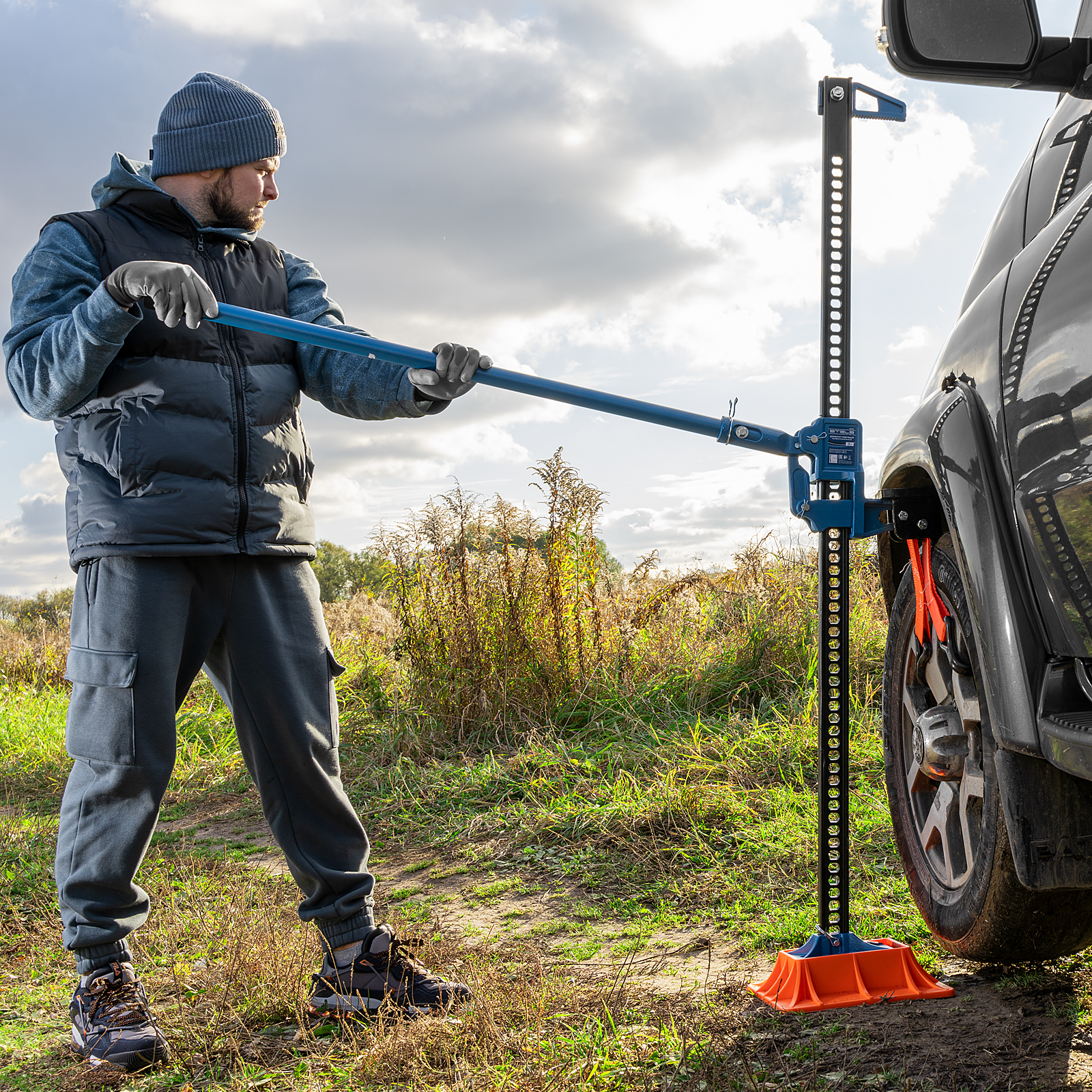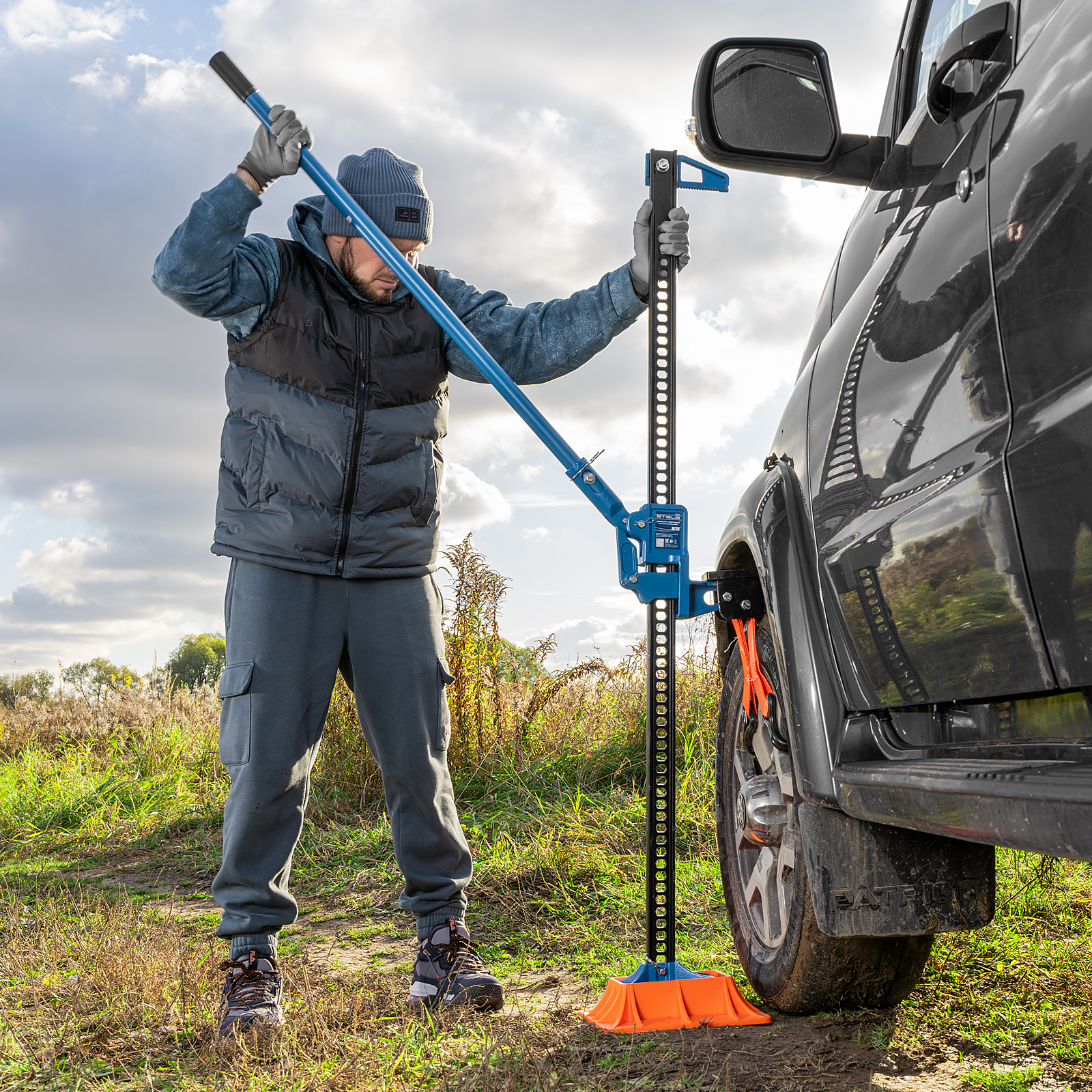 - Длительный срок службы — домкрат выполнен из стали, а порошковое покрытие защищает его от коррозии.