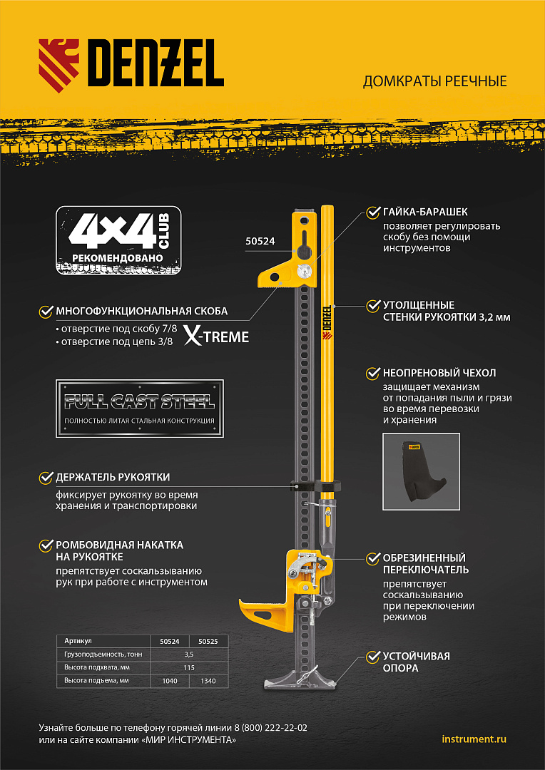 - Протестировано профессионалами — домкрат испытан в полевых условиях и рекомендован OFF-ROAD клубом 4Х4.