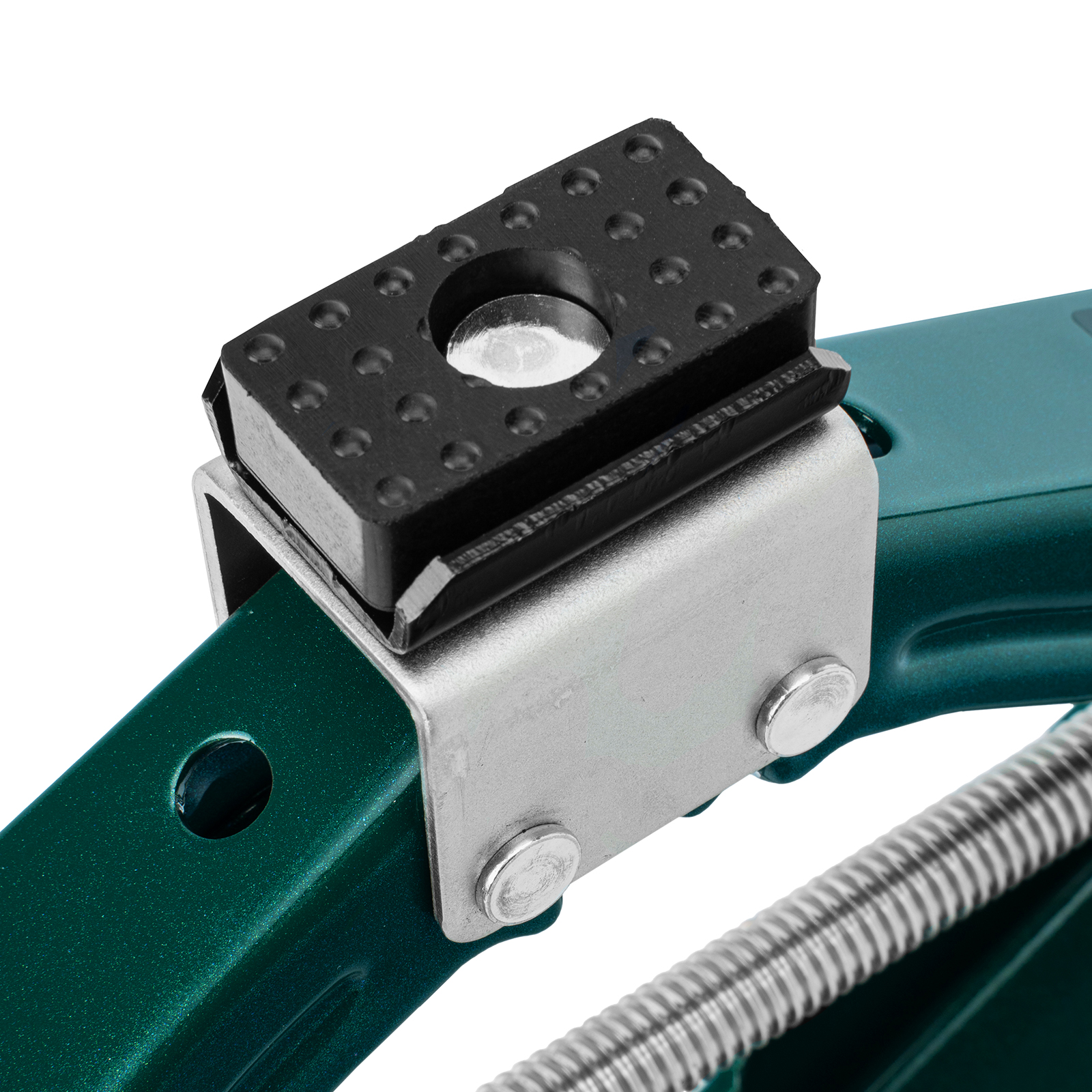 Ромбический домкрат Сибртех 50393 предназначен для подъема грузов массой до 1,2 т на высоту со 100 до 350 мм. Подходит для автомобилей с небольшим клиренсом. Опорная площадка с поворотным механизмом вращается на 360°, что упрощает установку домкрата. Домкрат будет полезен в гараже, пригодится также в поездке.