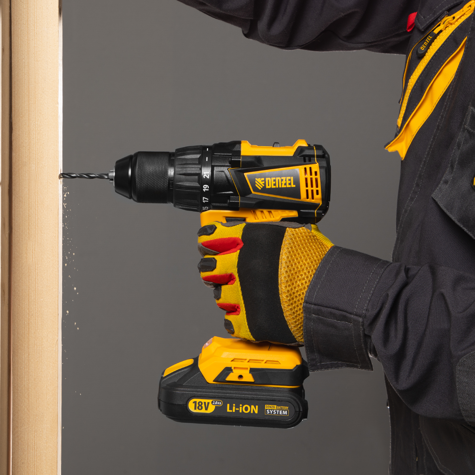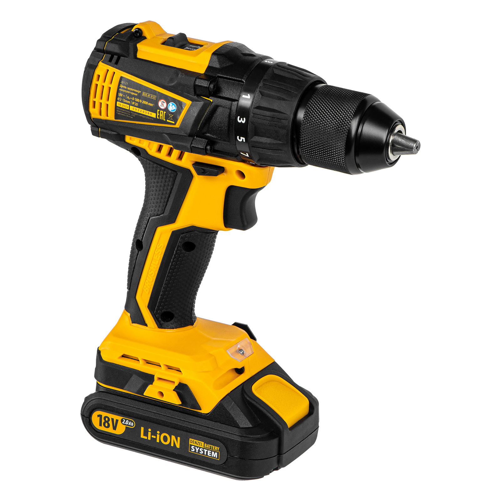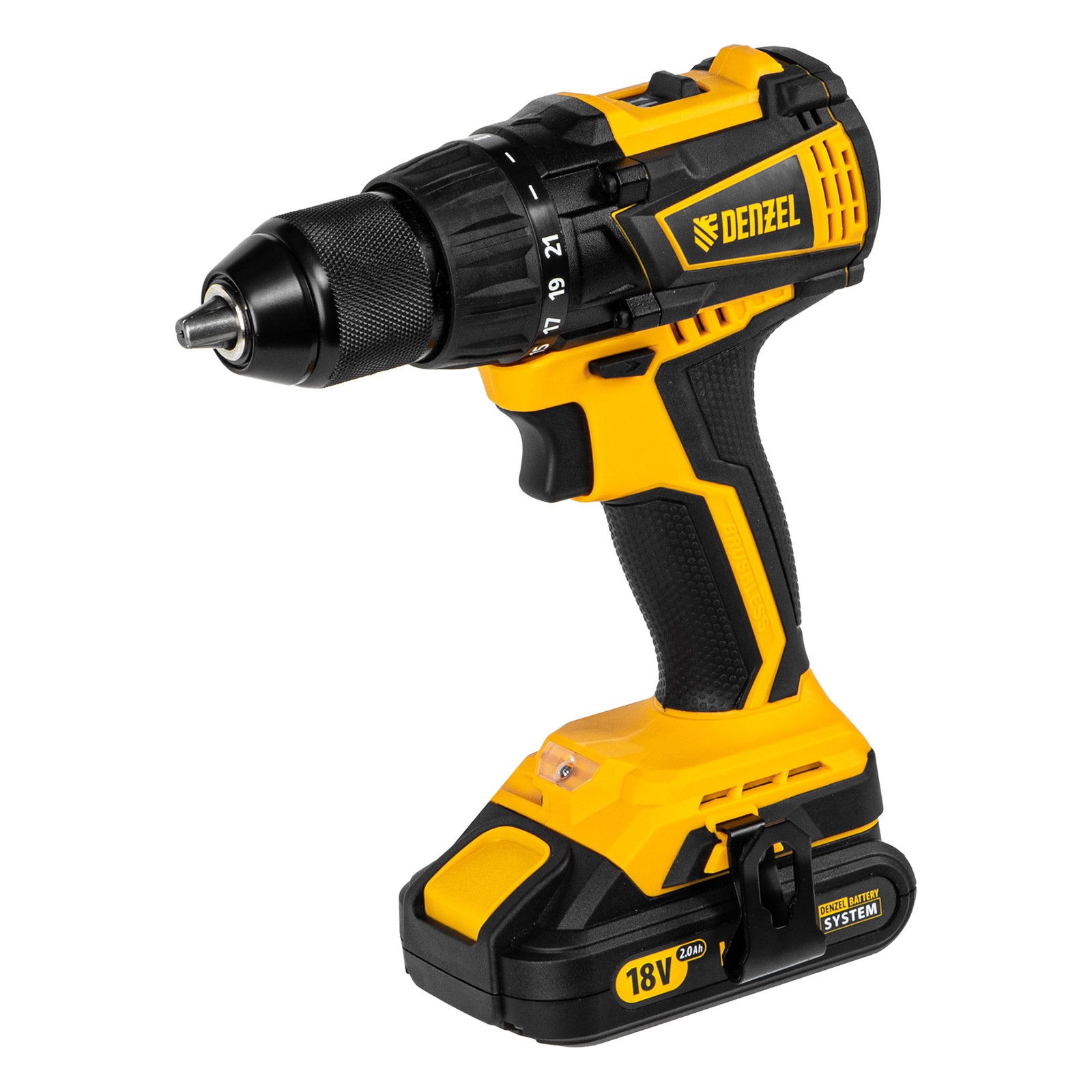 - Универсальность — аккумуляторы 2 Ач Li-ion с интеллектуальной системой распознавания нагрузки совместимы с любым инструментом 18V Denzel battery system.