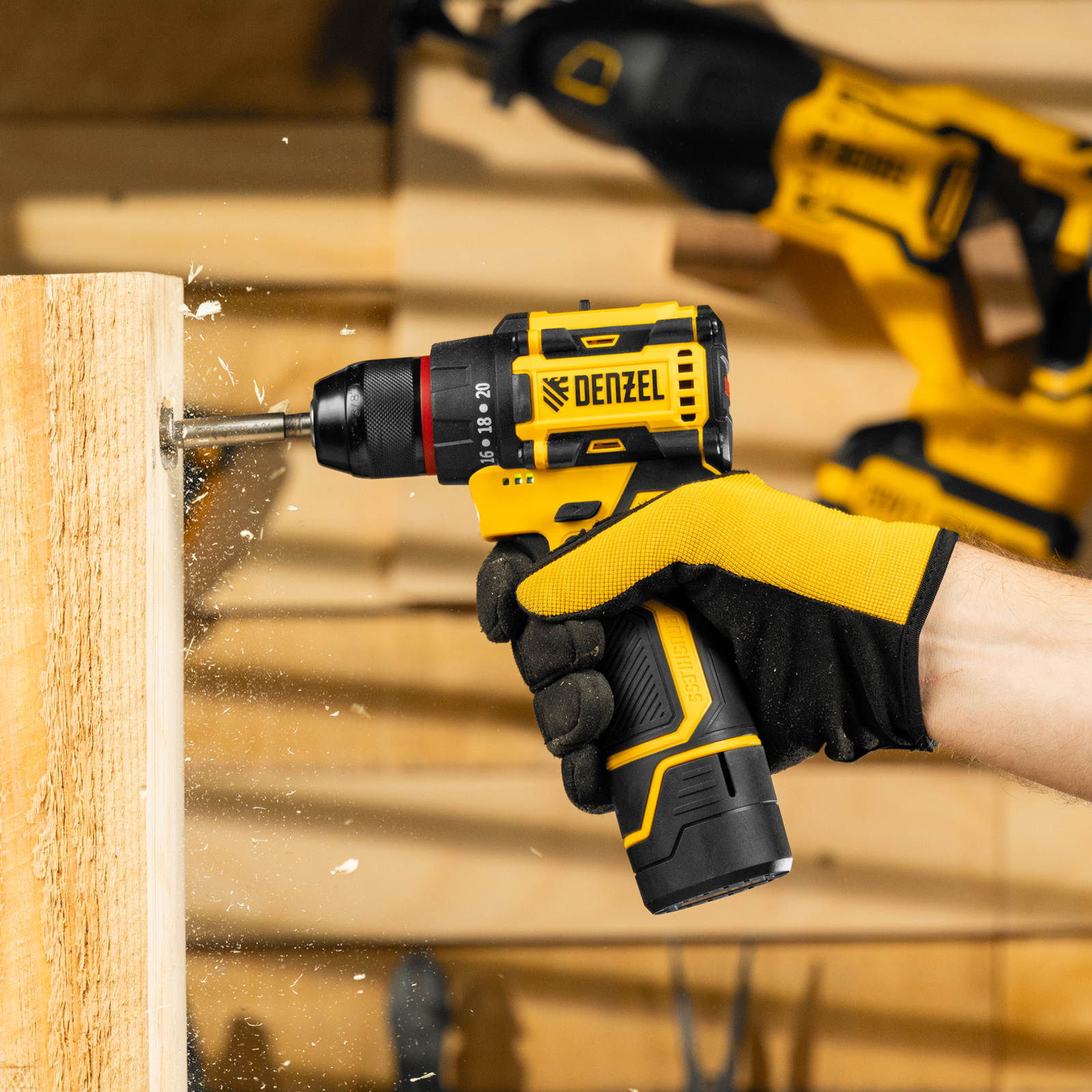 Аккумуляторная дрель-шуруповерт Denzel CDH-BL-12 26108 используется для закручивания и откручивания резьбового крепежа, а также для сверления отверстий в древесине, металле, пластмассе и других материалах. Максимальный диаметр сверления в металле составляет 10 мм, в древесине — 25 мм. Работает от аккумулятора Li-Ion 12 В емкостью 2 А·ч. Мощный бесщеточный двигатель позволяет развивать крутящий момент до 45 Н·м для эффективного применения в быту.