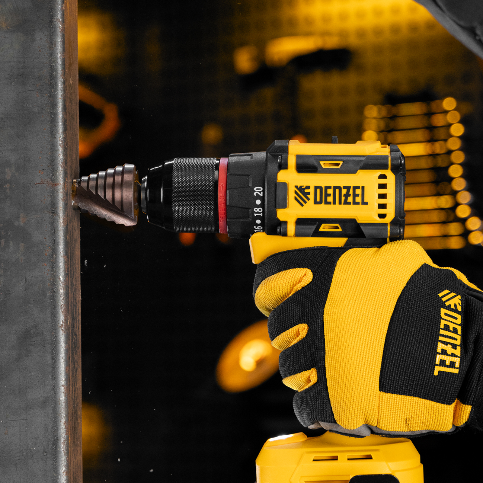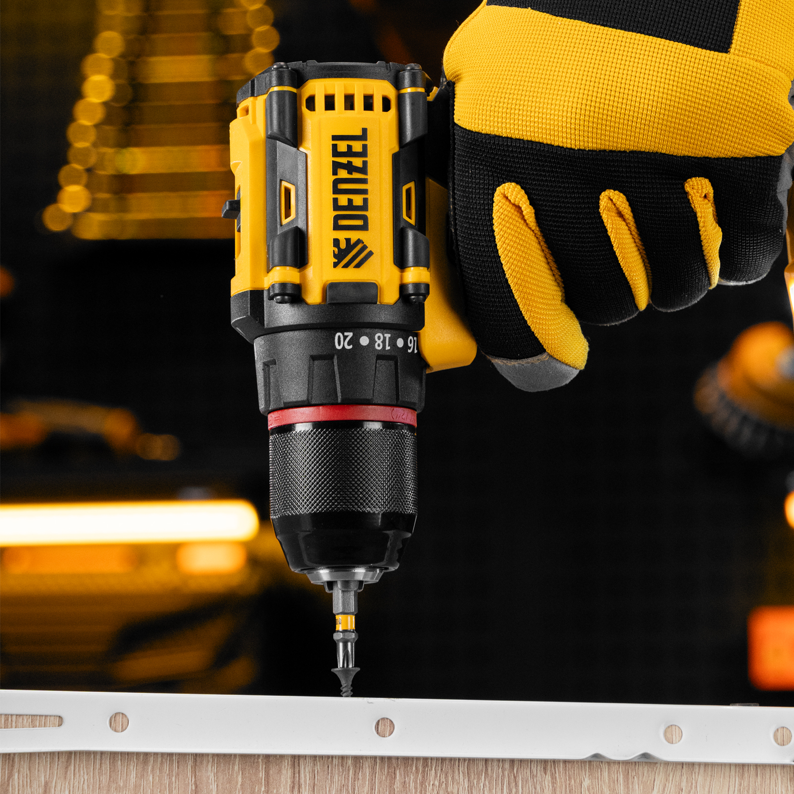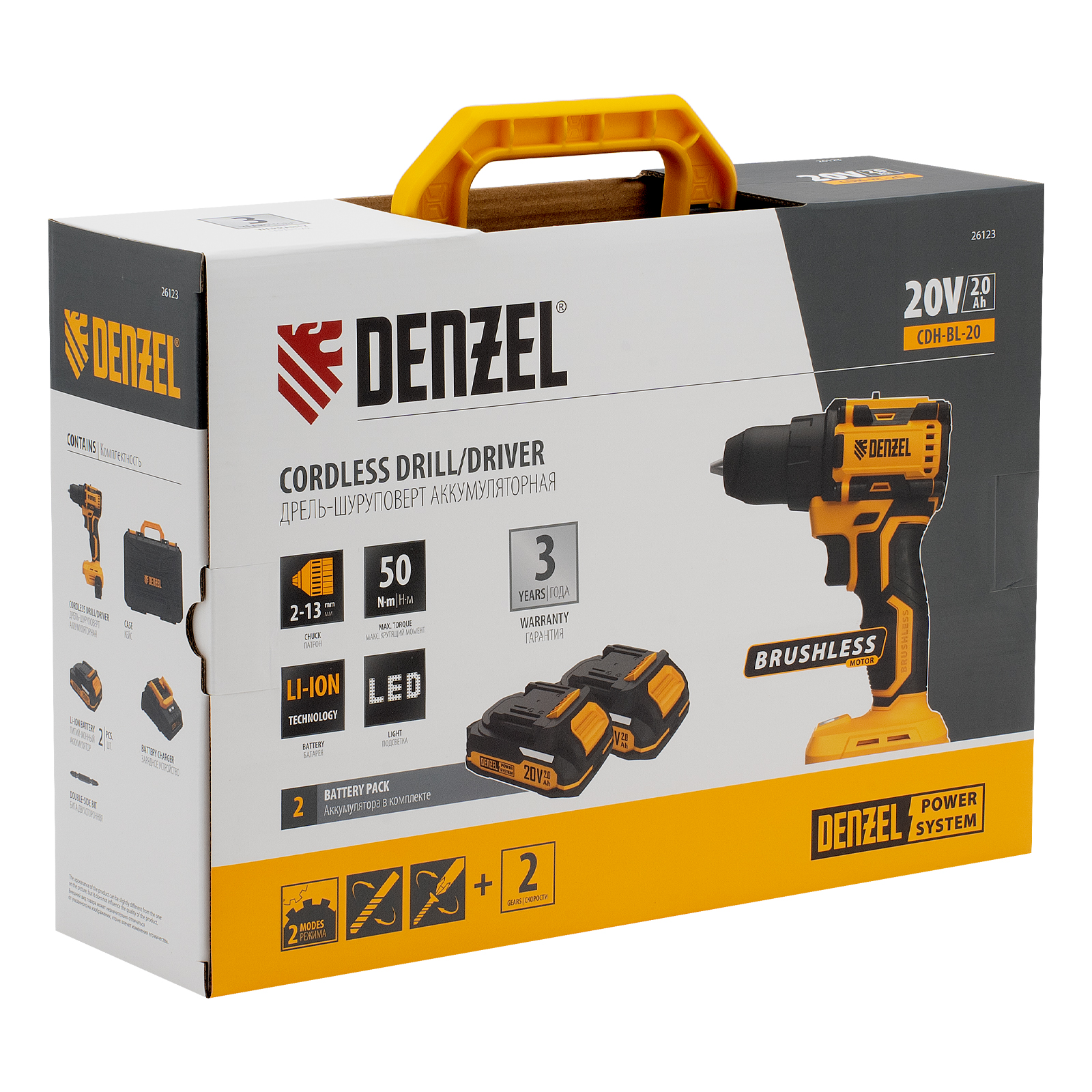 Аккумуляторная дрель-шуруповерт Denzel CDH-BL-20 26123 работает от аккумулятора Li-Ion 20 В и предназначена для закручивания и откручивания резьбового крепежа, а также для выполнения сверлильных работ. Максимальный крутящий момент составляет 50 Н·м, что позволяет затягивать крепеж со значительным усилием. При помощи инструмента можно получать отверстия диаметром до 13 мм в металле и до 30 мм — в древесине. Надежный бесщеточный двигатель не требует сложного обслуживания и обеспечивает стабильную работу дрели-шуруповерта в течение длительного времени.
