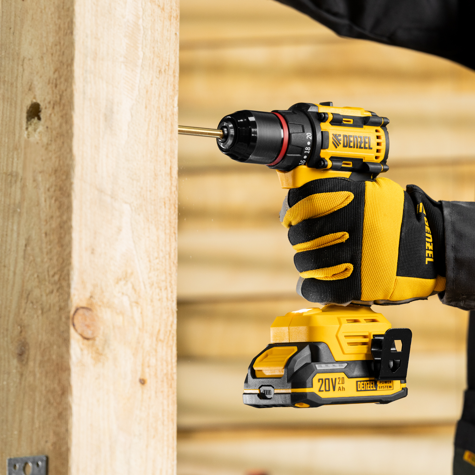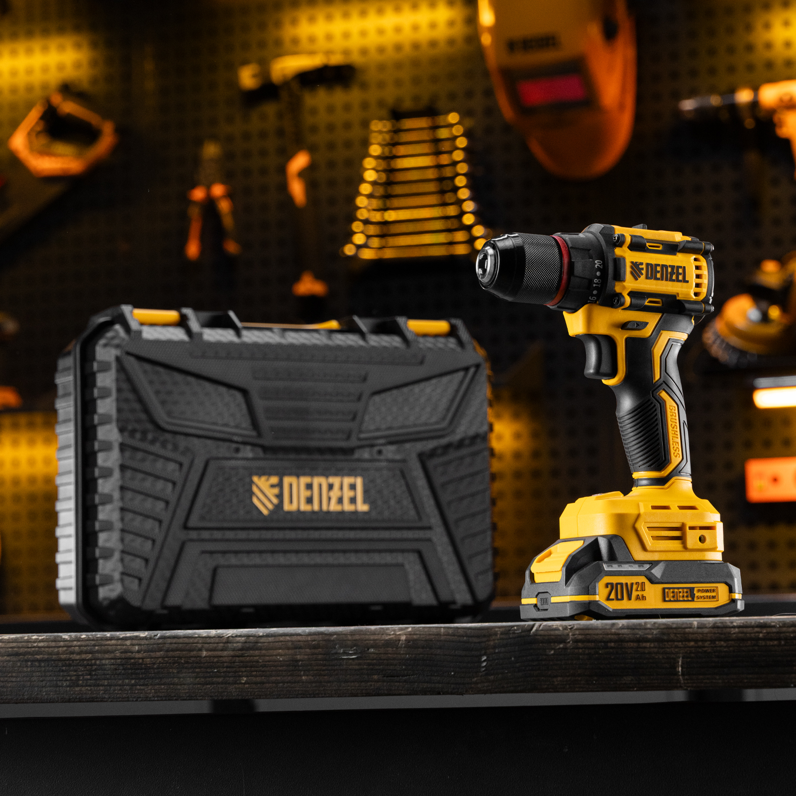 - Универсальность — аккумуляторы Li-Ion емкостью 2 А·ч совместимы со всеми инструментами единой платформы Denzel Power System 20V.