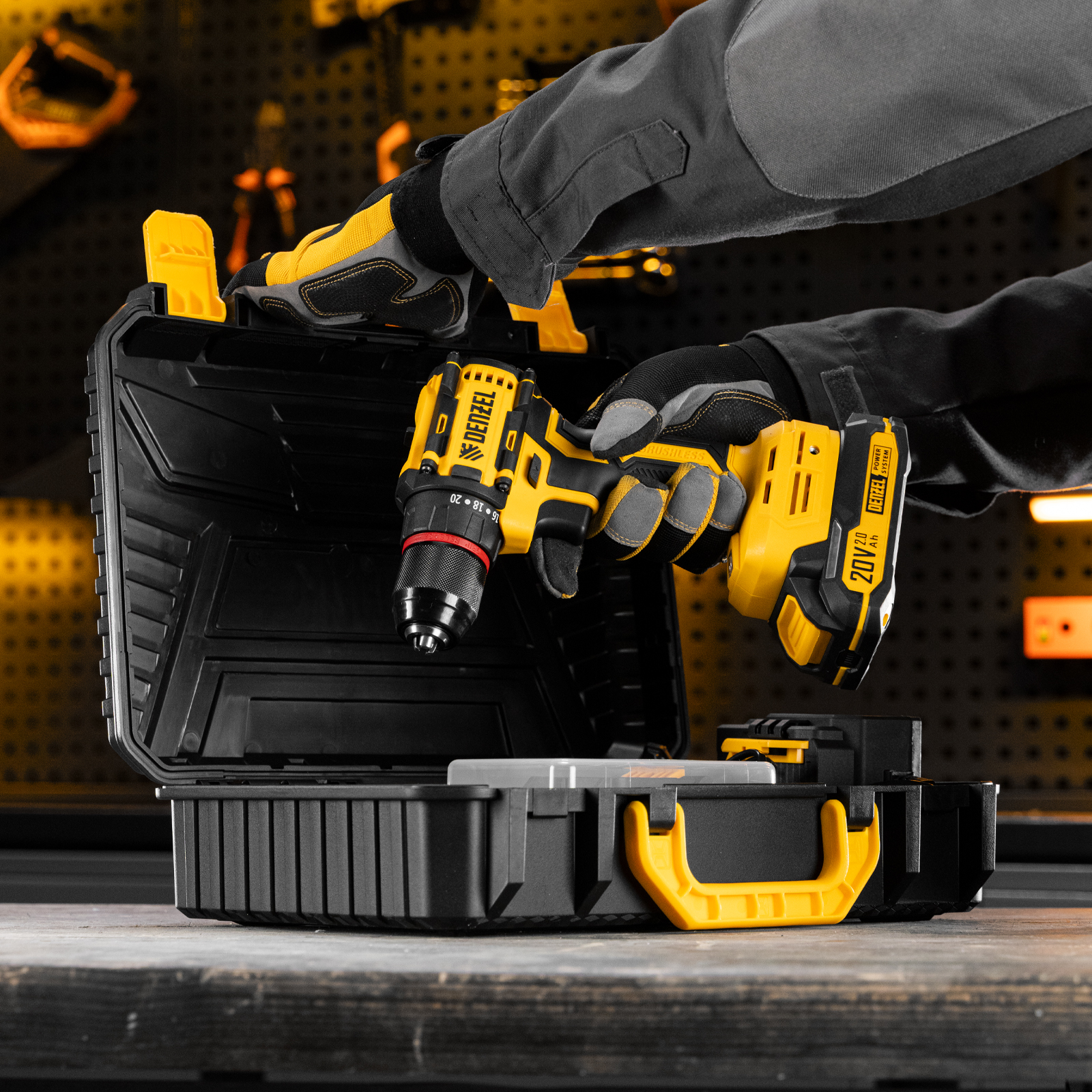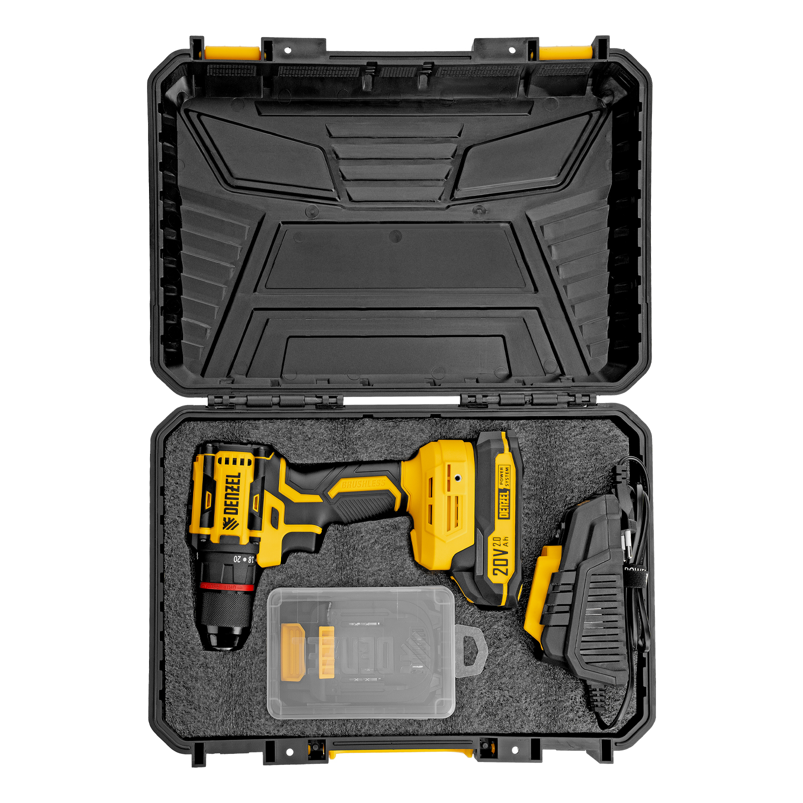 - Удобное хранение и транспортировка — дрель-шуруповерт с аксессуарами поставляется в прочном пластиковом кейсе.