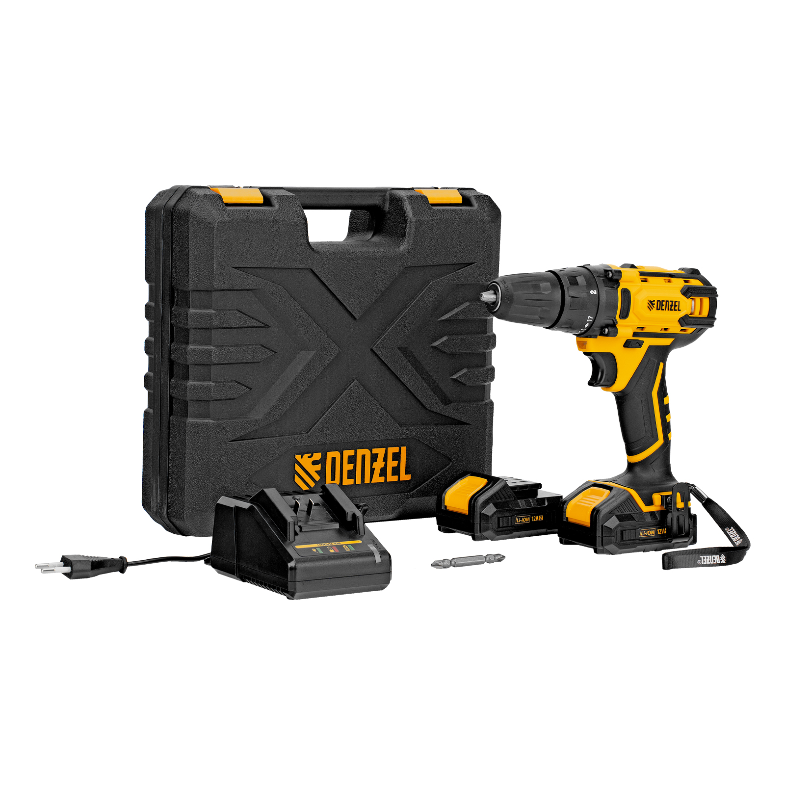 Аккумуляторная дрель-шуруповерт Denzel CDL-12-02BM 26105 с 2 батареями Li-Ion 12 В предназначена для монтажа и демонтажа резьбовых соединений, cверления отверстий в металле (до 10 мм), древесине (до 16 мм), пластмассе и других материалах. Инструмент пригодится профессионалам и любителям на строительной площадке, дома или на даче.,Надежные литий-ионные аккумуляторы без эффекта памяти и защитой от глубокого разряда обеспечивают долгий срок службы инструмента. Дрель не зависит от сети питания, что делает удобной работу на строительных объектах, на высоте и в отдаленных участках дома.