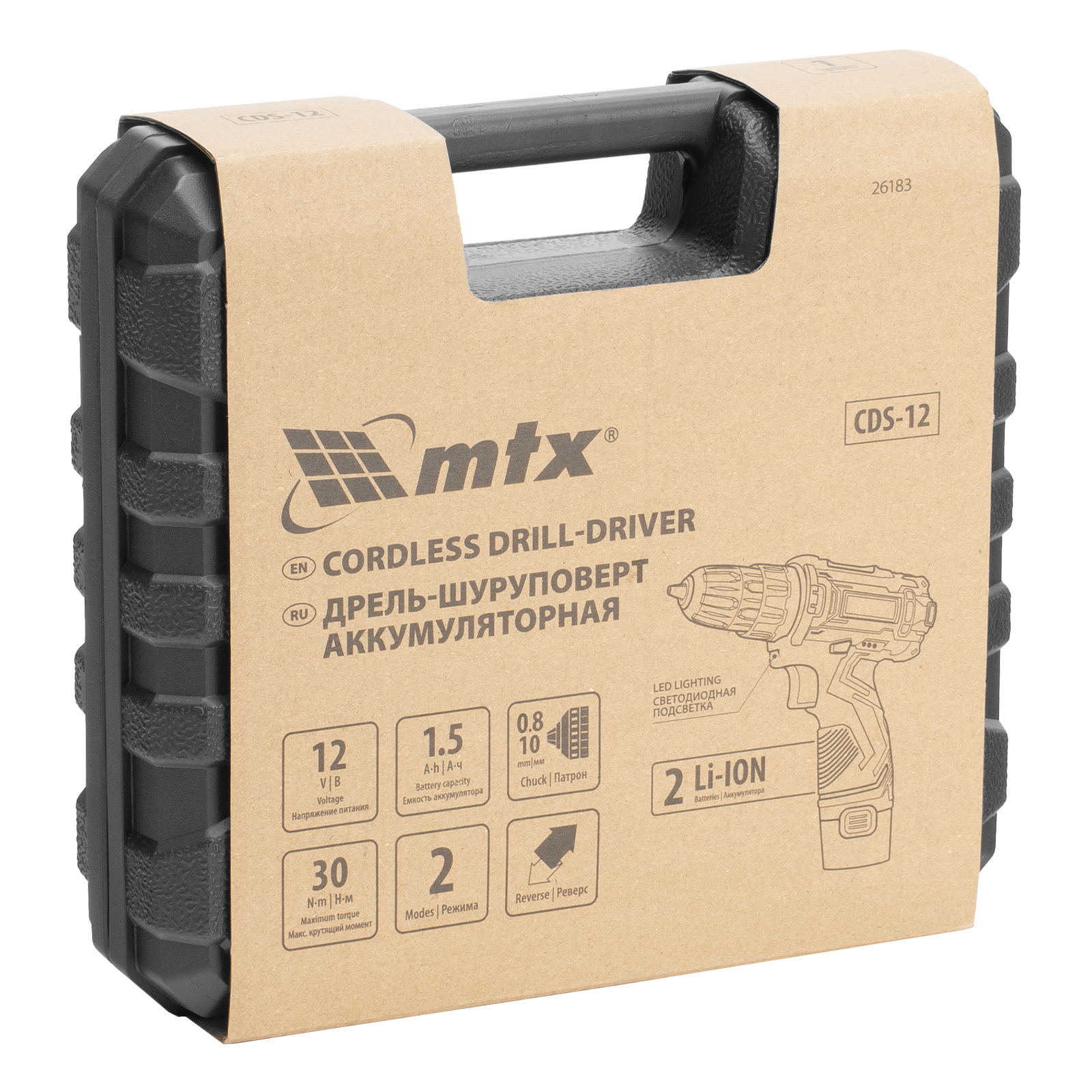 Аккумуляторная дрель-шуруповерт MTX CDS-12 26183 работает от аккумулятора Li-Ion 12 В емкостью 1,5 А·ч и не зависит от стационарного источника электропитания. Предназначена для завинчивания и вывинчивания резьбового крепежа, а также для сверления отверстий в различных материалах. Крутящий момент достигает 30 Н·м (предусмотрена 18+1 ступень регулировки), что позволяет подобрать оптимальное усилие затяжки крепежа в соответствии с поставленной задачей. Патрон совместим с оснасткой 0,8-10 мм. Максимальный диаметр отверстий в древесине составляет 25 мм, в металле — 10 мм.