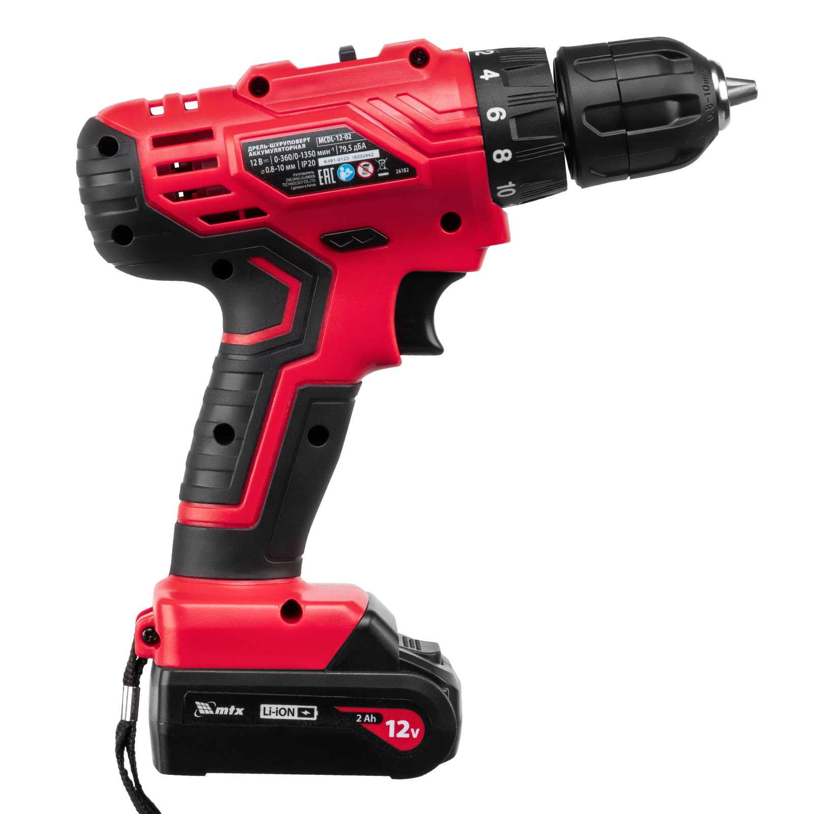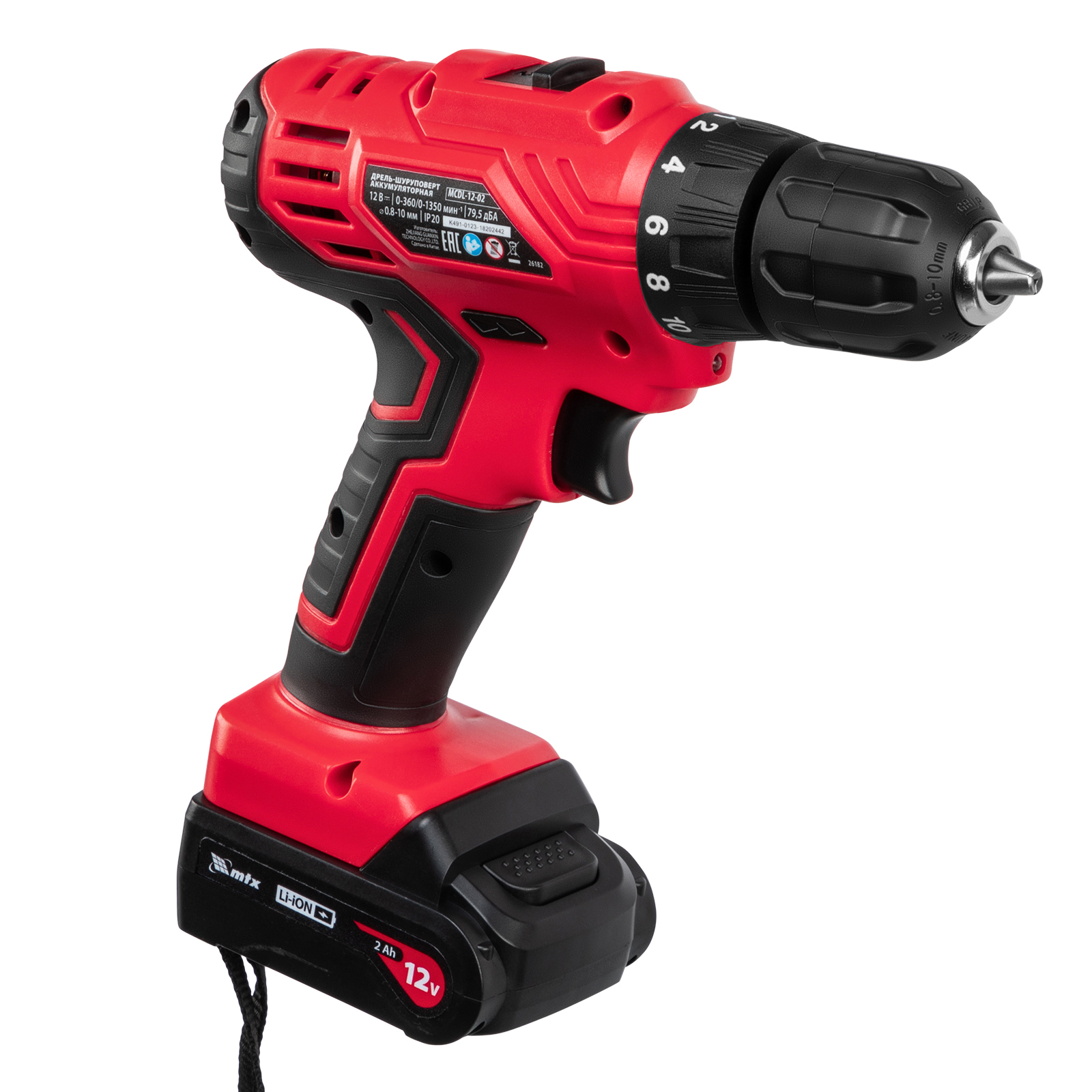 Аккумуляторная дрель-шуруповерт MTX MCDL-12-02 26182 работает от аккумуляторной батареи Li-Ion 12 В емкостью 2 А·ч и развивает крутящий момент до 20 Н·м. Предназначена для закручивания и откручивания резьбового крепежа, а также сверления отверстий в металле (диаметром до 6 мм), древесине (до 20 мм), пластмассе и других материалах. В комплекте с инструментом идут сразу два аккумулятора, что позволит избежать перерывов в работе.