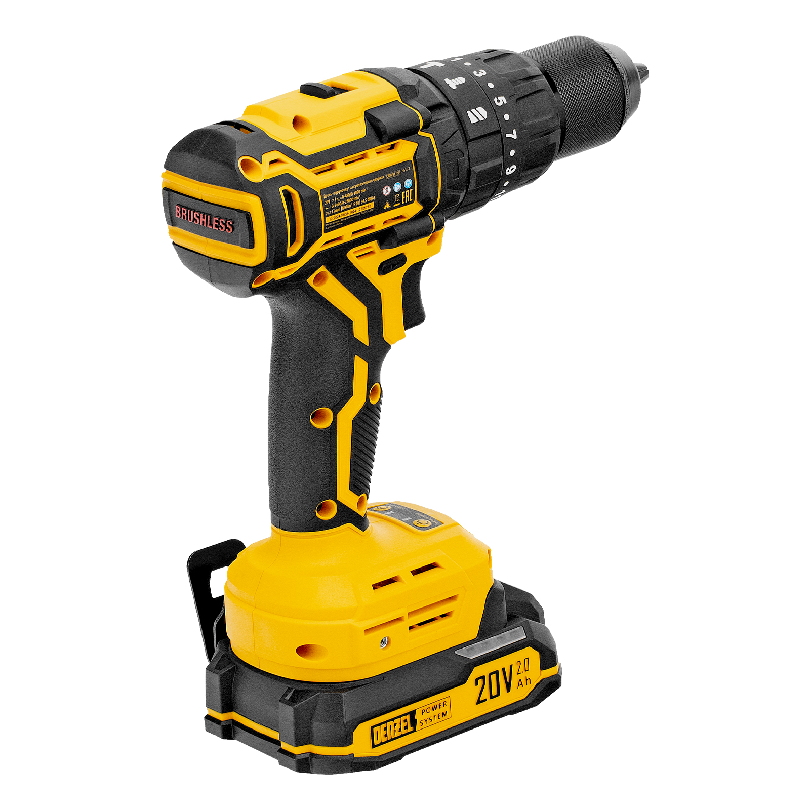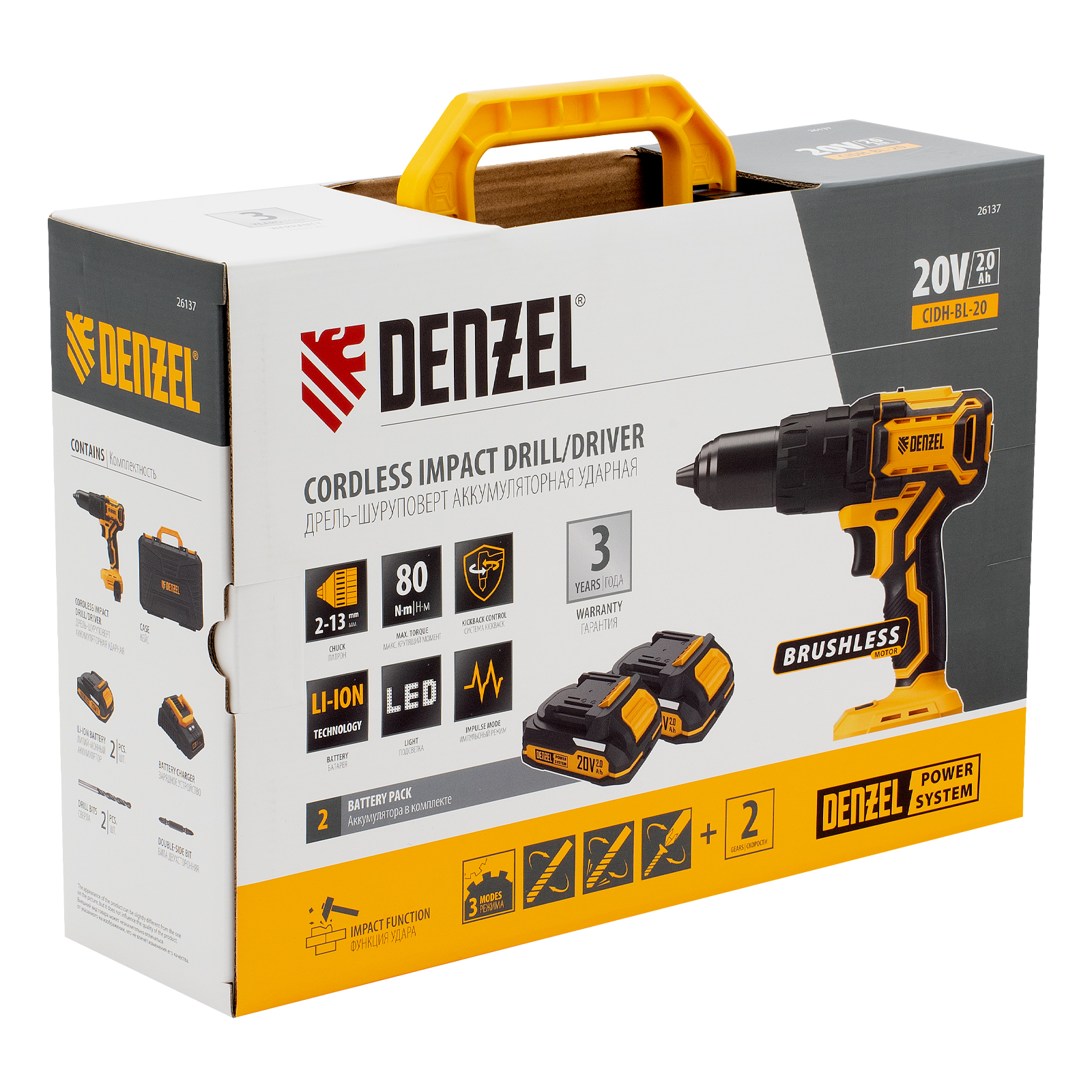 Аккумуляторная ударная дрель-шуруповерт Denzel CIDH-BL-20 26137 с бесщеточным двигателем предназначена для работы с резьбовым крепежом и для получения отверстий диаметром до 35 мм в древесине, до 13 мм в металле и до 8 мм в бетоне. Ударный режим обеспечивает эффективное сверление твердых материалов, таких как кирпич и бетон. Мощный бесщеточный двигатель обеспечивает максимальный крутящий момент 80 Н·м. Патрон совместим со сверлами с хвостовиками 2-13 мм. Инструмент питается от аккумулятора Li-Ion 20 В, оптимален для выполнения бытовых ремонтных и строительных работ.