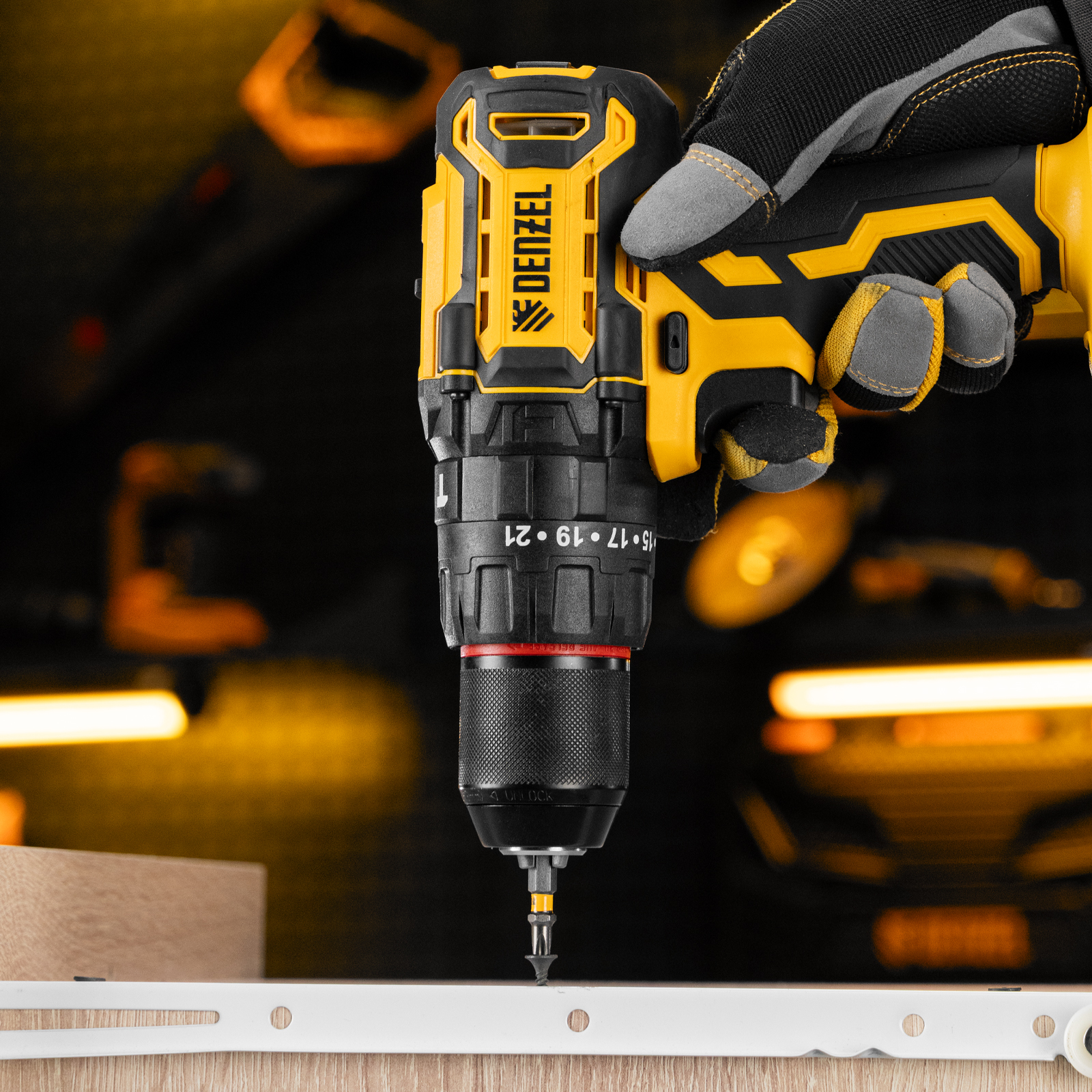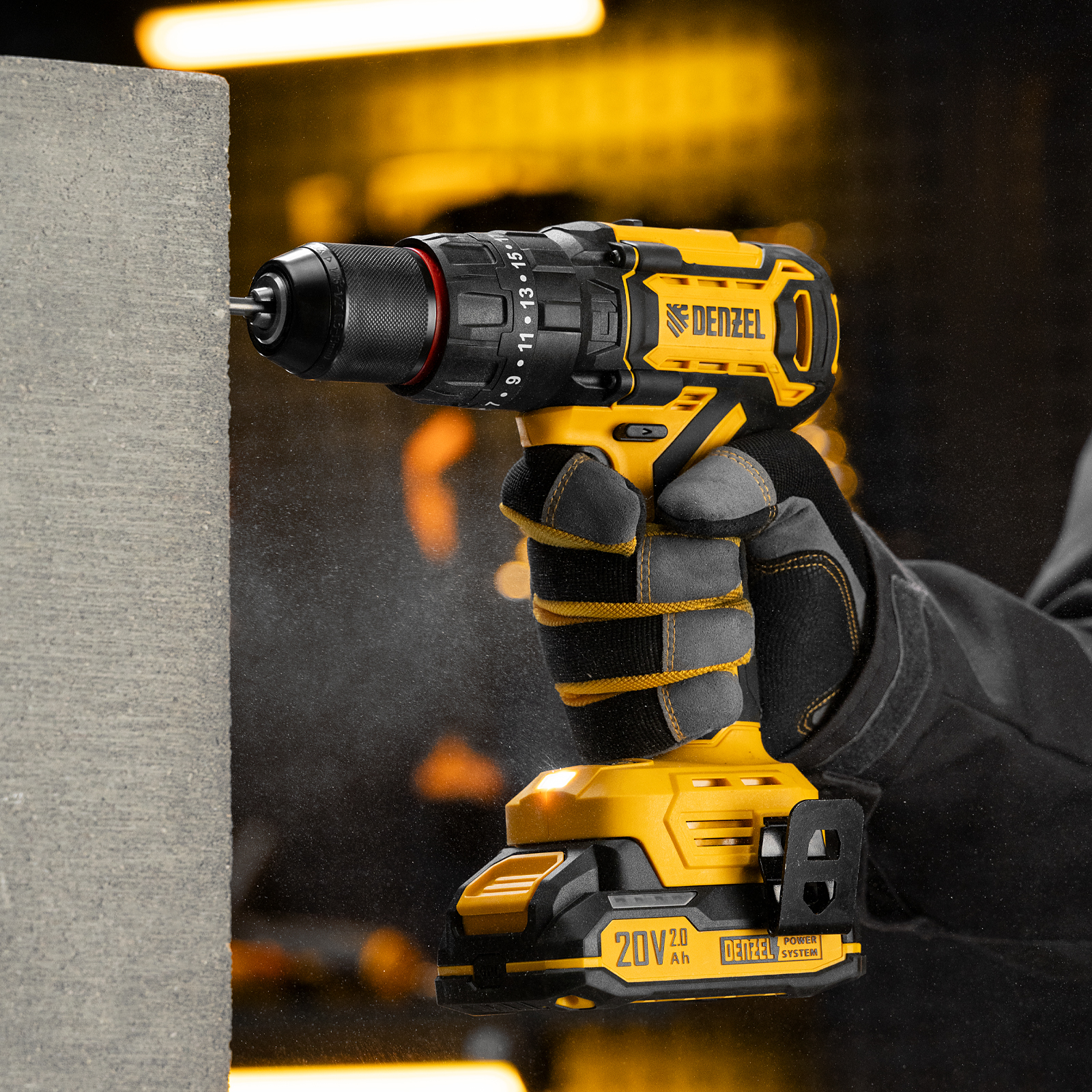 - Универсальность — аккумулятор Li-Ion емкостью 2 А·ч совместим со всеми инструментами единой платформы Denzel Power System 20V.