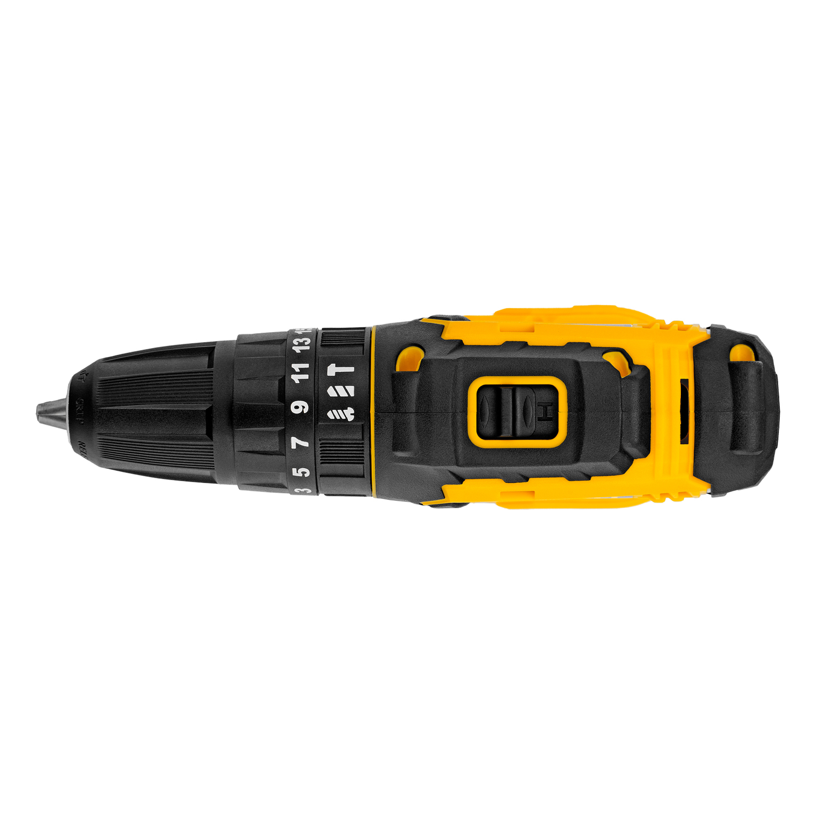 - Универсальность — дрель-шуруповерт совместима с любым Li-Ion аккумулятором и зарядным устройством единой платформы Denzel Battery System 18V.