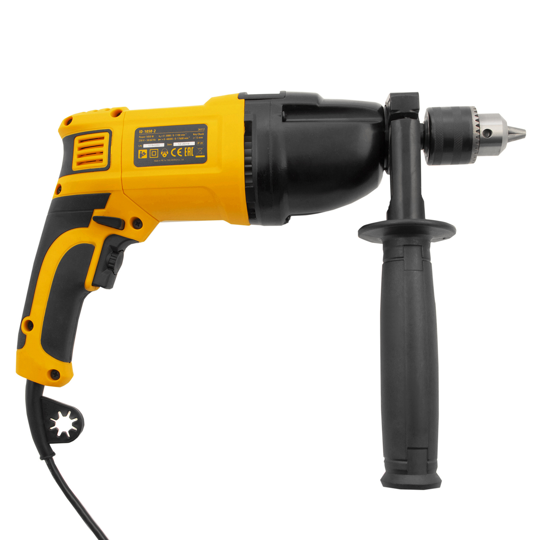 Ударная дрель Denzel ID-1050-2 26312 мощностью 1050 Вт, поддерживает 2 скорости вращения оснастки 0-3000/0-1100 об/мин и частоту ударов 0-48000/0-17600 уд/мин. Используется для ручного или ударного сверления металла, древесины, легкого бетона, кирпича, плитки или пластика. Сверлит отверстия диаметром до 25 мм в древесине, до 13 мм в бетоне и до 13 мм в металле. Эффективное сверление твердых материалов обеспечивает массивный промщит ударного механизма. Дрель работает со сверлами с диаметром хвостовика 1,5-13 мм, что позволяет эффективно решать различные задачи.