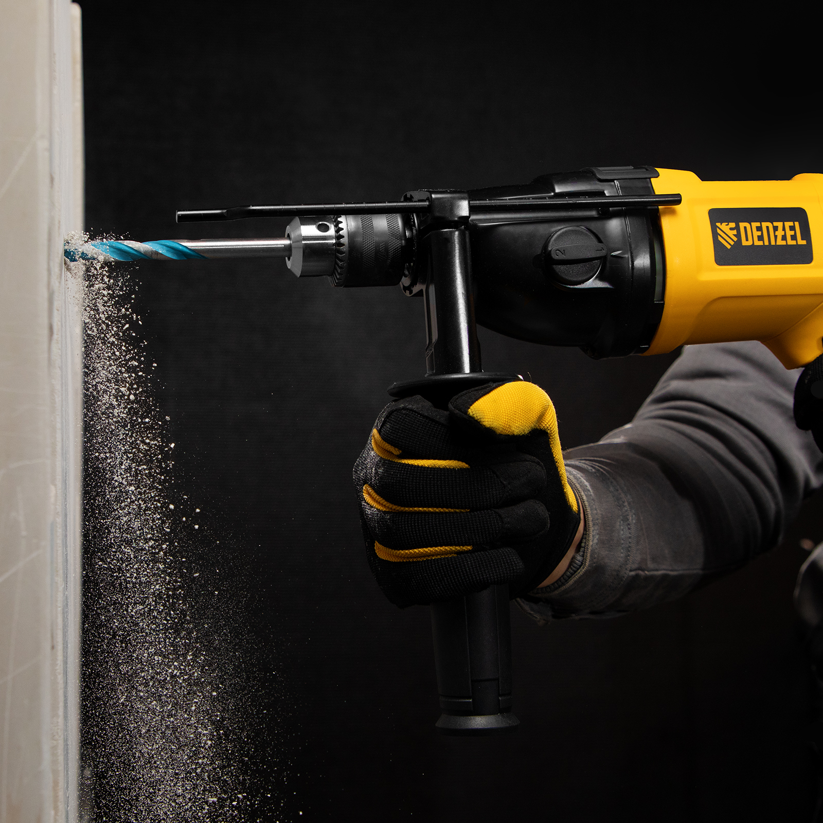 - Комфортная работа — основная и боковая рукоятки не выскальзывают из рук.