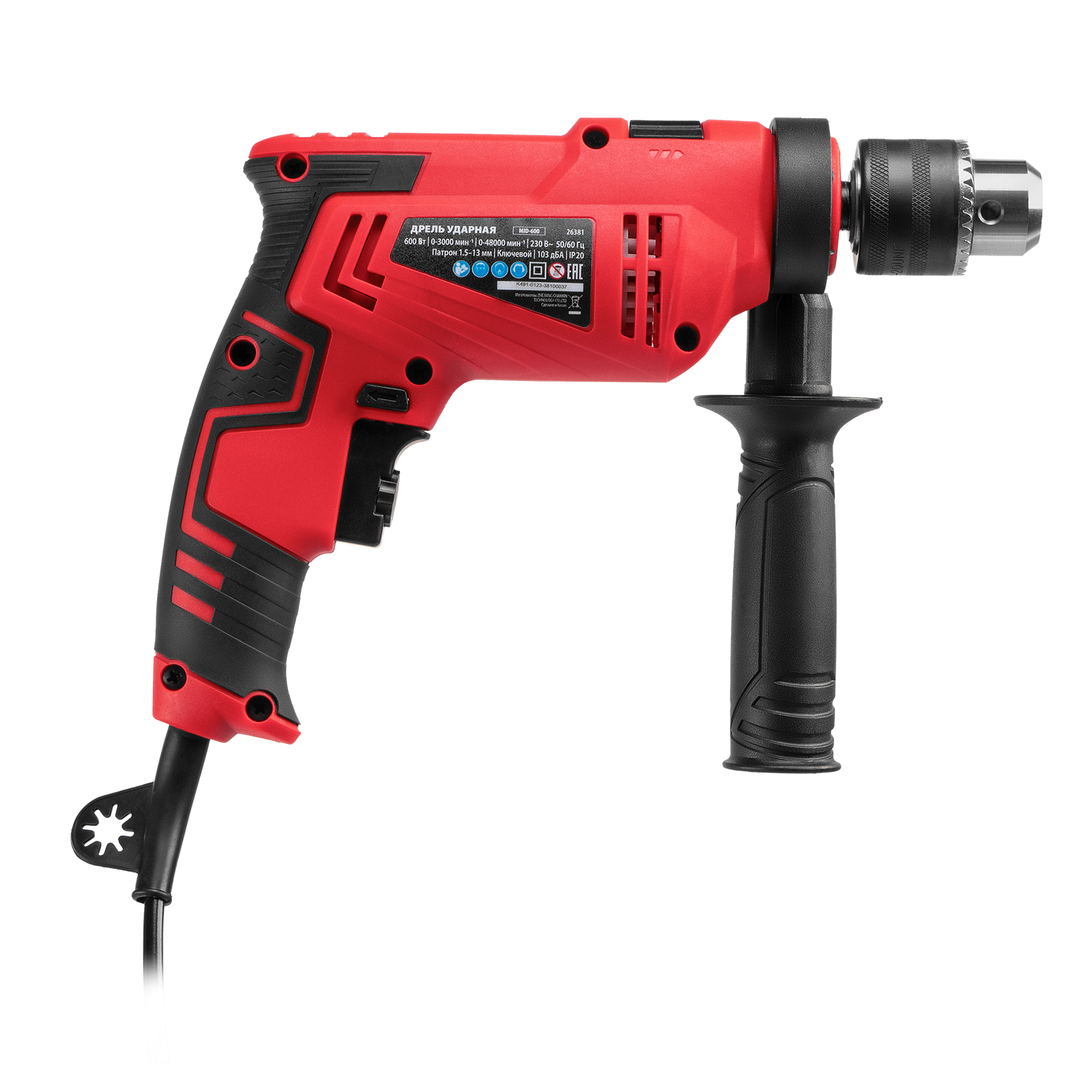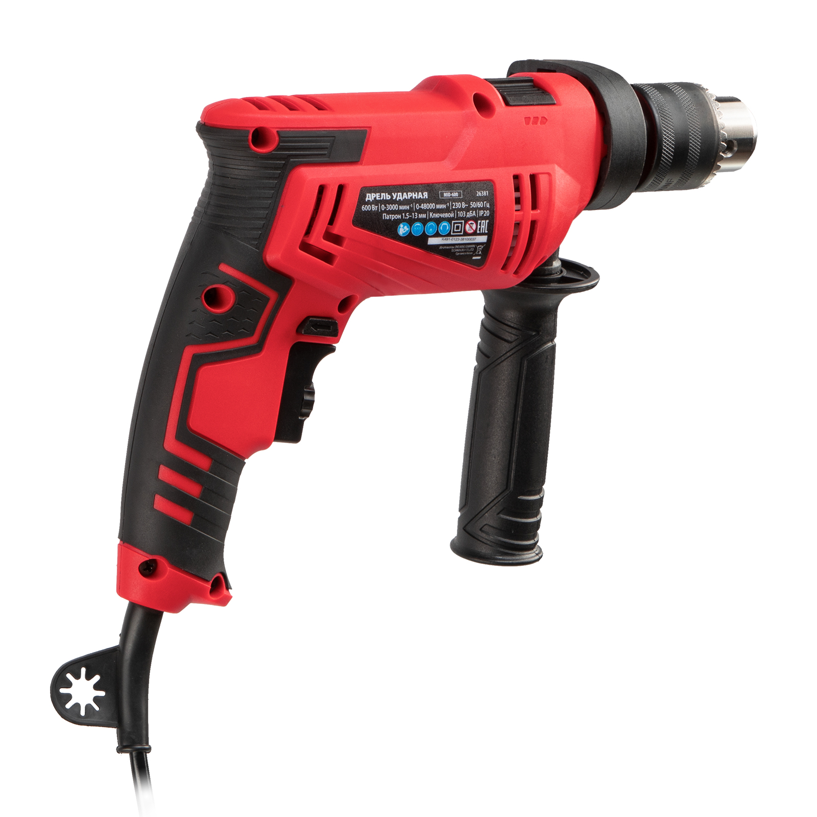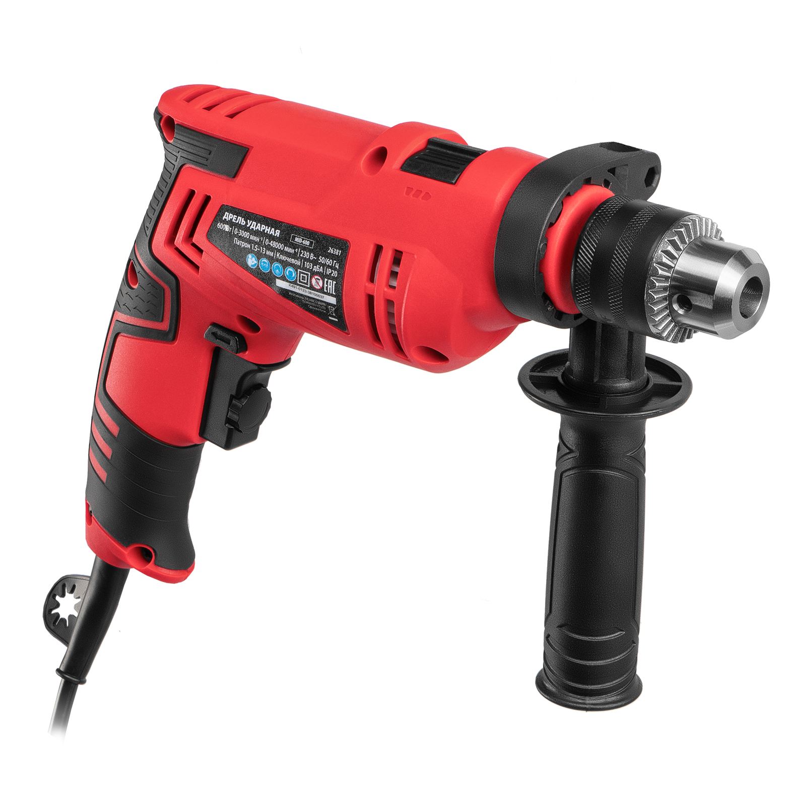 Дрель ударная MTX MID-600 26381 мощностью 600 Вт предназначена для сверления и сверления с ударом отверстий в древесине (до 25 мм), металле (до 10 мм), бетоне (до 13 мм). Ключевой патрон совместим со сверлами диаметром от 1,5 до 13 мм. Частота вращения плавно меняется в зависимости от степени нажатия на кнопку пуска, что облегчает работу с материалами разной плотности.
