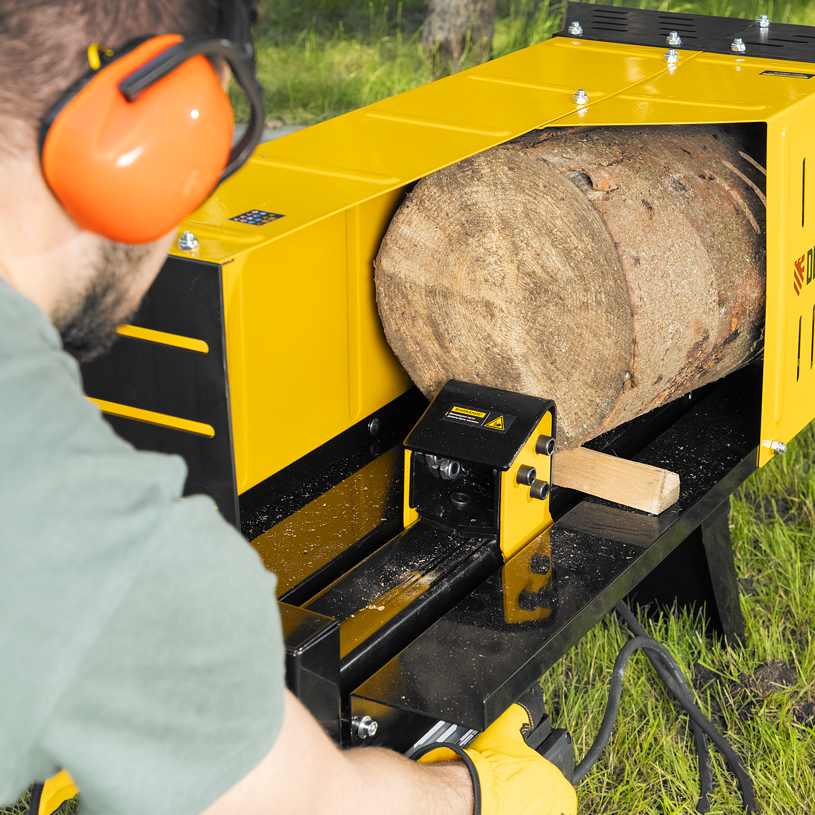 - Безопасность — защитный кожух не допускает случайного контакта с распорным клином и предотвращает попадание на пользователя щепок.