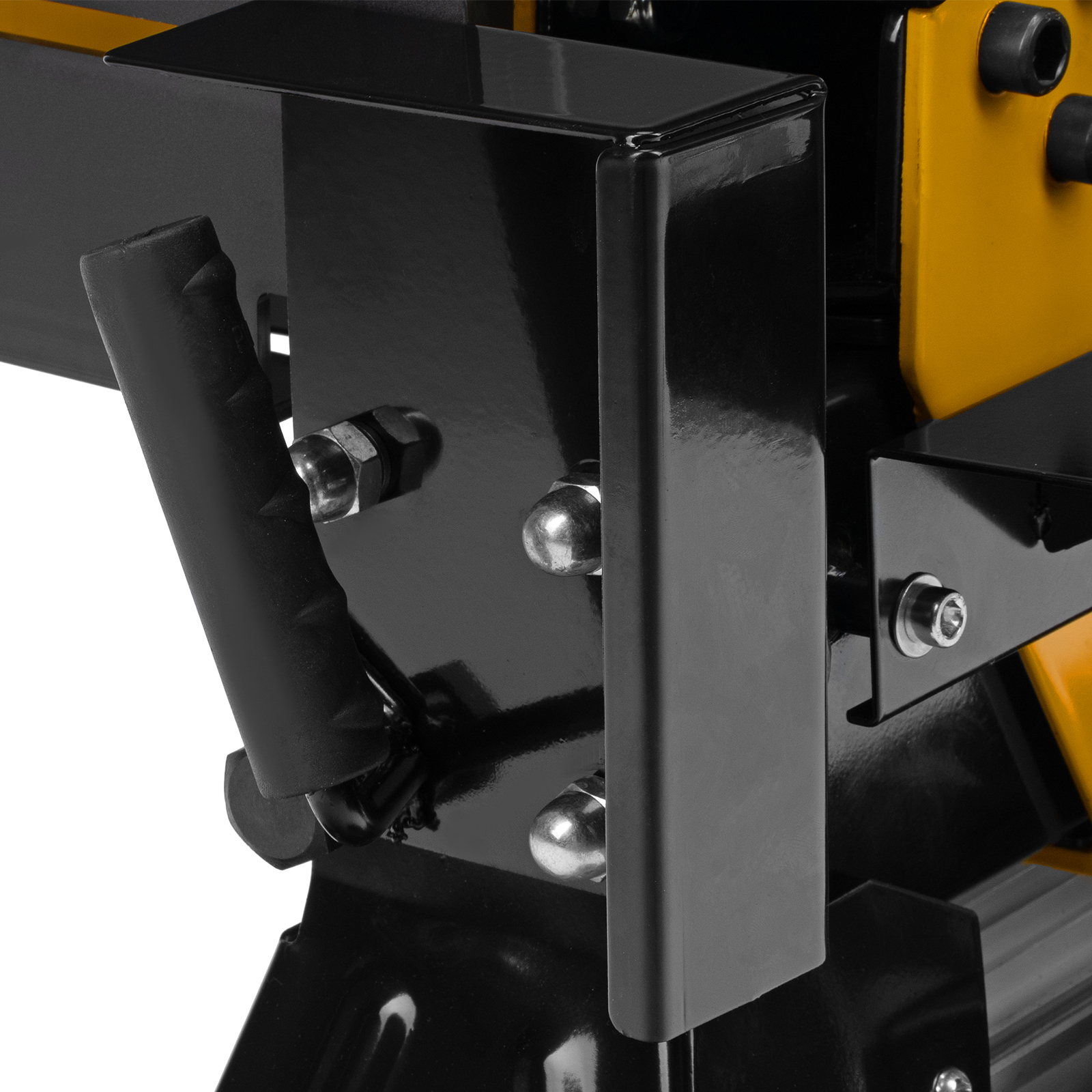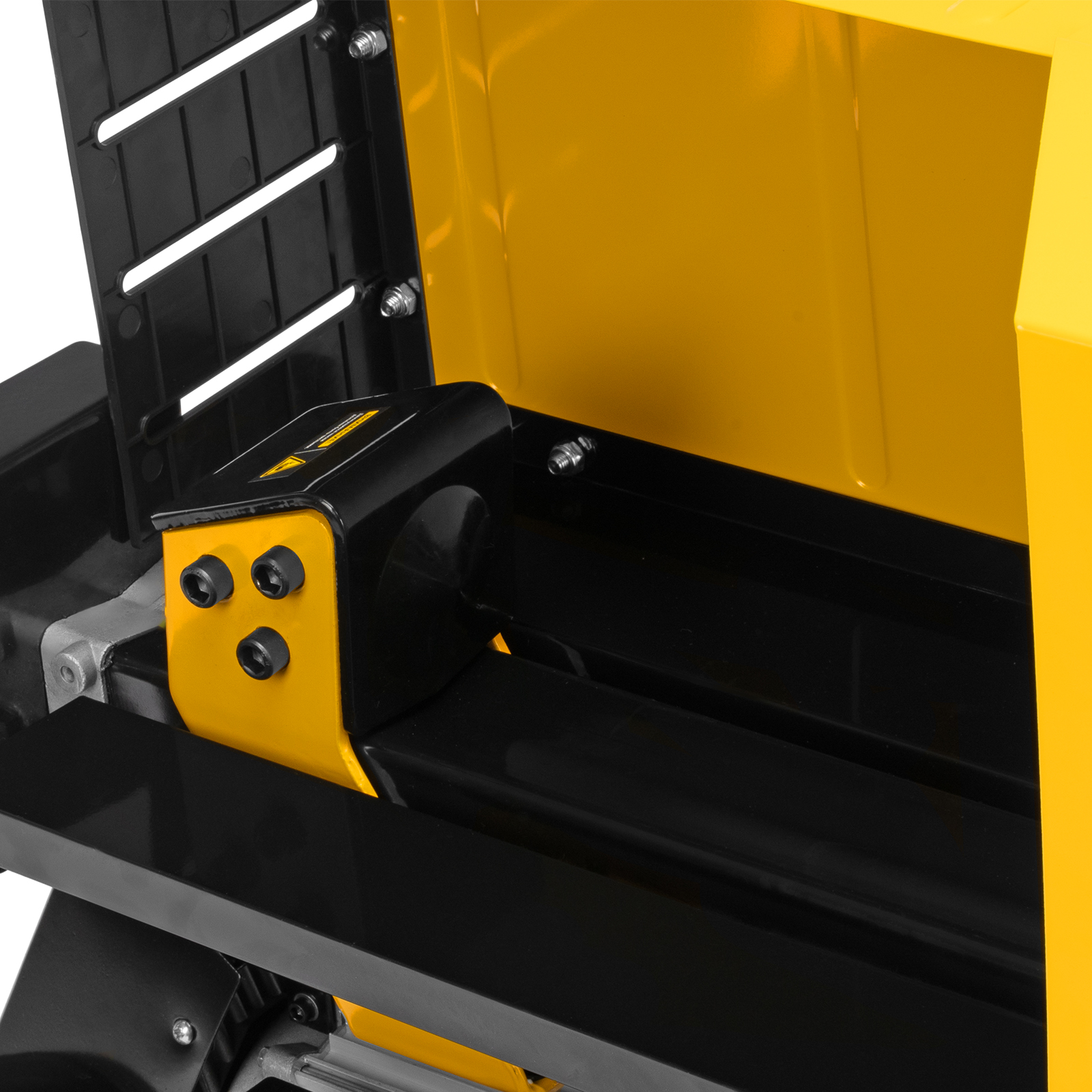 - Двухрычажная система блокировки — для раскалывания дров нужно удерживать рычаг гидравлики и кнопку двумя руками, иначе устройство остановится — такое решение делает рабочий процесс нетравмоопасным.