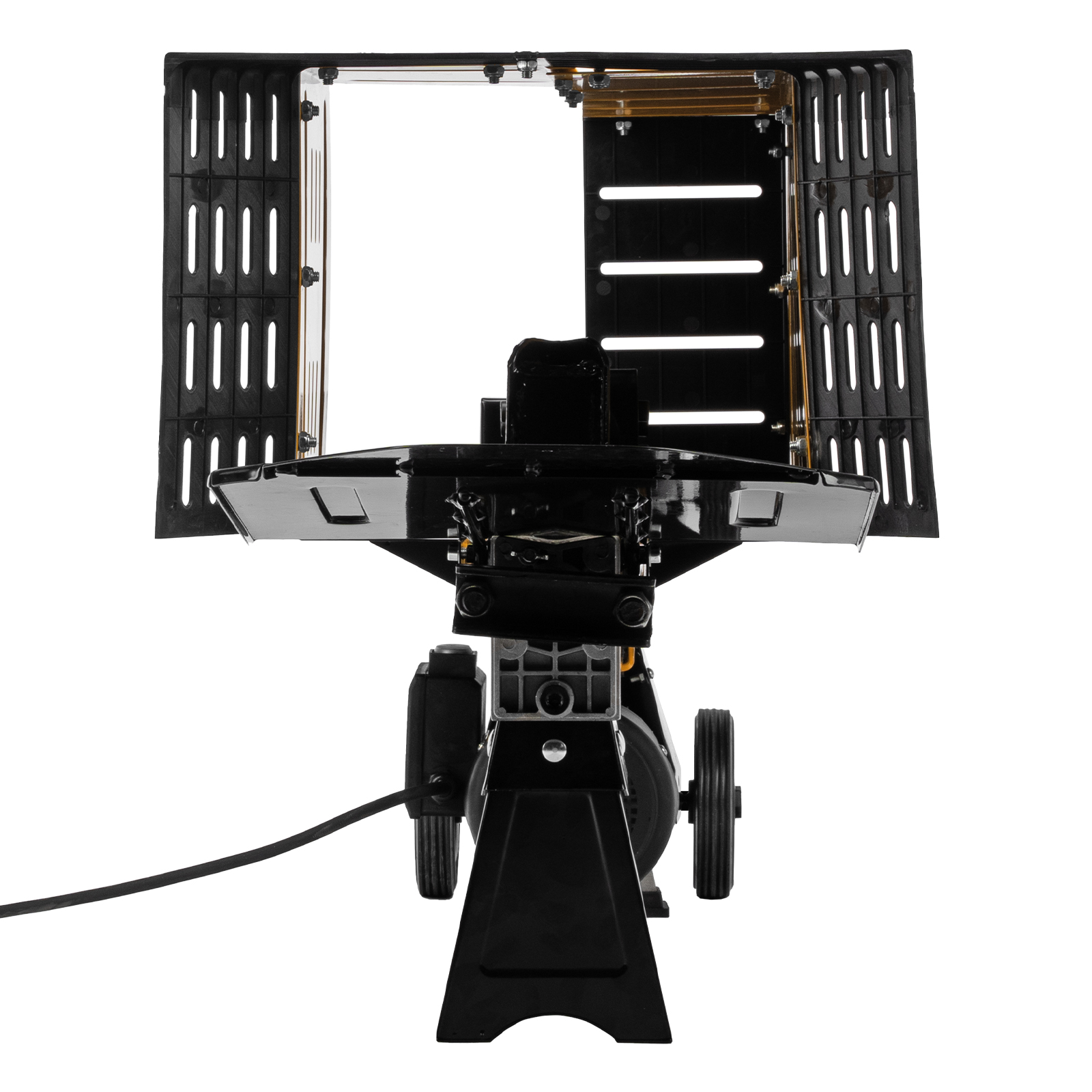 - Мобильность — для удобного перемещения дровокола предусмотрены прочные колеса.