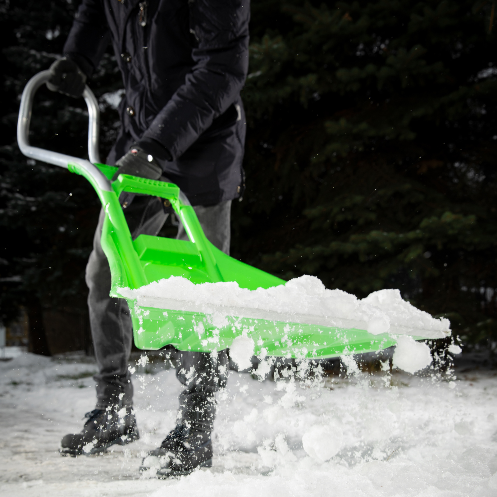 Пластиковый движок для уборки снега Сибртех 61496 с алюминиевой рукояткой, 670 х 530 х 1410 мм, предназначен для расчистки территории после снегопада. Глубокий ковш обеспечивает высокую эффективность уборки. Инструмент можно использовать для перебрасывания снега, поскольку он оснащен дополнительным захватом и локтевым упором. Движок подойдет для использования на придомовой территории, у гаража или на дачном участке.