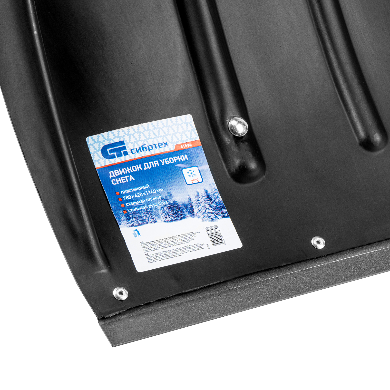 Пластиковый движок для уборки снега Сибртех 61594 размером 780 х 420 х 1140 мм, со стальной рукояткой, поможет очистить от снежных заносов придомовую территорию, пространство перед гаражом или дачный участок. Глубокий широкий ковш захватывает большое количество снега, сокращая продолжительность уборки. Удобная изогнутая рукоятка позволяет равномерно распределять усилия, снижая нагрузку на позвоночник.