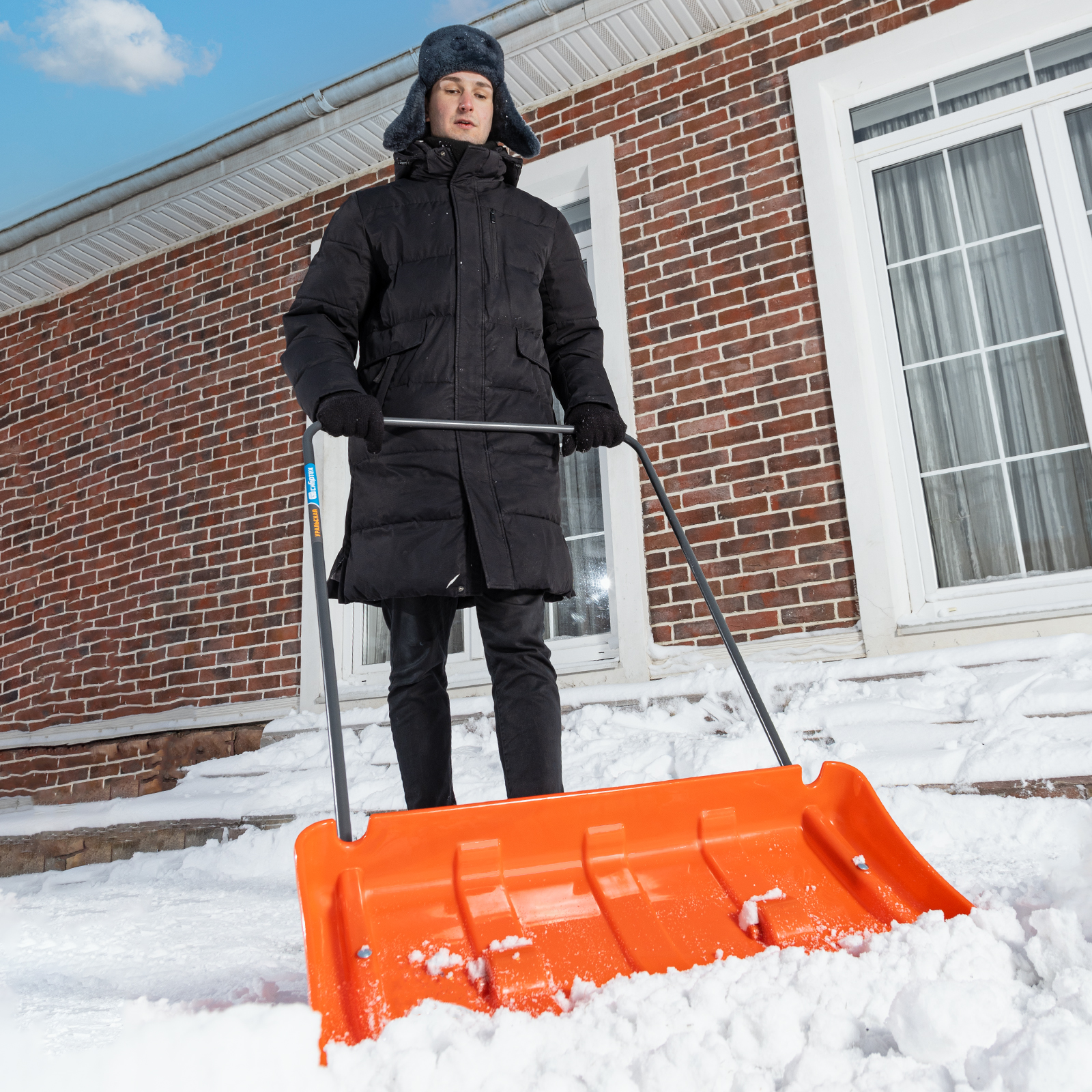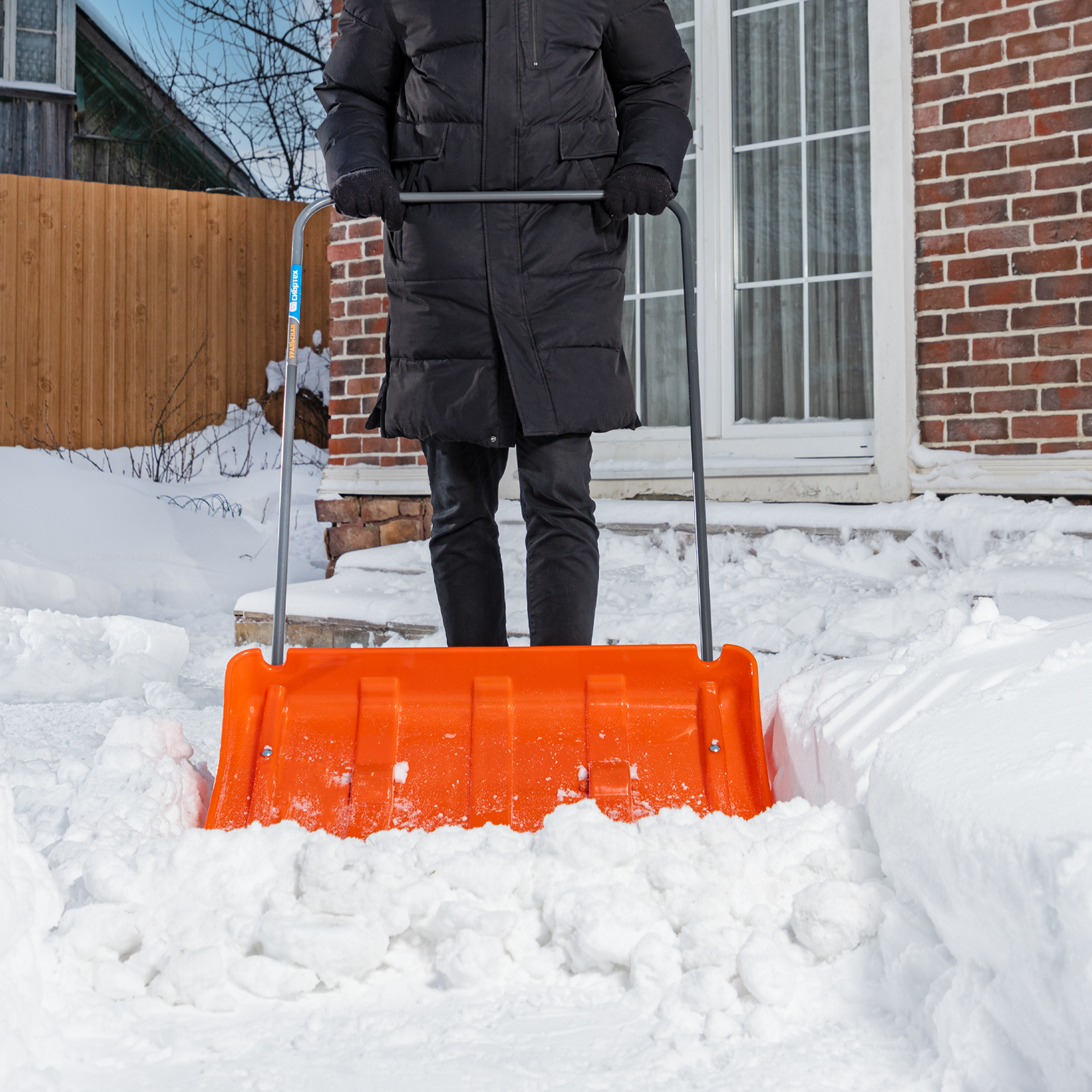 Комфортная работа — движок общей длиной 1280 мм удобен для пользователей среднего роста, на нижней поверхности ковша имеются колеса, упрощающие перемещение инструмента.