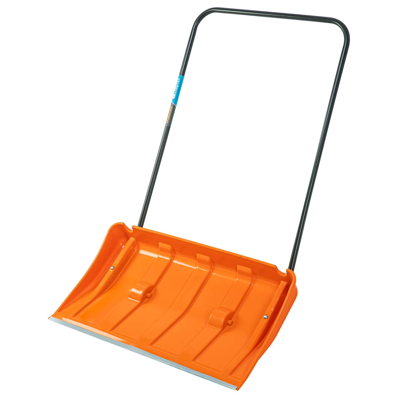 Пластиковый движок Сибртех 61669 усиленной конструкции, размером 795 х 435 х 1280 мм, со стальной рукояткой, применяется для уборки снега на дачном участке, придомовой территории, для расчистки пространства около гаража, подъезда и т. д. Инструмент значительно повышает скорость работы, позволяя быстро убирать снег с больших поверхностей.
