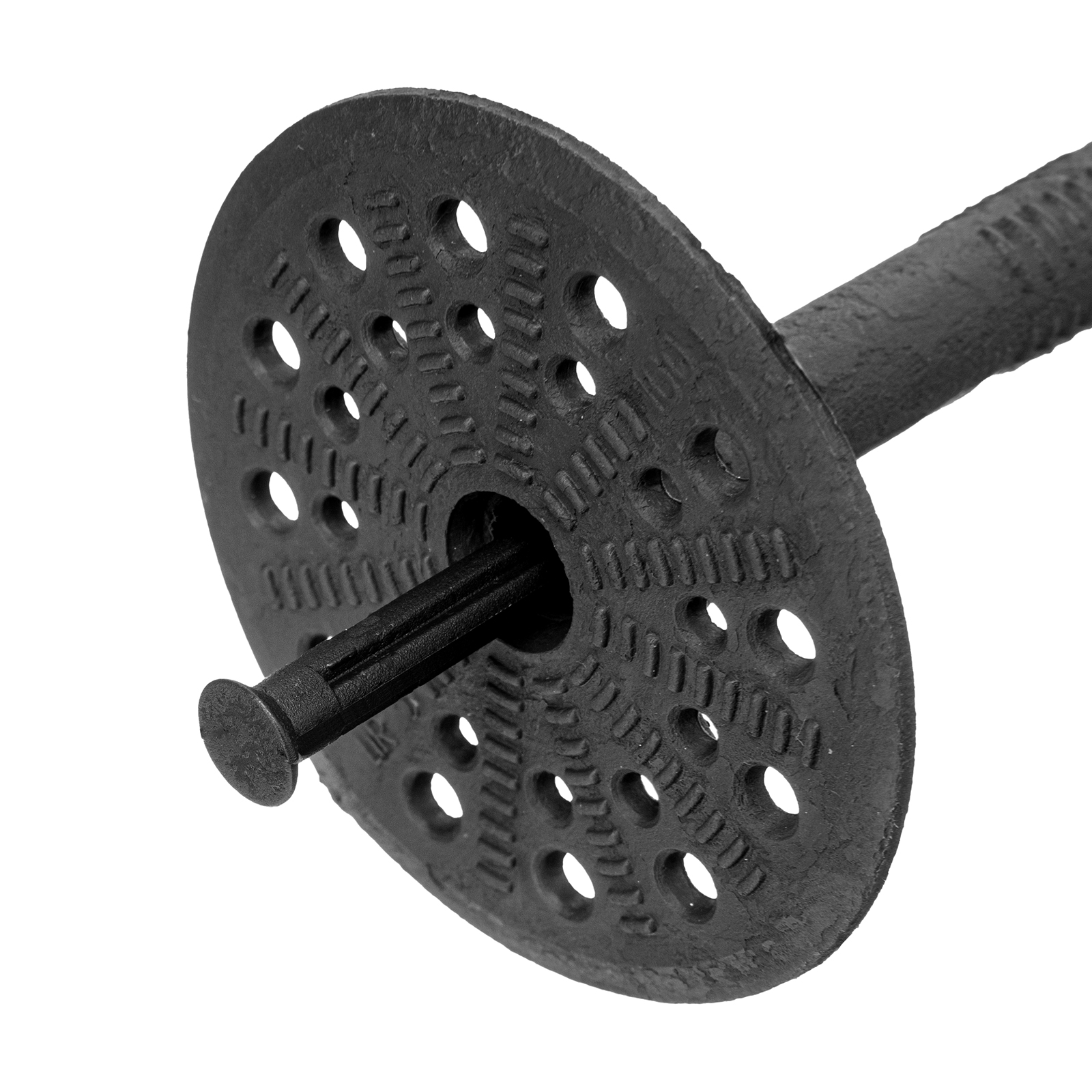 - Надежная фиксация теплоизоляционной плиты — дюбель имеет широкую шляпку диаметром 60 мм.