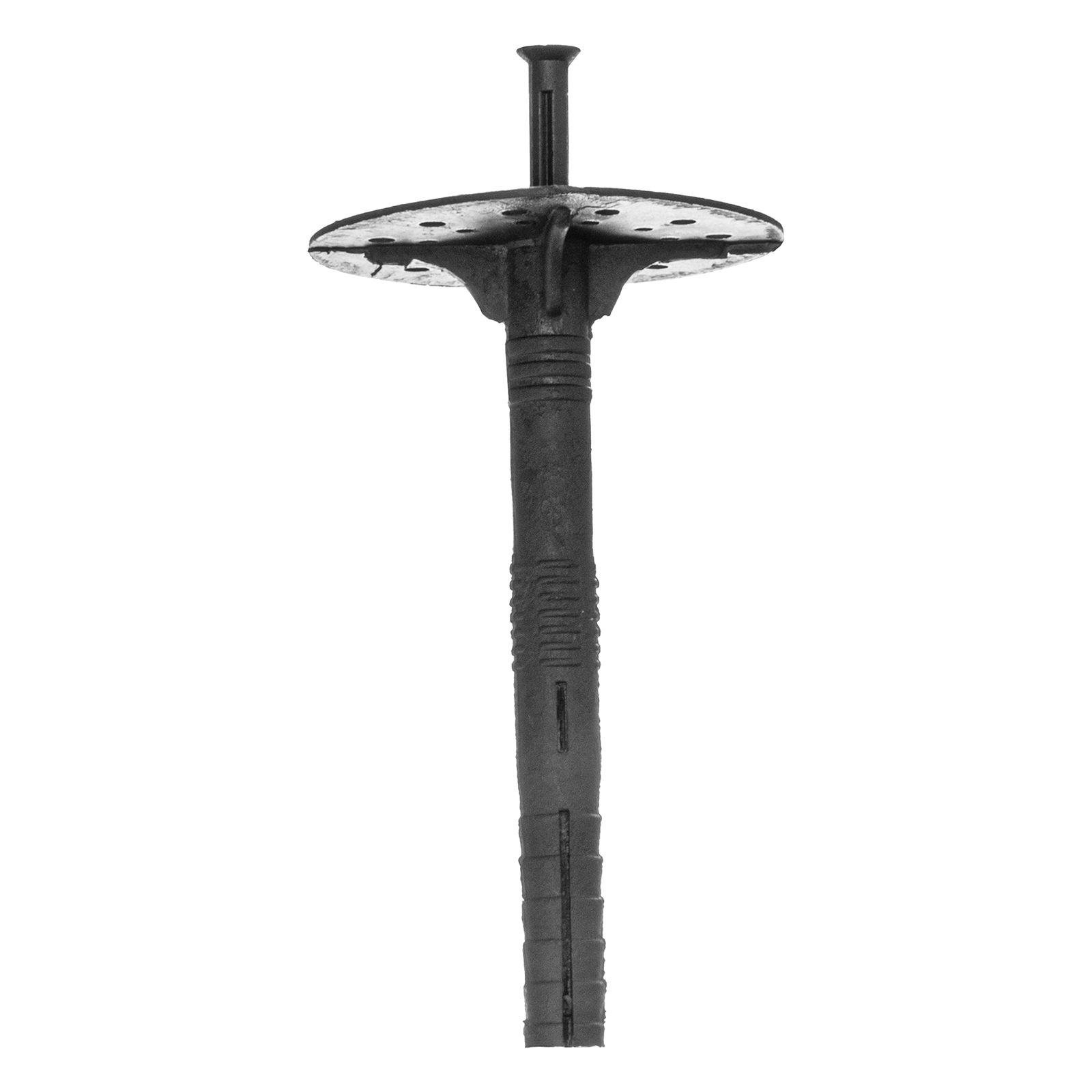 - Надежная фиксация теплоизоляционной плиты — дюбель имеет широкую шляпку диаметром 60 мм.