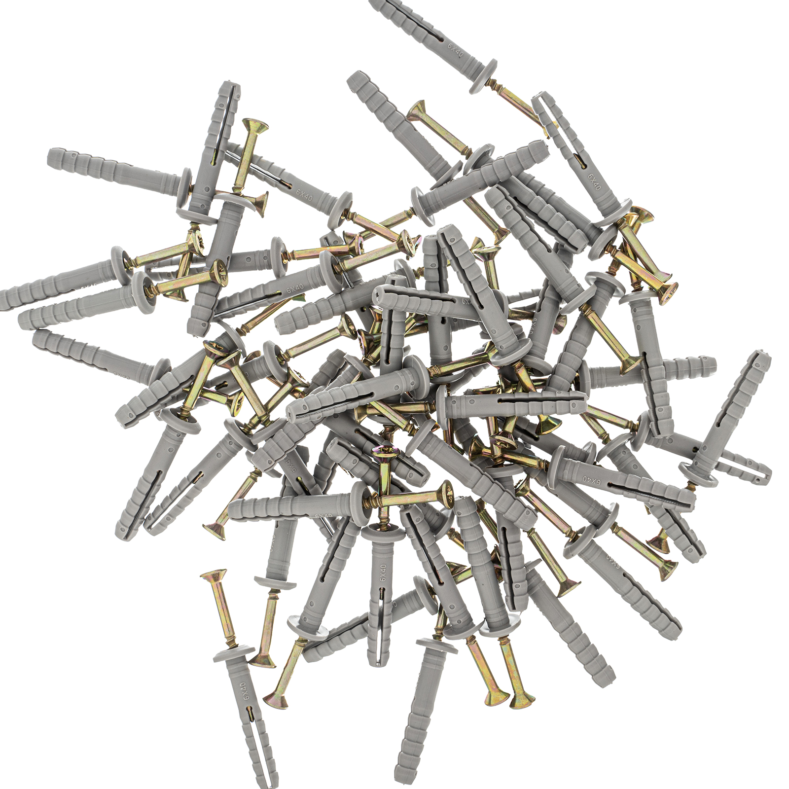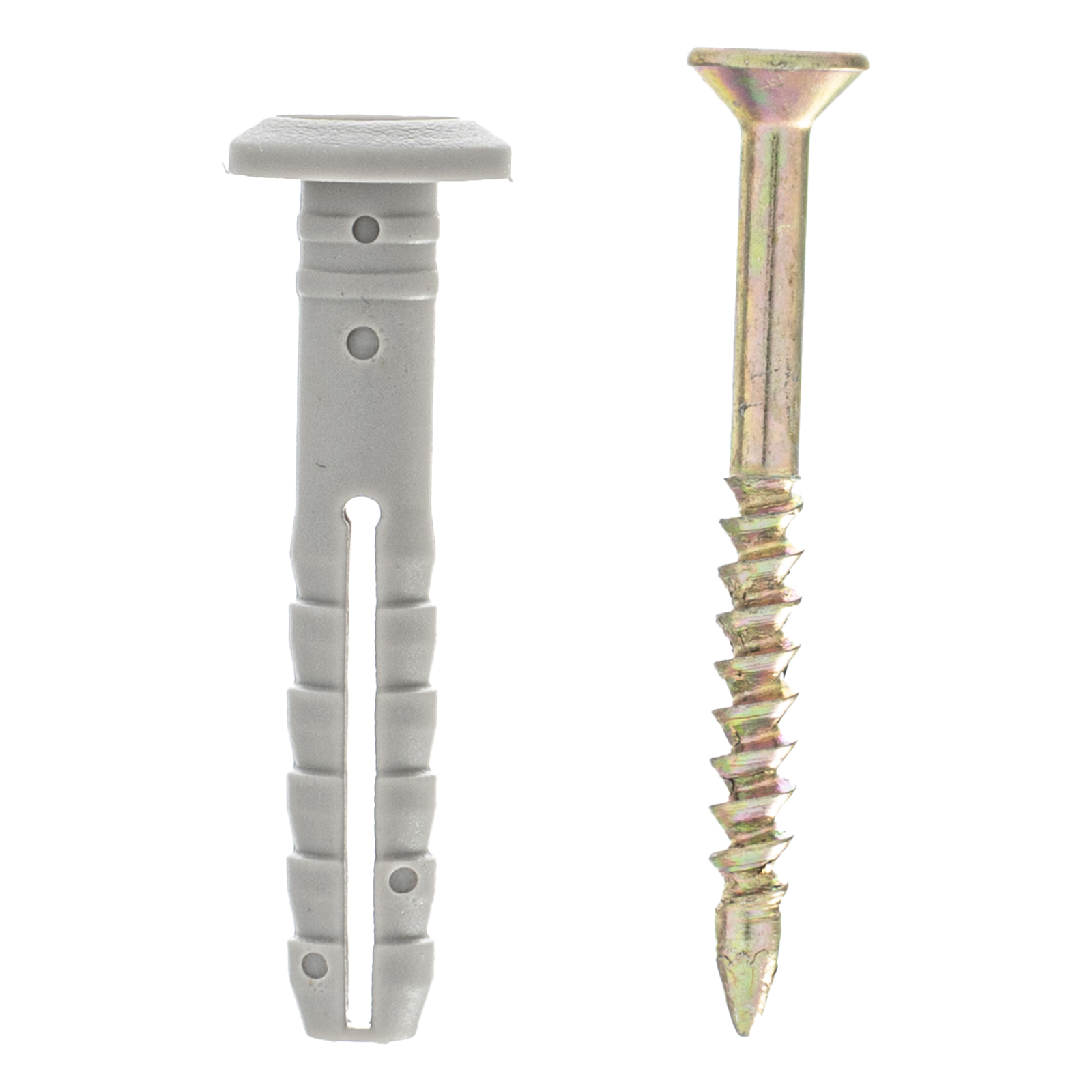 Простая установка — ребра на дюбеле прочно фиксируют его в толще материала, входящие в комплект саморезы со шляпкой типоразмера PZ2 можно монтировать и демонтировать при помощи обычной отвертки.