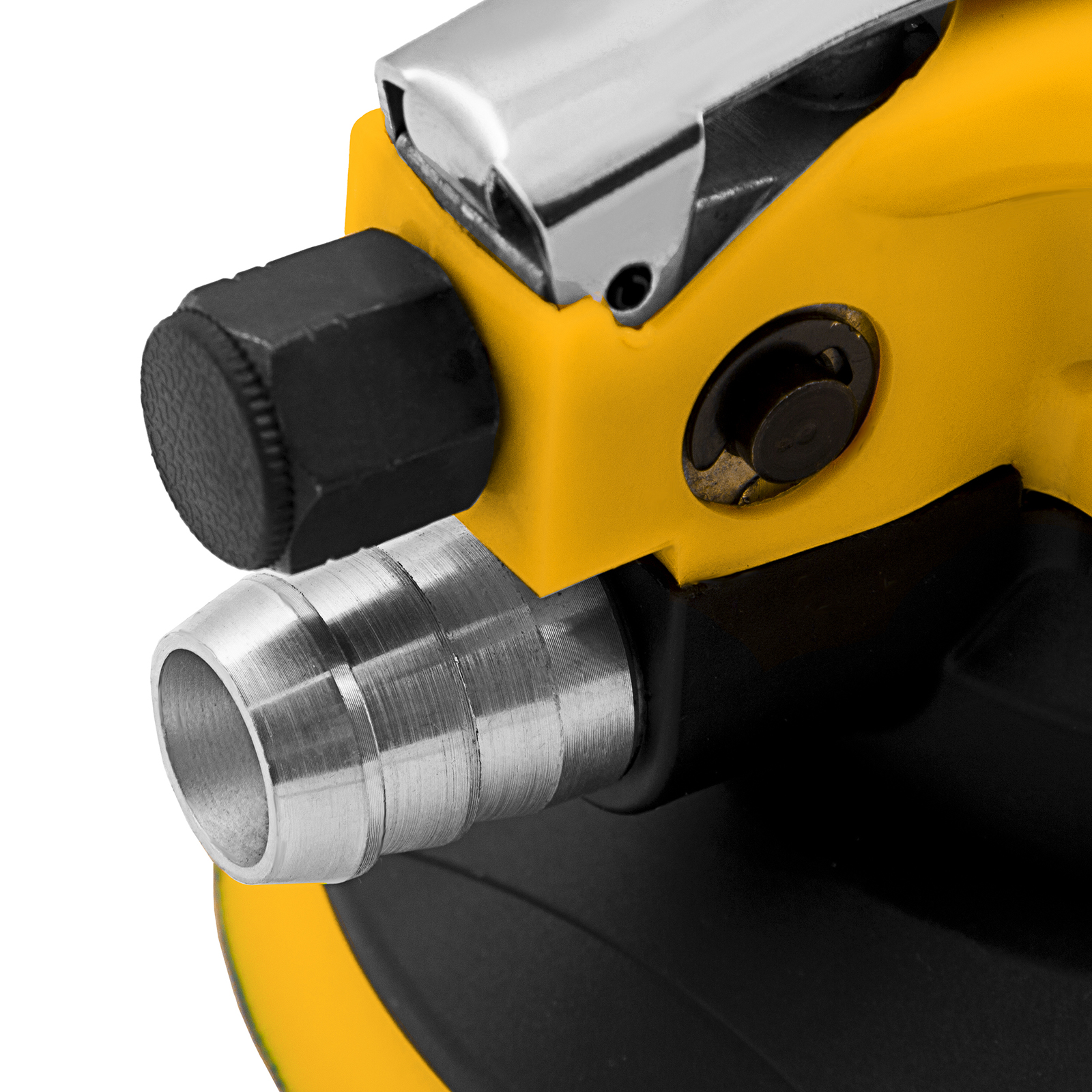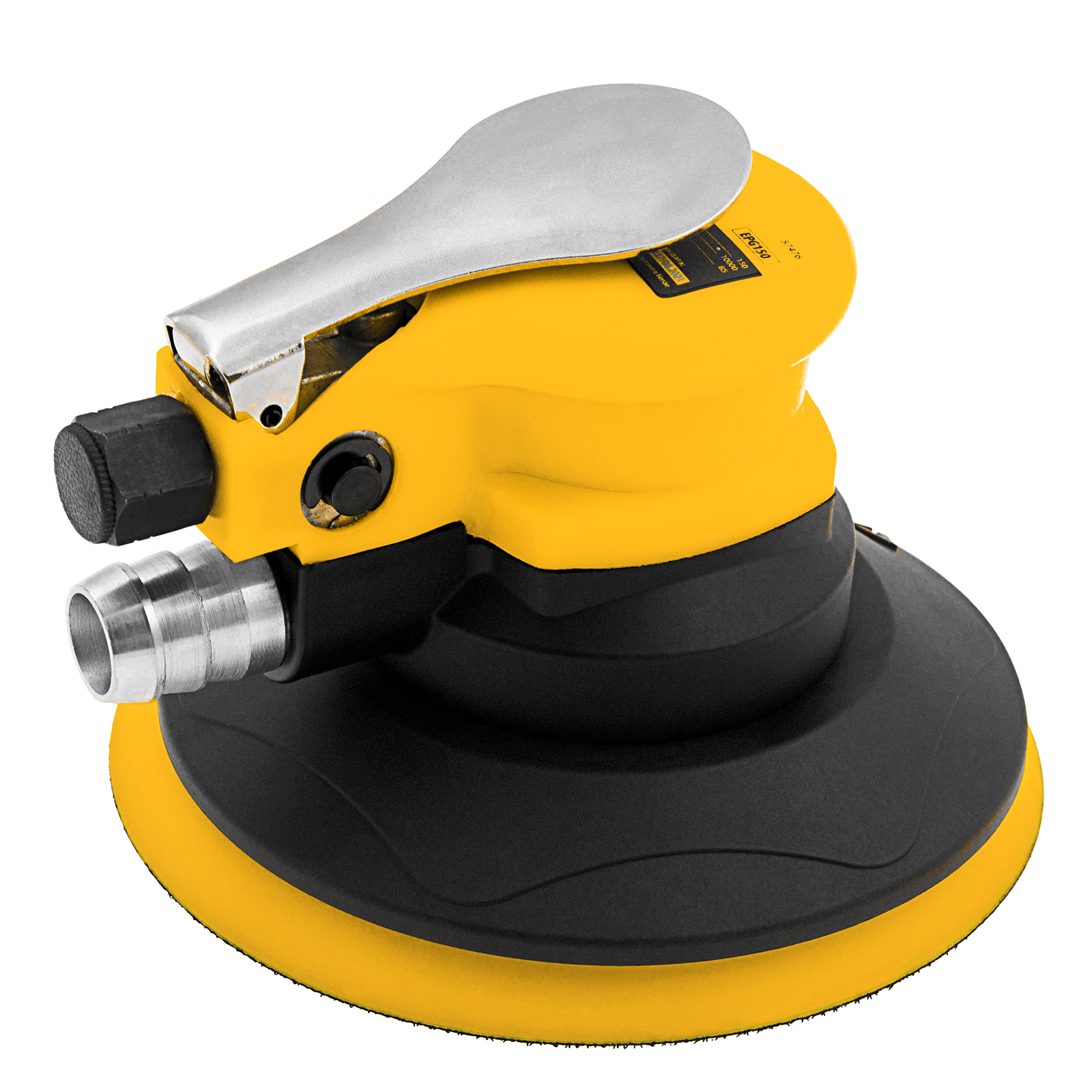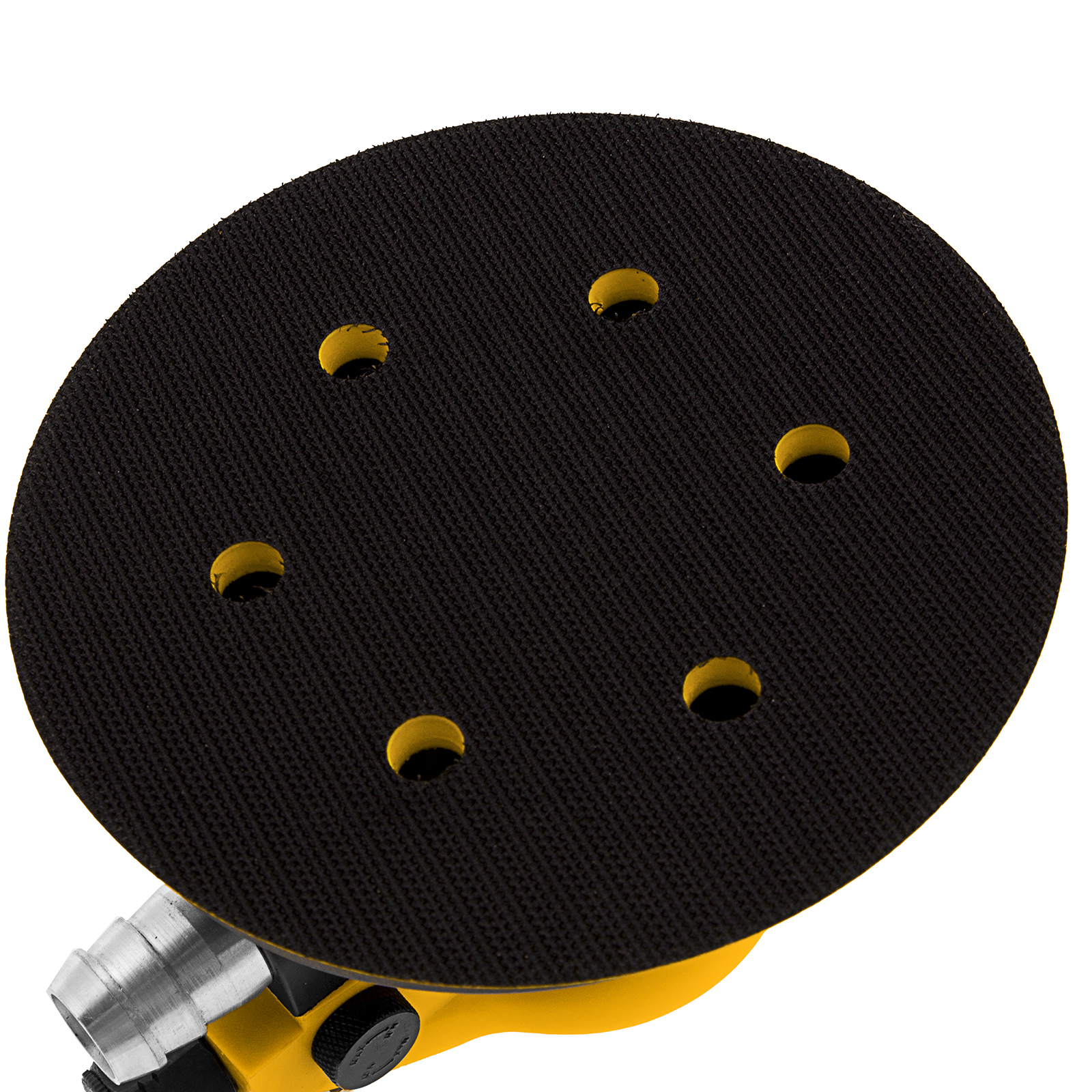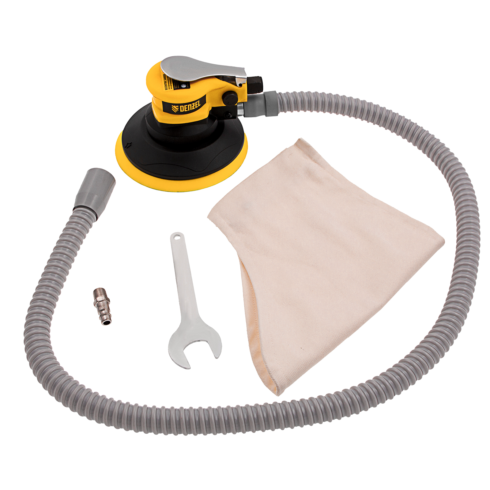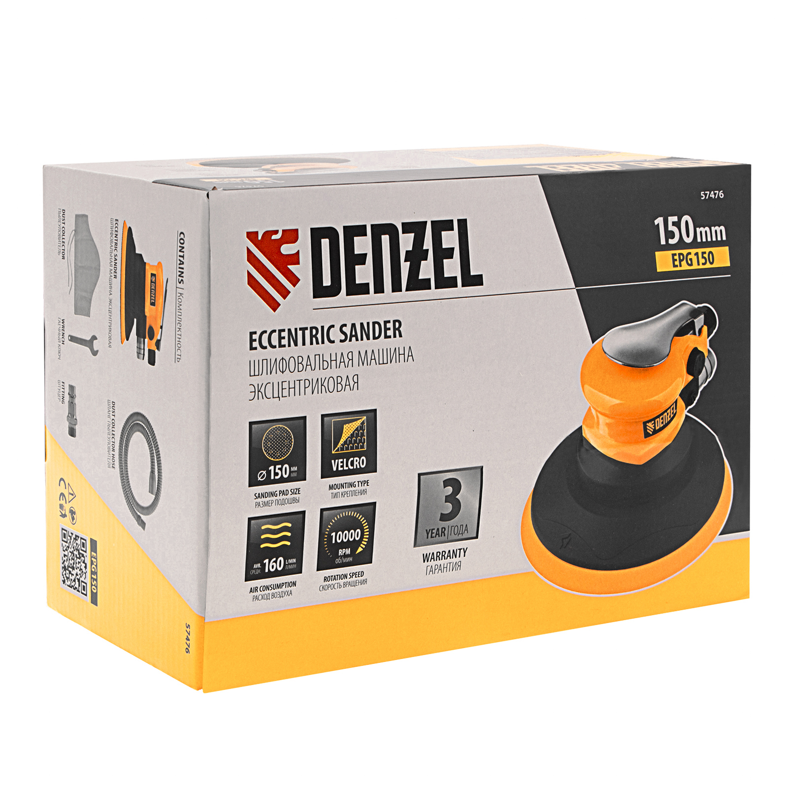 Пневматическая эксцентриковая шлифовальная машина Denzel EPG150 57476 с амплитудой 5 мм развивает скорость вращения 10000 об/мин при среднем расходе воздуха 160 л/мин. Этого достаточно для эффективного шлифования, зачистки и выравнивания любых поверхностей (древесины, металла, пластика и т.д.). С помощью машинки можно без усилий подготовить материал любой твердости к покраске или отделке, выровнять металл перед сваркой. А при использовании более мягкой насадки получится сделать любую поверхность абсолютно гладкой и придать ей дополнительный блеск.,Орбитальная шлифмашина предназначена для работы при давлении 6,3 бар, расход воздуха не превышает 200 л/мин. Во время работы не забывайте использовать специальное масло ISO 46, которое можно добавлять как напрямую в инструмент, так и с помощью блока подготовки воздуха Denzel 57469, включающего в себя лубрикатор для автоматической подачи масла.
