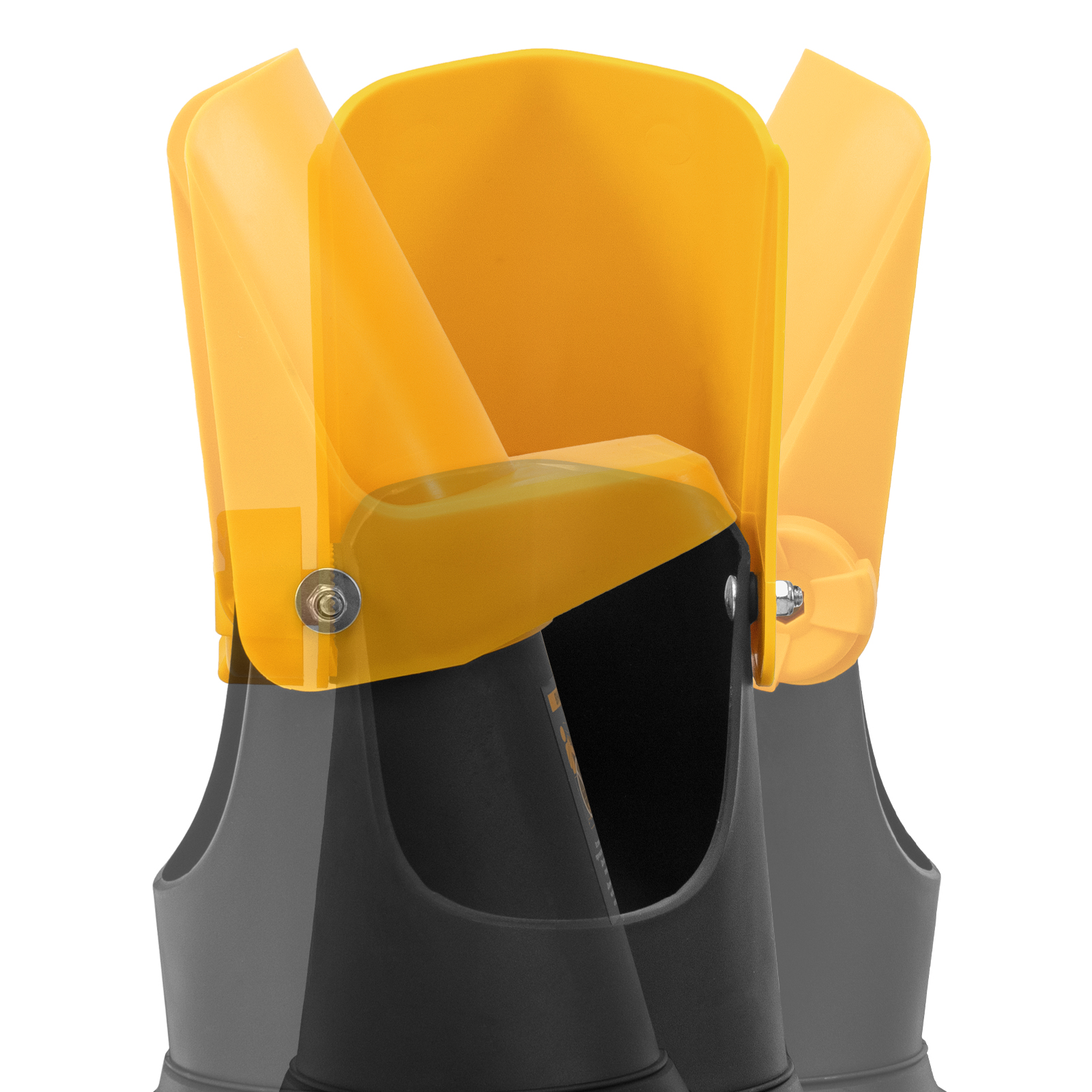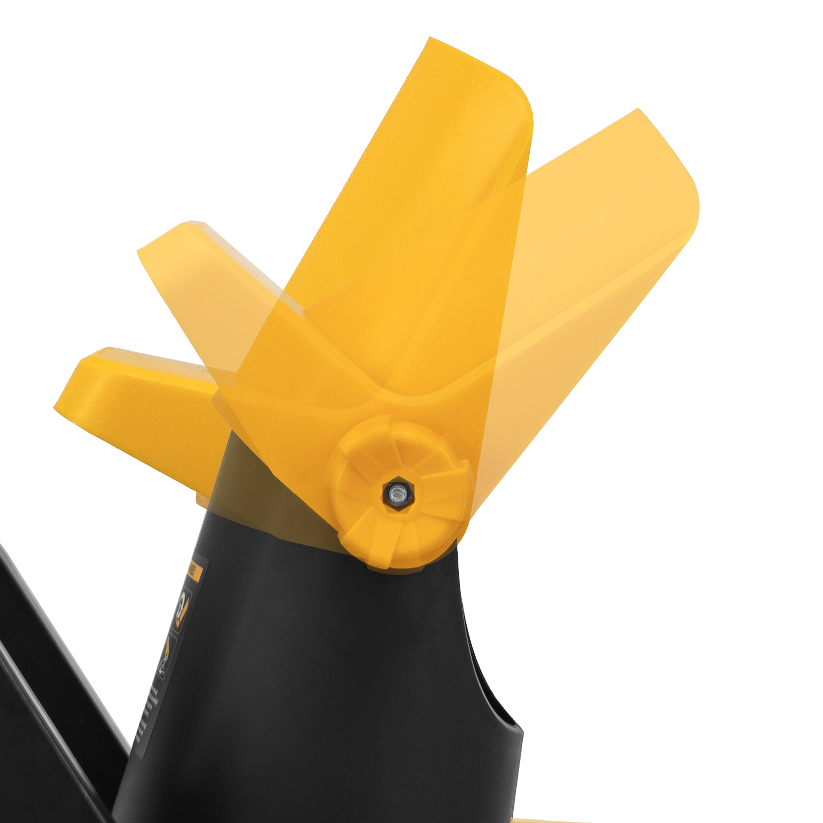 - Настройка дальности выброса до 7 м — угол наклона дефлектора регулируется.