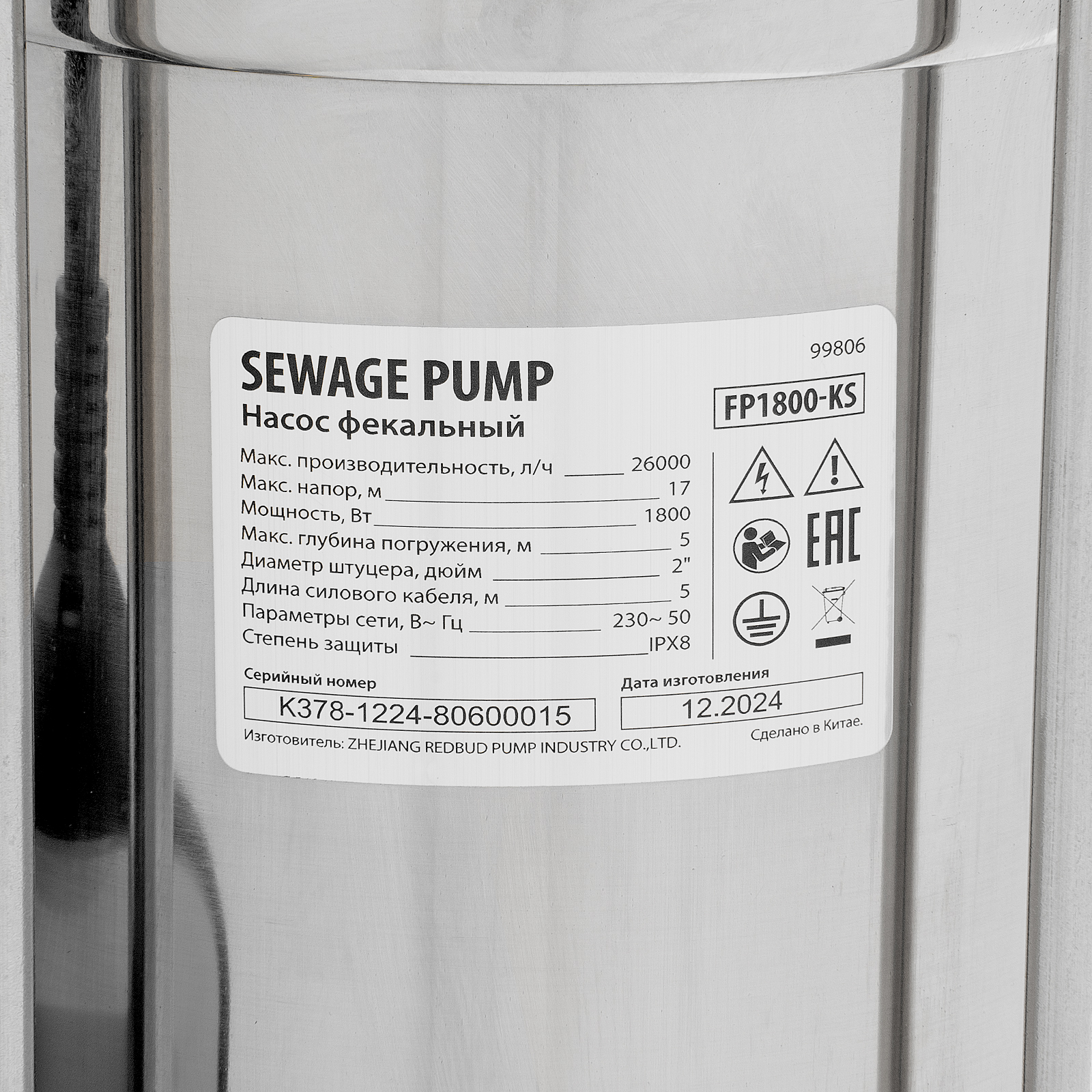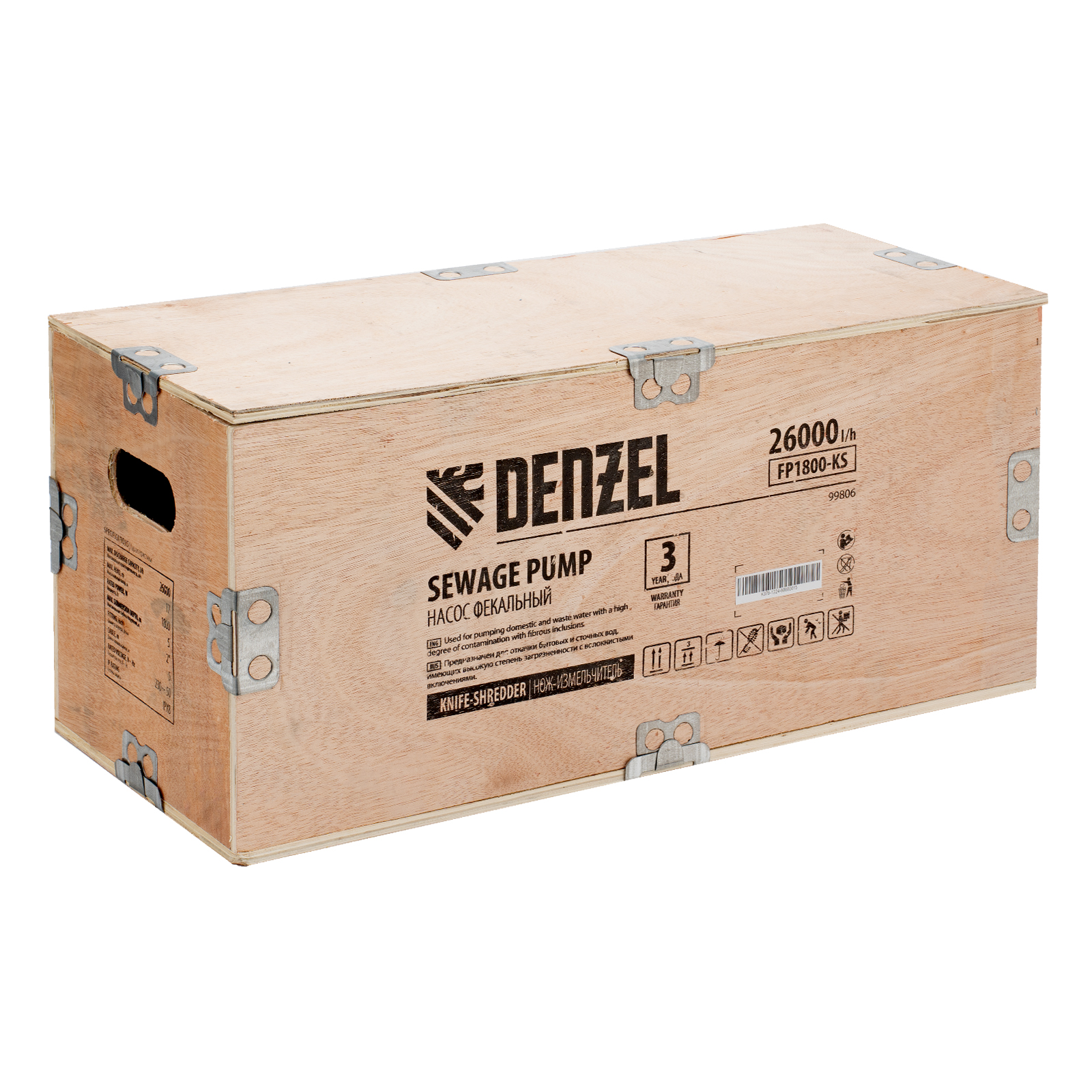 Фекальный насос Denzel FP1800-KS 99806 оснащен мощным двигателем 1800 Вт и ножом-измельчителем, обеспечивает производительность до 26000 л/ч и напор до 17 м. Справляется с откачиванием как грязной, так и чистой воды. Используется для осушения затопленных помещений, различных емкостей, откачивания сточных вод из выгребных ям, водоемов, канав и траншей. Насос способен работать на глубине до 5 м, температура перекачиваемой жидкости не должна превышать 35 °C. Напора до 17 м достаточно для подачи воды в системы орошения с несколькими точками водоразбора.
