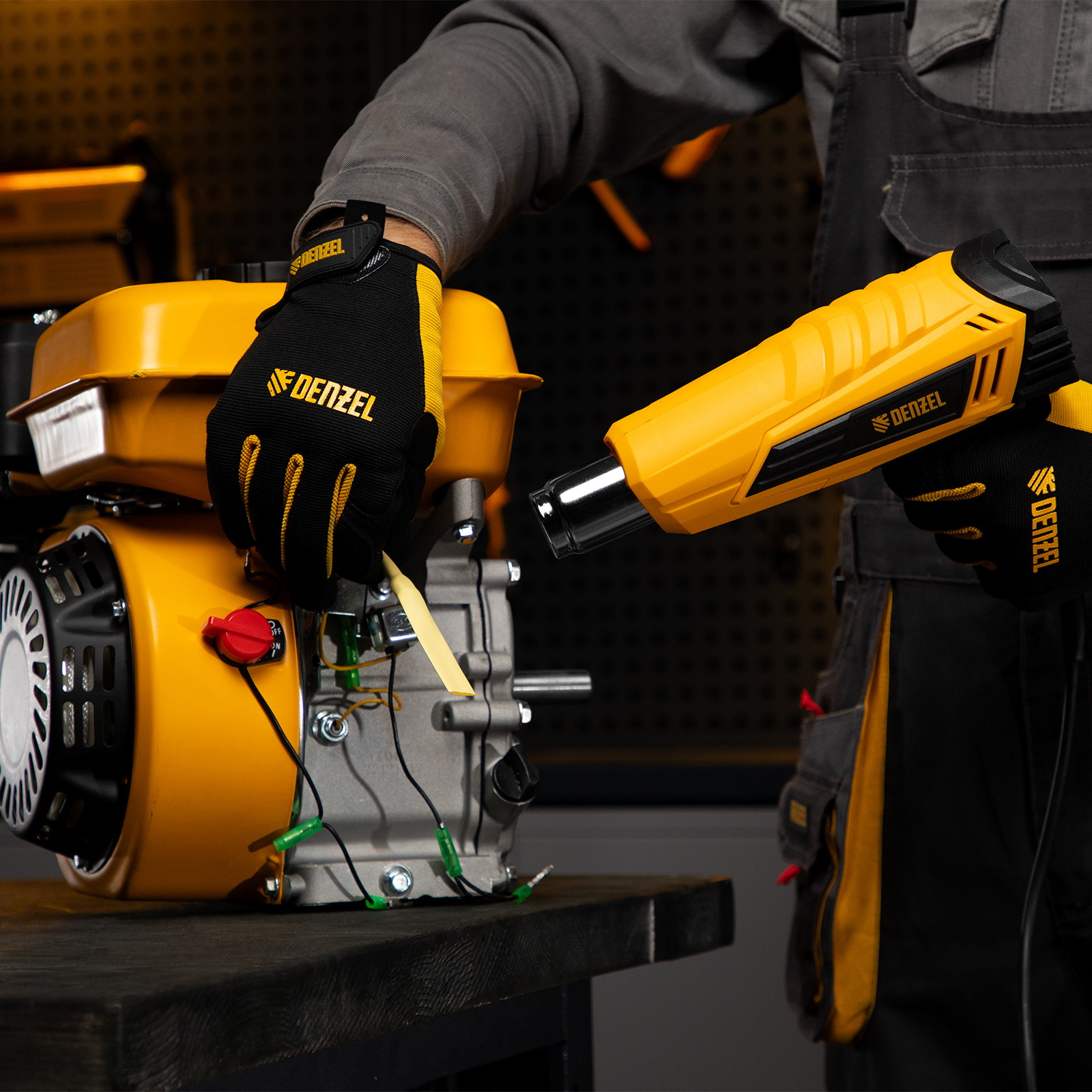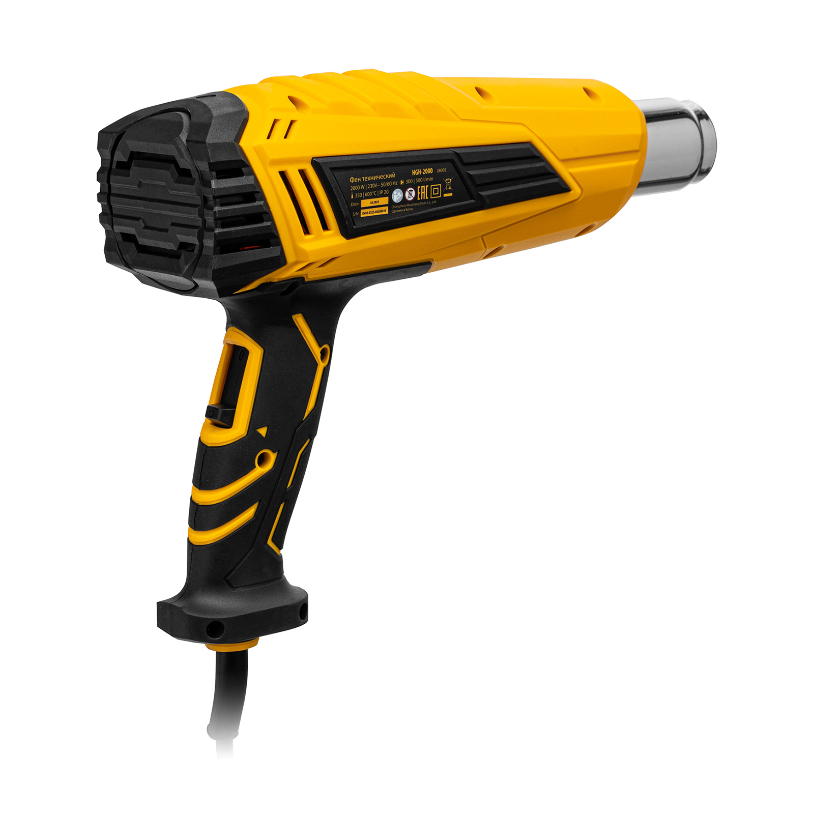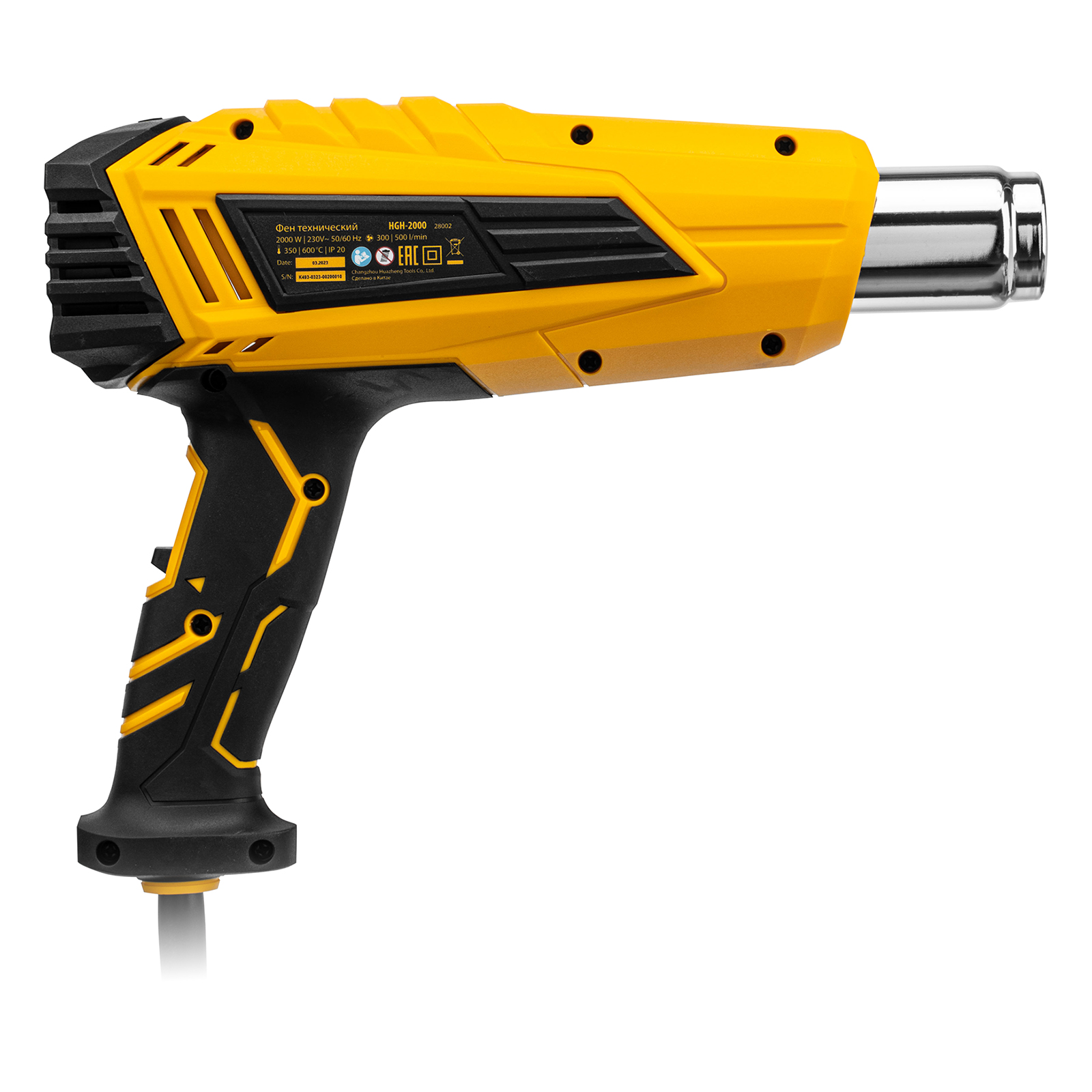 Фен технический Denzel HGH-2000 28002 мощностью 2000 Вт поддерживает 2 режима работы, обеспечивая стабильную производительность на уровне 300 или 500 л/мин. В зависимости от выбранного режима рабочая температура составляет 350 °C или 600 °C. Фен позволяет просушивать и снимать лакокрасочные покрытия, производить сварку пластиковых изделий, паять и размораживать трубы, проводить дезинфекцию поверхностей с помощью потока горячего воздуха, а также решать множество других задач.