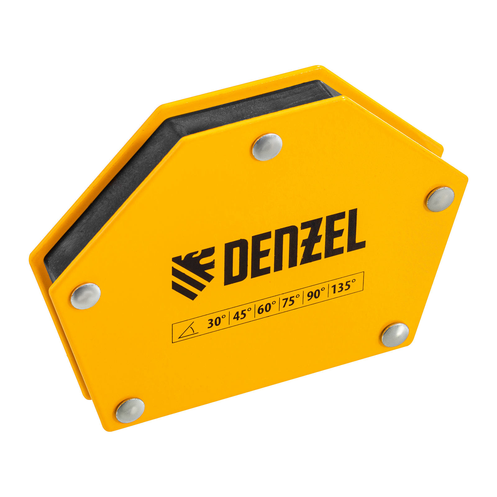 Фиксатор магнитный Denzel 97554 выдерживает усилие 50 LB (23 кг), позволяет соединять металлические детали разного размера под углом 30°, 45°, 60°, 75°, 90° и 135° и используется при проведении сварочных работ.