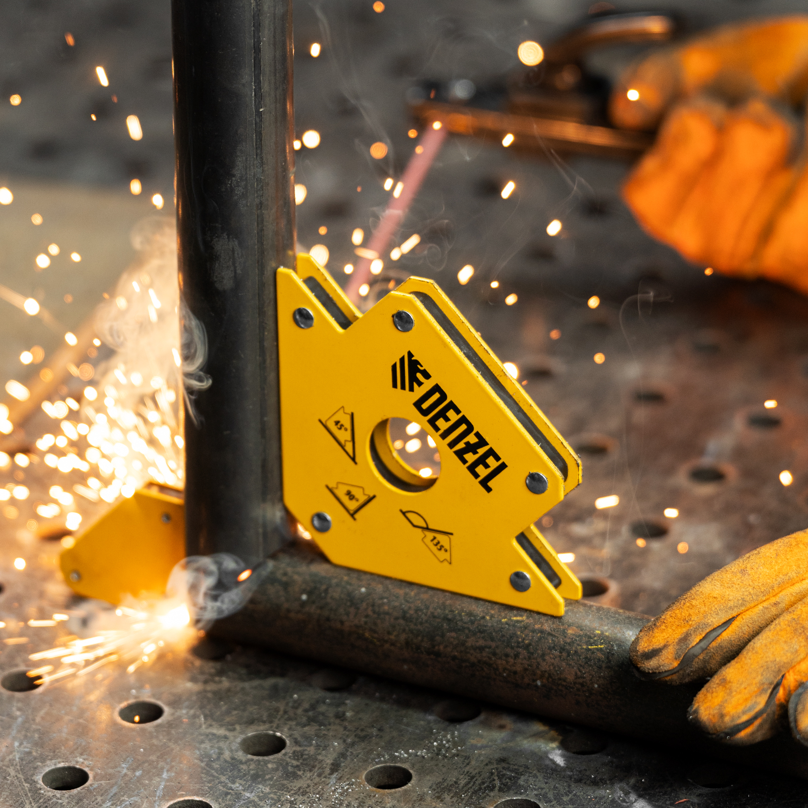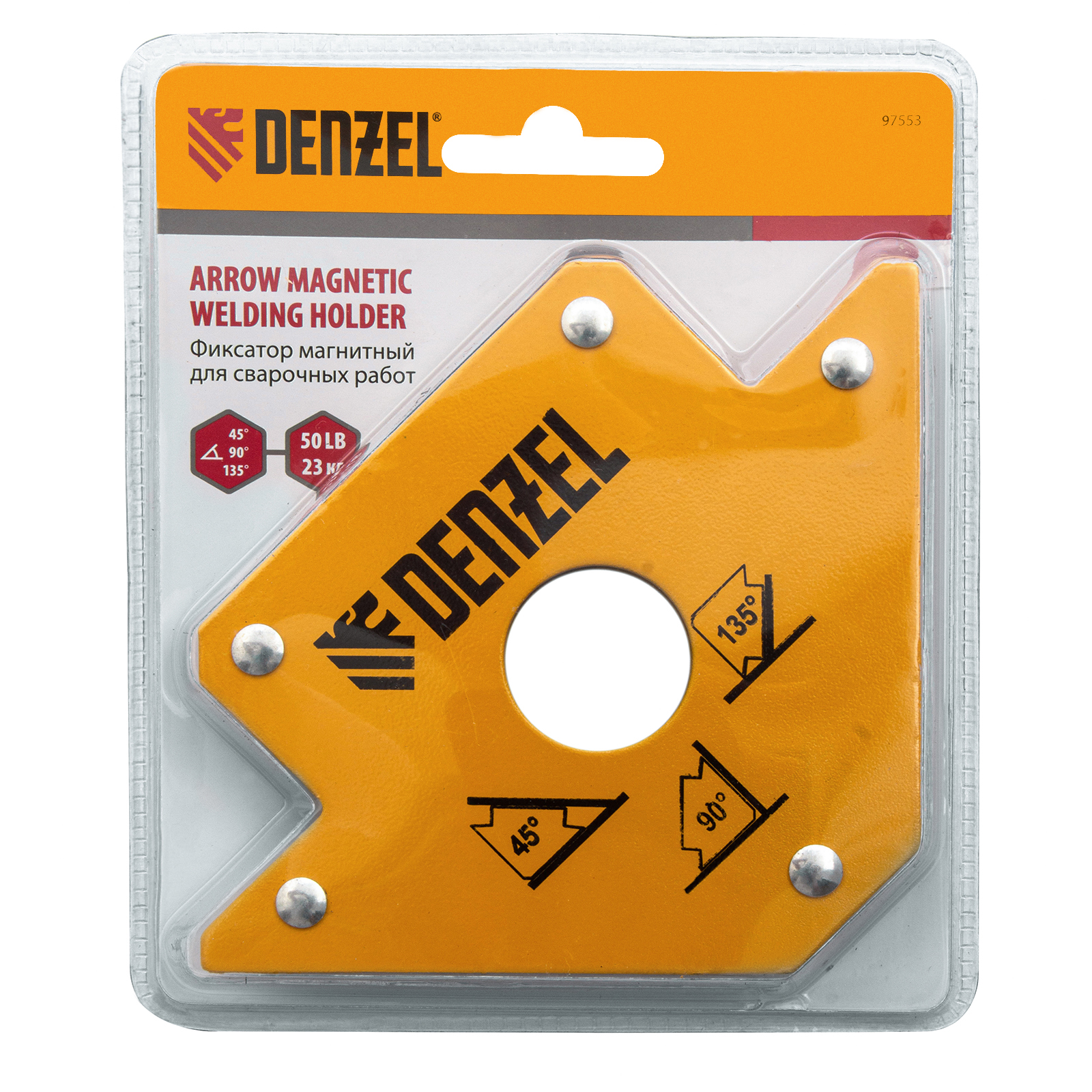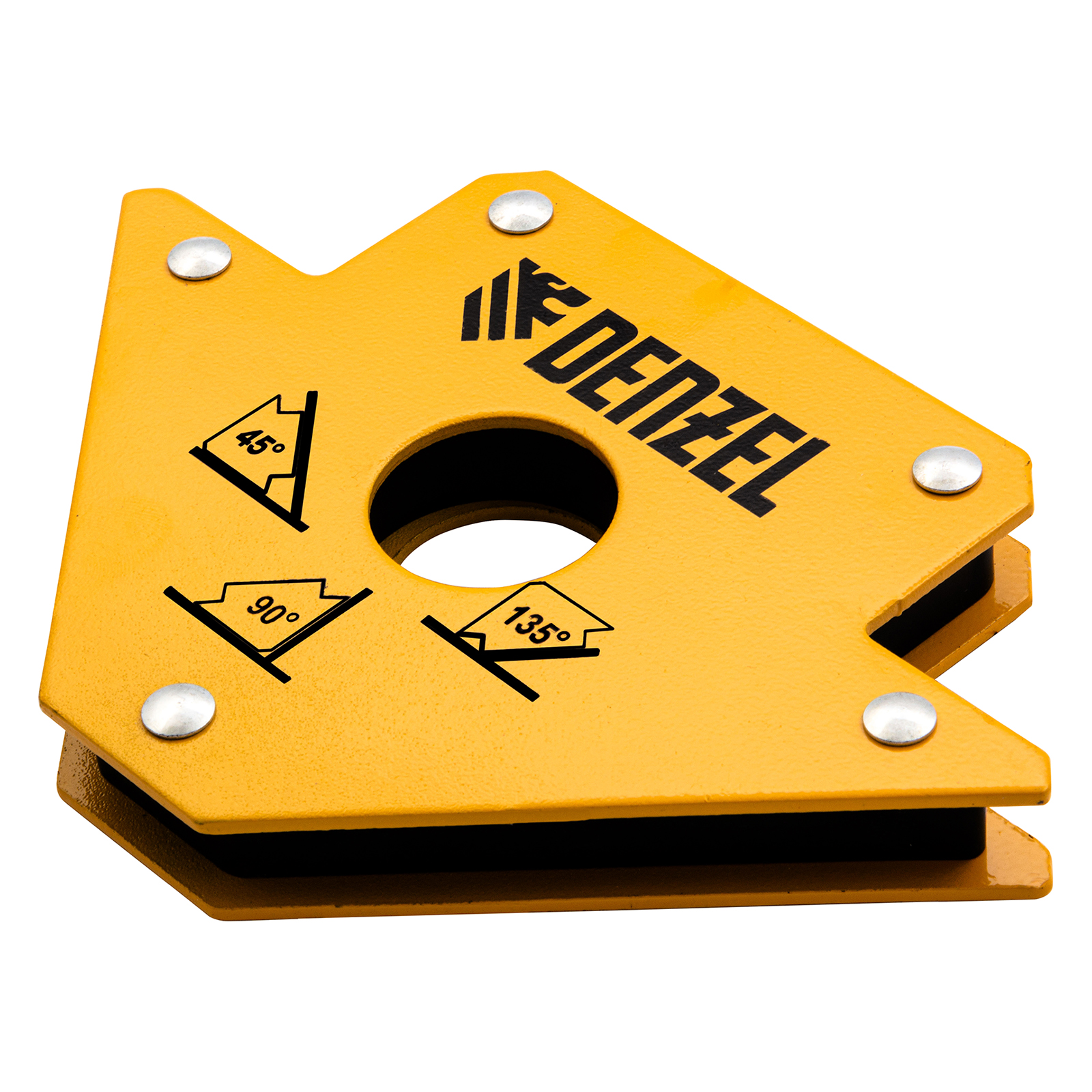 Магнитный фиксатор Denzel 50 LB 97553 значительно упрощает проведение сварочных и паяльных работ с металлическими профилями, уголками, трубами прямоугольной и круглой формы, пластинами и другим типом металла. Он позволяет быстро и легко зафиксировать конструкцию весом до 23 кг под необходимым углом и работать без риска ее падения или смещения.