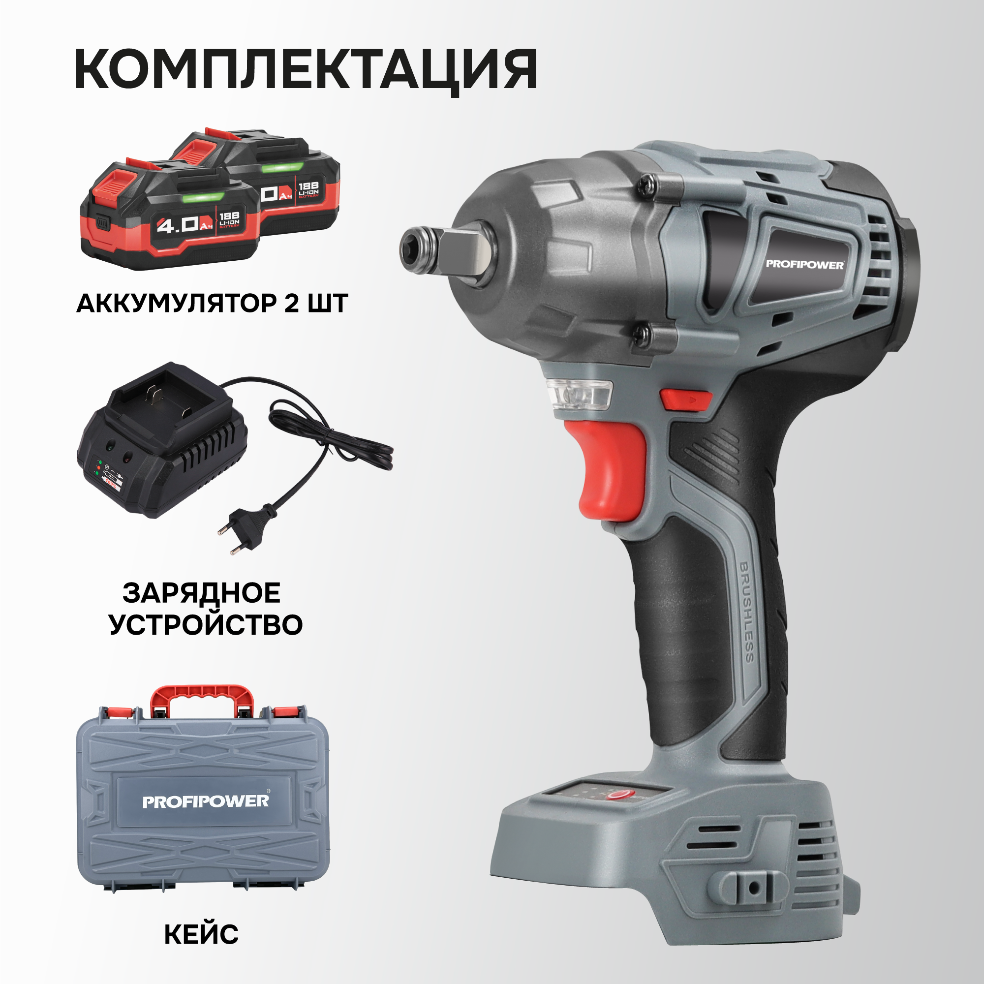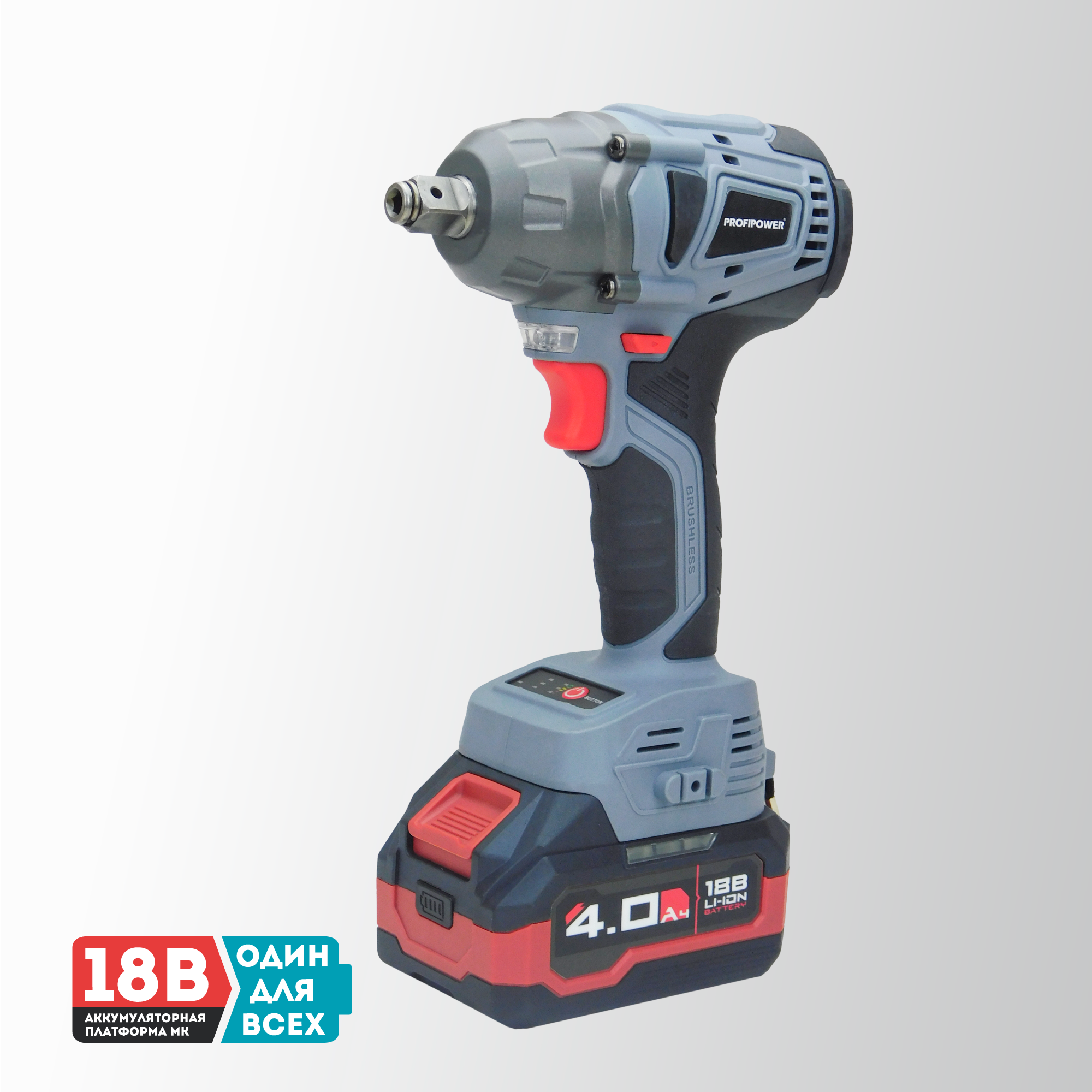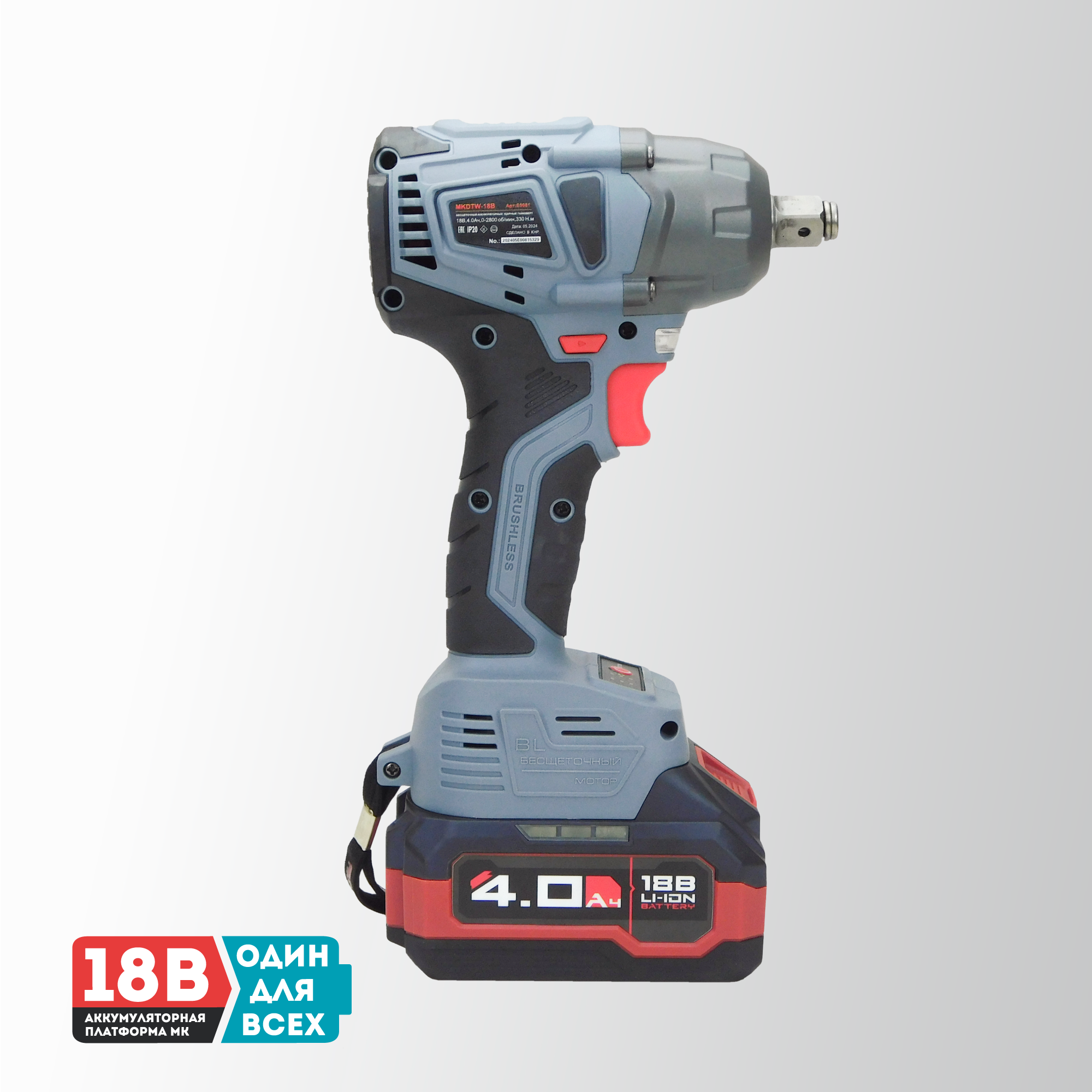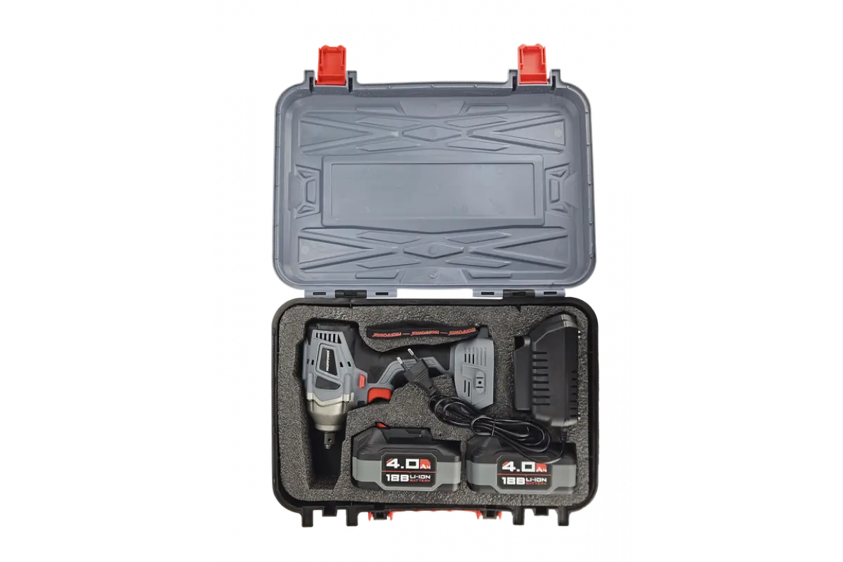Аккумуляторный ударный гайковерт 18 вольт отличается универсальной работой как с мелким, так и с крупным крепежом без дополнительных переходников и адаптеров. Модель подходит для завинчивания и откручивания любого крепежа, колес, гаек и болтов. Достаточная мощность 330 Нм предусмотрена как для деликатного обращения с легкими элементами, так и для работы в тяжелых условиях. Особенности и преимущества: - Бесщеточный двигатель – компактен, более стабильные рабочие параметры, не изнашивается и прост в обслуживании. - Встроенный тангенциальный ударный механизм автоматически подключается в случае нагрузки на вал и помогает использовать высокий крутящий момент при одновременно низкой отдаче на руку. Это помогает справиться с прочно сидящем крепежом или достаточно твердым материалом. - Наличие двух режимов закручивания с различной частотой ударов и скоростью вращения позволяет правильно выбрать параметры инструмента в зависимости от прочности соединений. Электронная регулировка скорости нажатием на триггер облегчает выполнение операции. - Подключаемый импульсный режим выкручивания прочно сидящих болтов, а также дополнительный режим откручивания с защитой от срыва настраивает инструмент под конкретную задачу для наилучших результатов работы и безопасной эксплуатации. - Электронный бесконтактный запуск двигателя уменьшает нагрев, не изнашивает детали и обеспечивает максимально эффективную работу. Защита от перегрузок автоматически отключит инструмент, чтобы предохранить аккумулятор от перегрева и быстрого разряда. - Эргономичный полимерный корпус с резиновыми демпферами обеспечивает превосходный контроль инструмента и его безопасную эксплуатацию. Держатель- квадратный комбинированный сокет 1/2" со стержневой фиксацией и гнездо 1/4" (6,35мм) для бит значительно расширяет область применения и позволяет быстро и легко заменять оснастку. - Металлический корпус редуктора защищает детали от повреждения и перегрева. - Яркая светодиодная подсветка рабочей области облегчает выполнение операций в затемненных местах. - Единая аккумуляторная платформа серии MK подходит для всех типов электроинструментов и садовой техники этой линейки. Аккумуляторы доступны в различных размерах и вариантах ёмкости. Они взаимозаменяемые и имеют одинаковый разъём. - Аккумулятор Li-Ion характеризуются отсутствием саморазряда и эффекта памяти. Его можно заряжать в любое время. Интегрированная BMA-система защищает элементы питания от перегрузки и перезаряда, а технология интеллектуального управления энергией экономит заряд и поддерживает энергоподачу на постоянном уровне. Сенсорный индикатор на корпусе показывает состояние заряда. Комплектация: Гайковерт аккумуляторный; Аккумуляторы 4.0 Ач серии МК - 2 шт.; Импульсное зарядное устройство; Ударная головка 1/2"; Руководство по эксплуатации; Кейс.