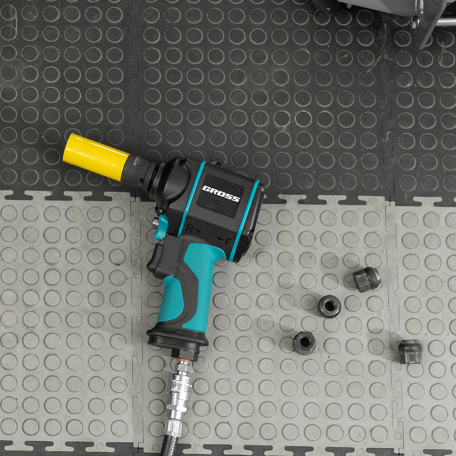 Быстросъемное соединение — гайковерт легко подключается к компрессору, что экономит время мастера.