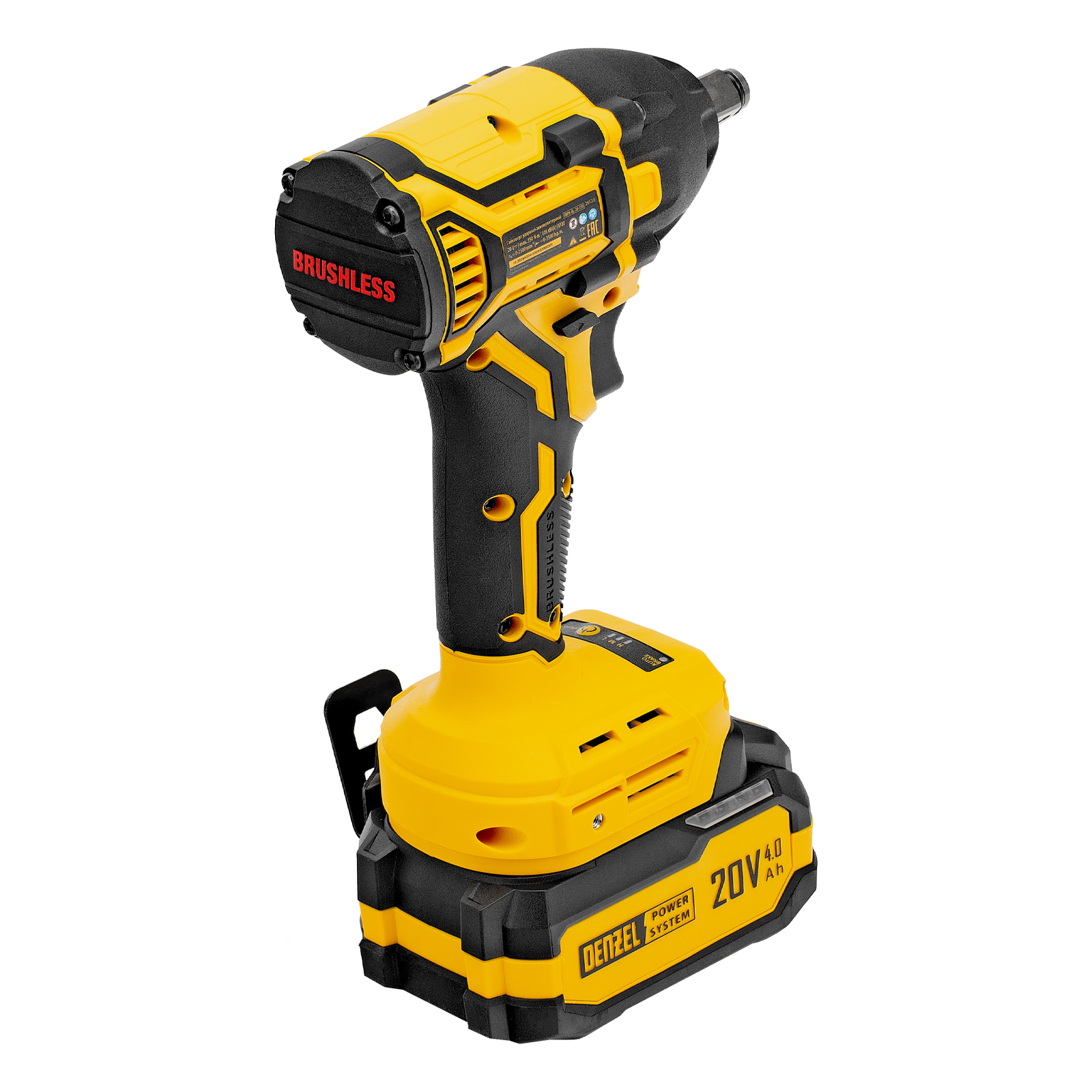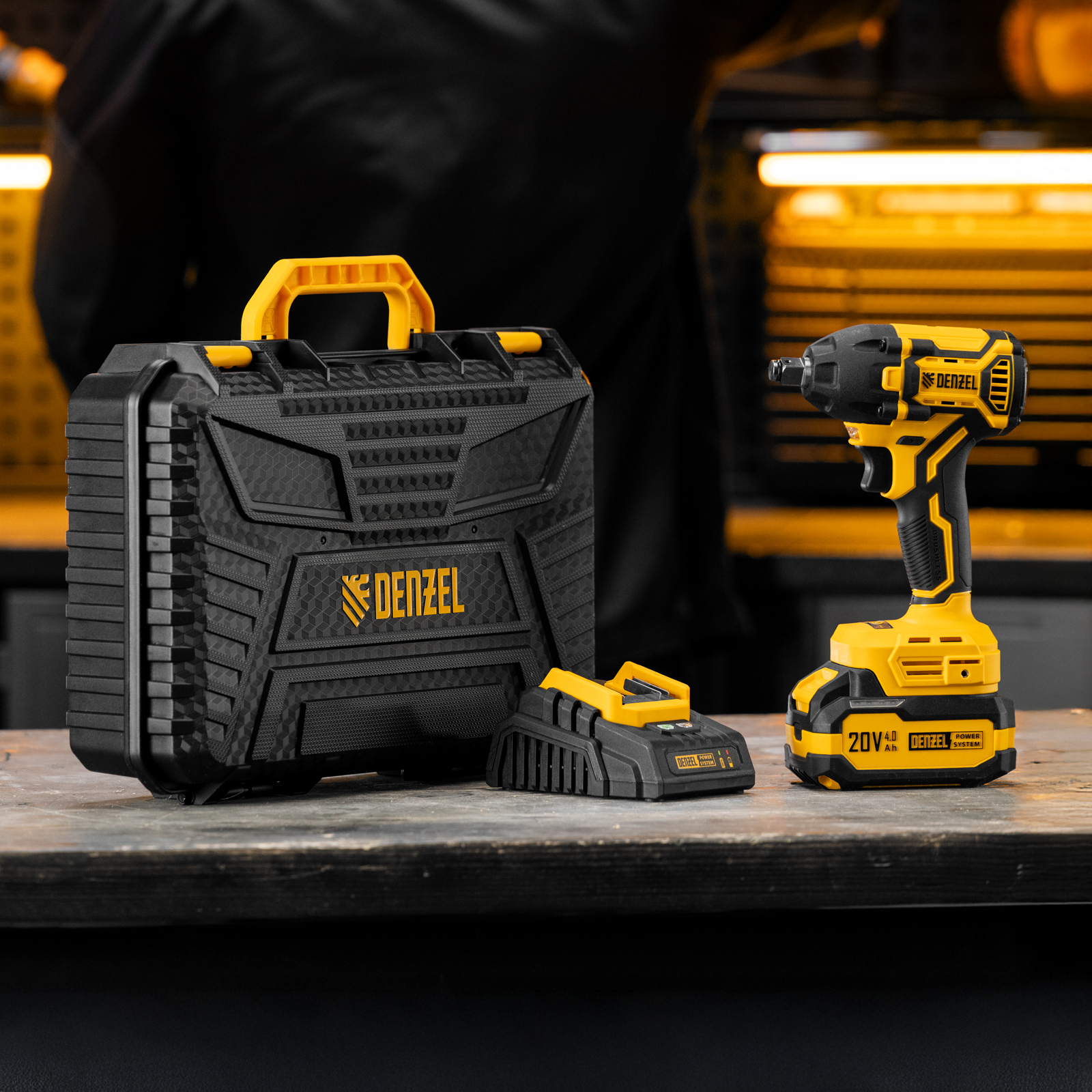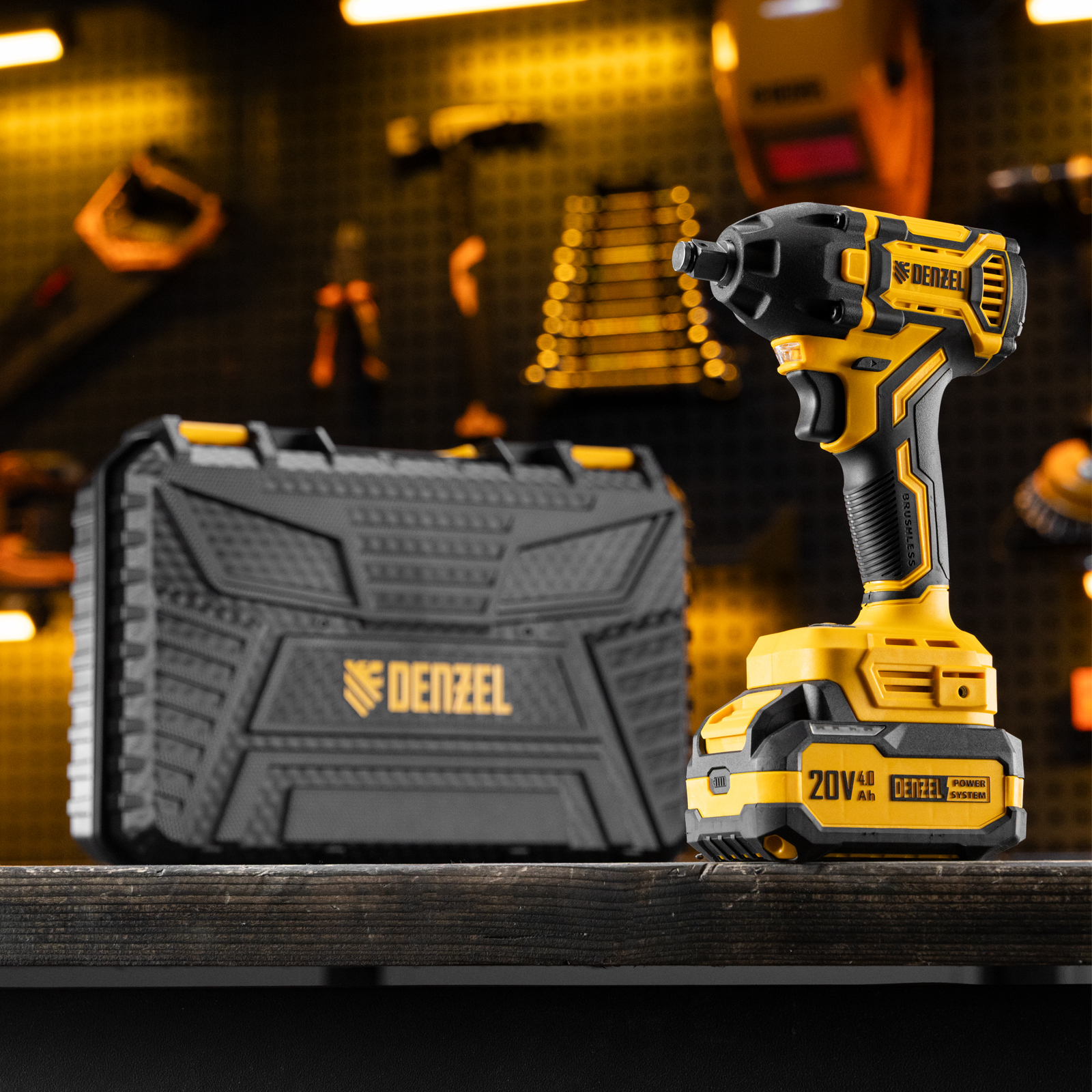 - Универсальность — аккумулятор Li-Ion емкостью 4 А·ч совместим со всеми инструментами единой платформы Denzel Power System 20V.