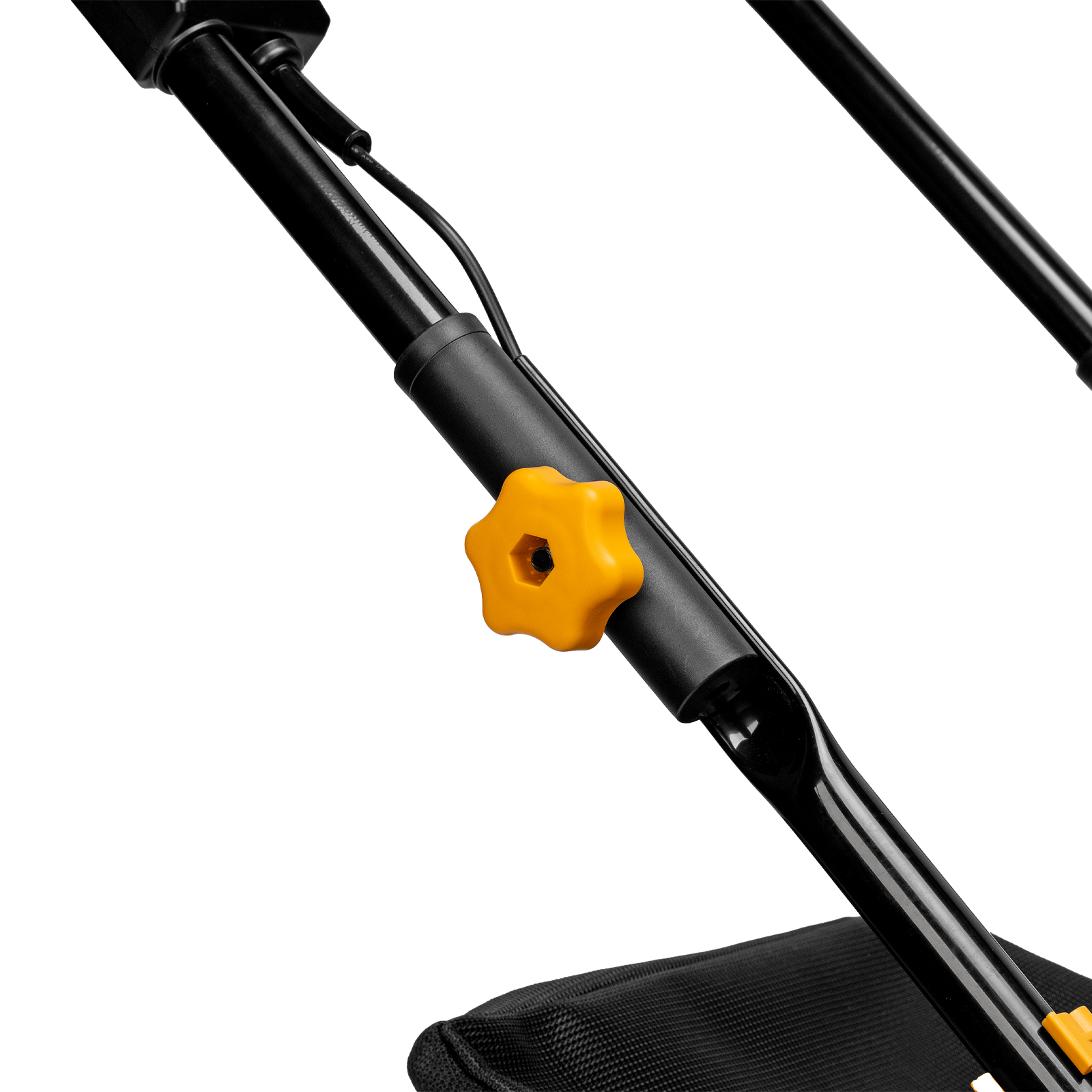 - 6 уровней скашивания — высота травяного покрова регулируется одним рычагом в диапазоне 30-95 мм.