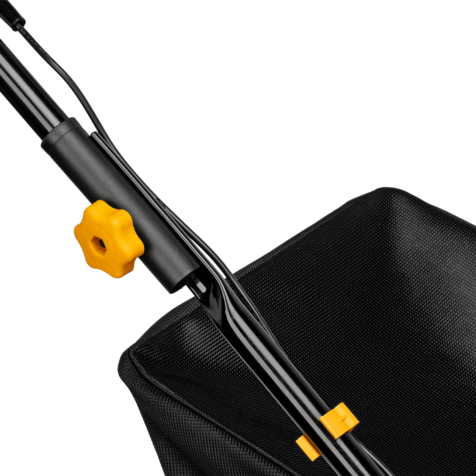 - Удобная эксплуатация — комбинированный травосборник объемом 70 л легко опустошать и чистить.